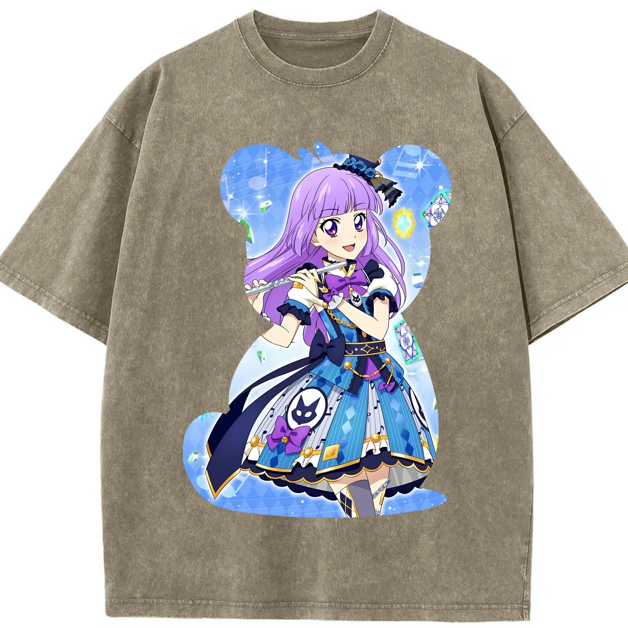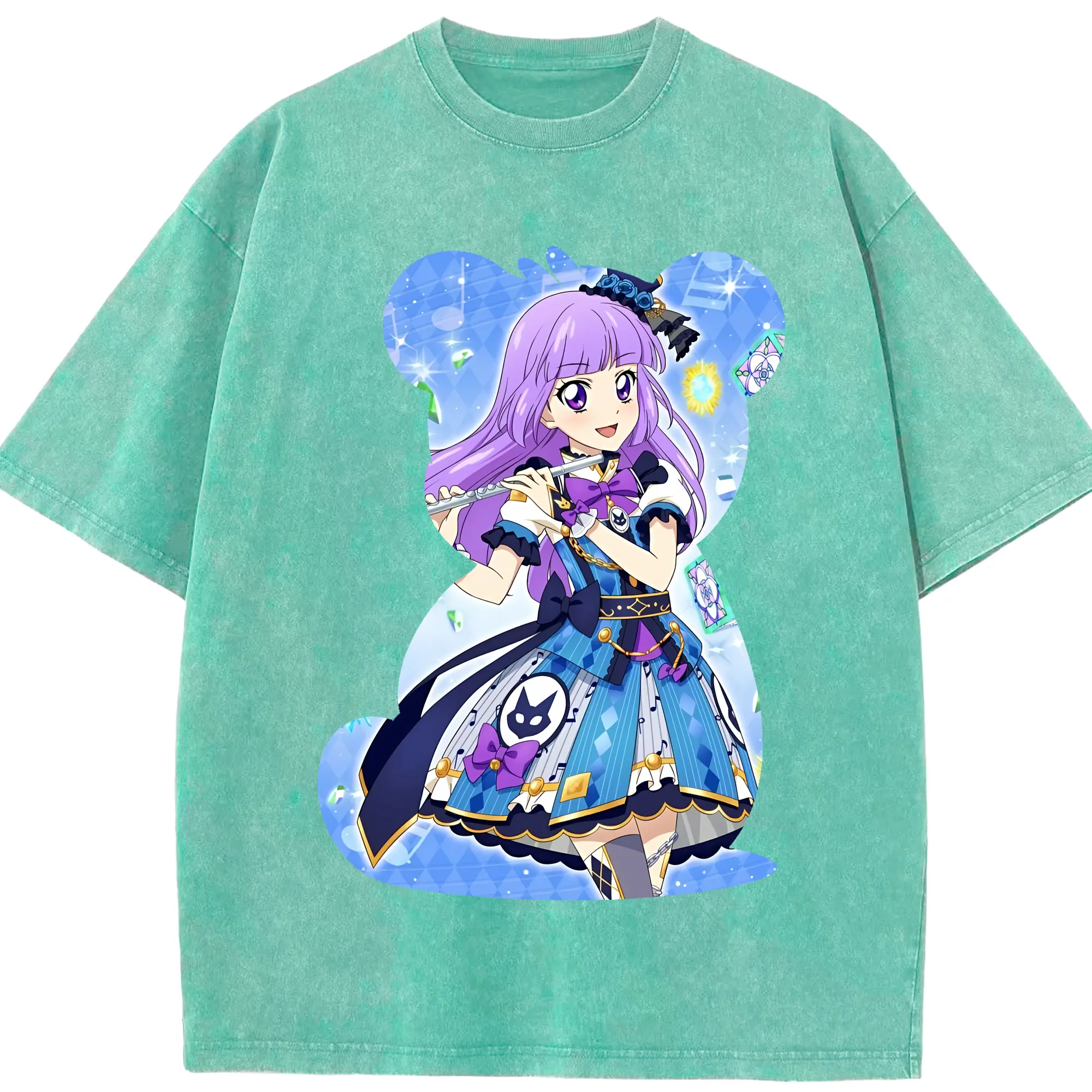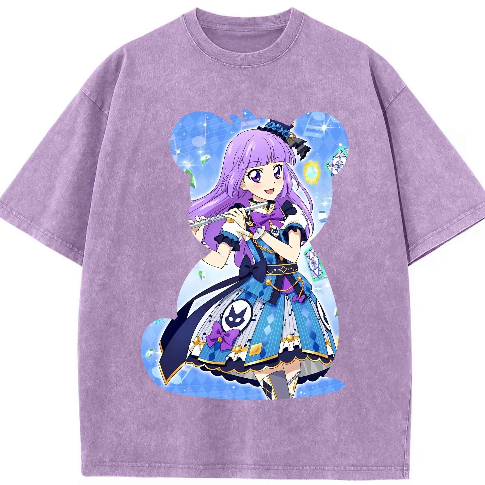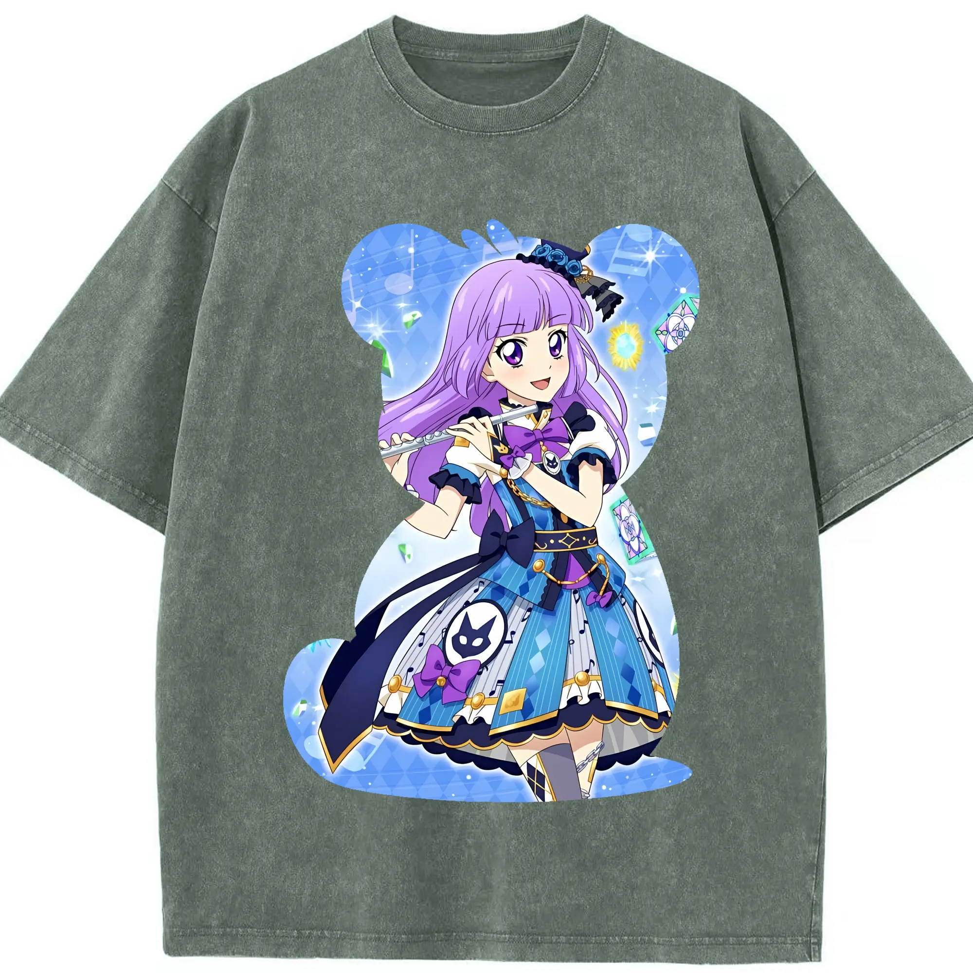 アイカツ グッズ 氷上 スミレ - 綿100% ヴィンテージ風 半袖Tシャツ ・ 背面プリント ・ 柔らか肌触り ・ 通気性 快適 ・ スポーツ カジュアル 外出用