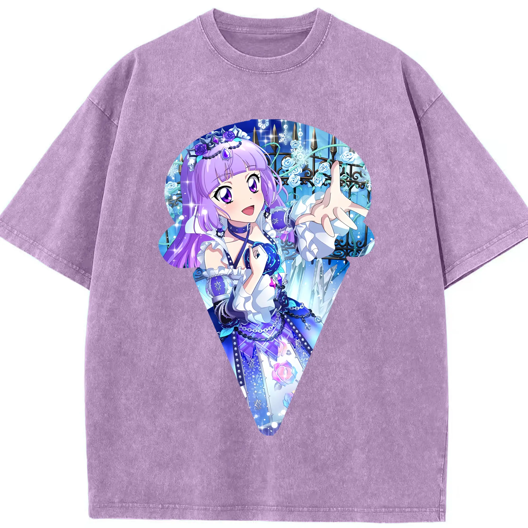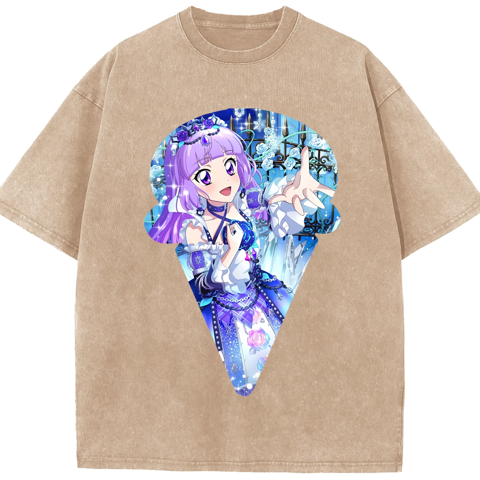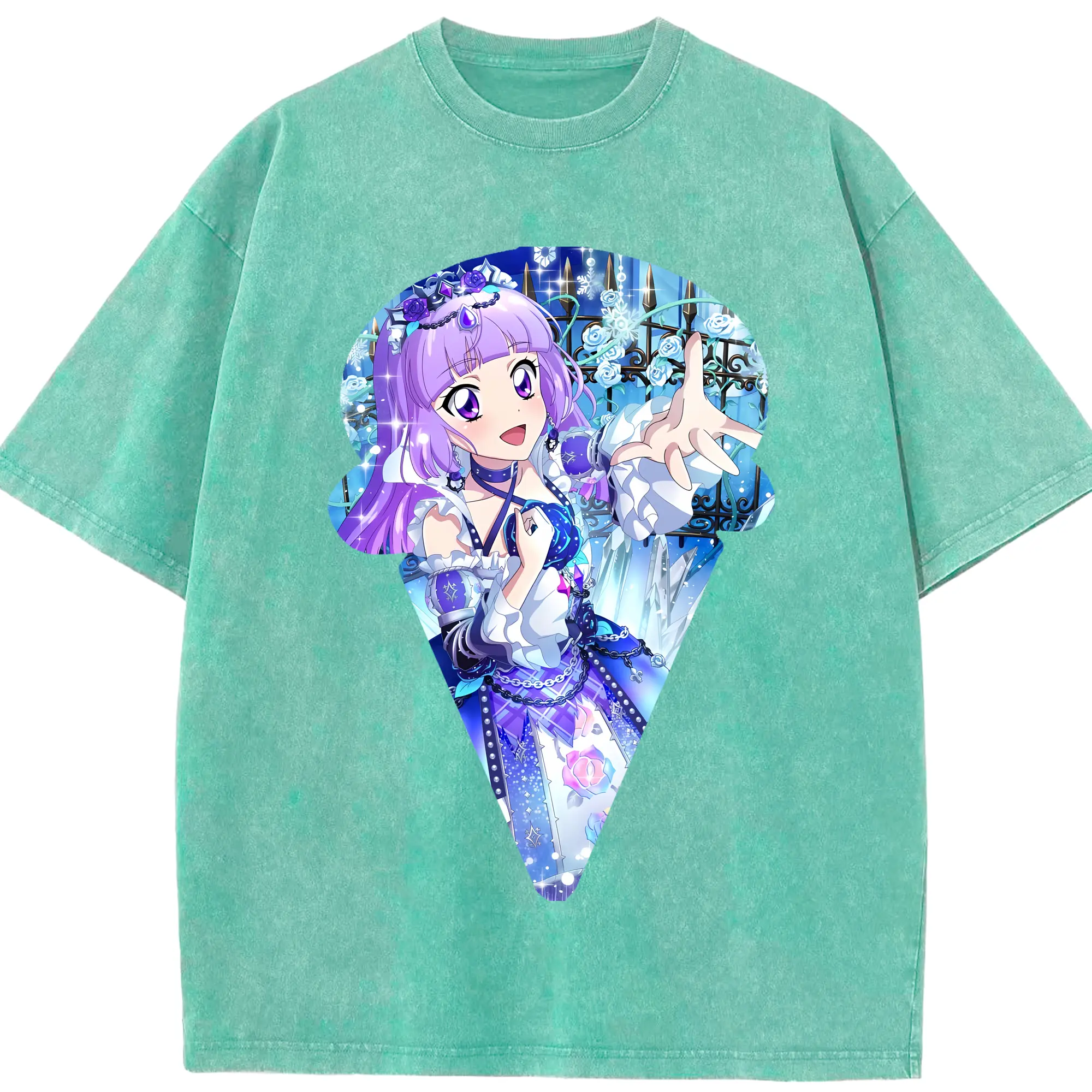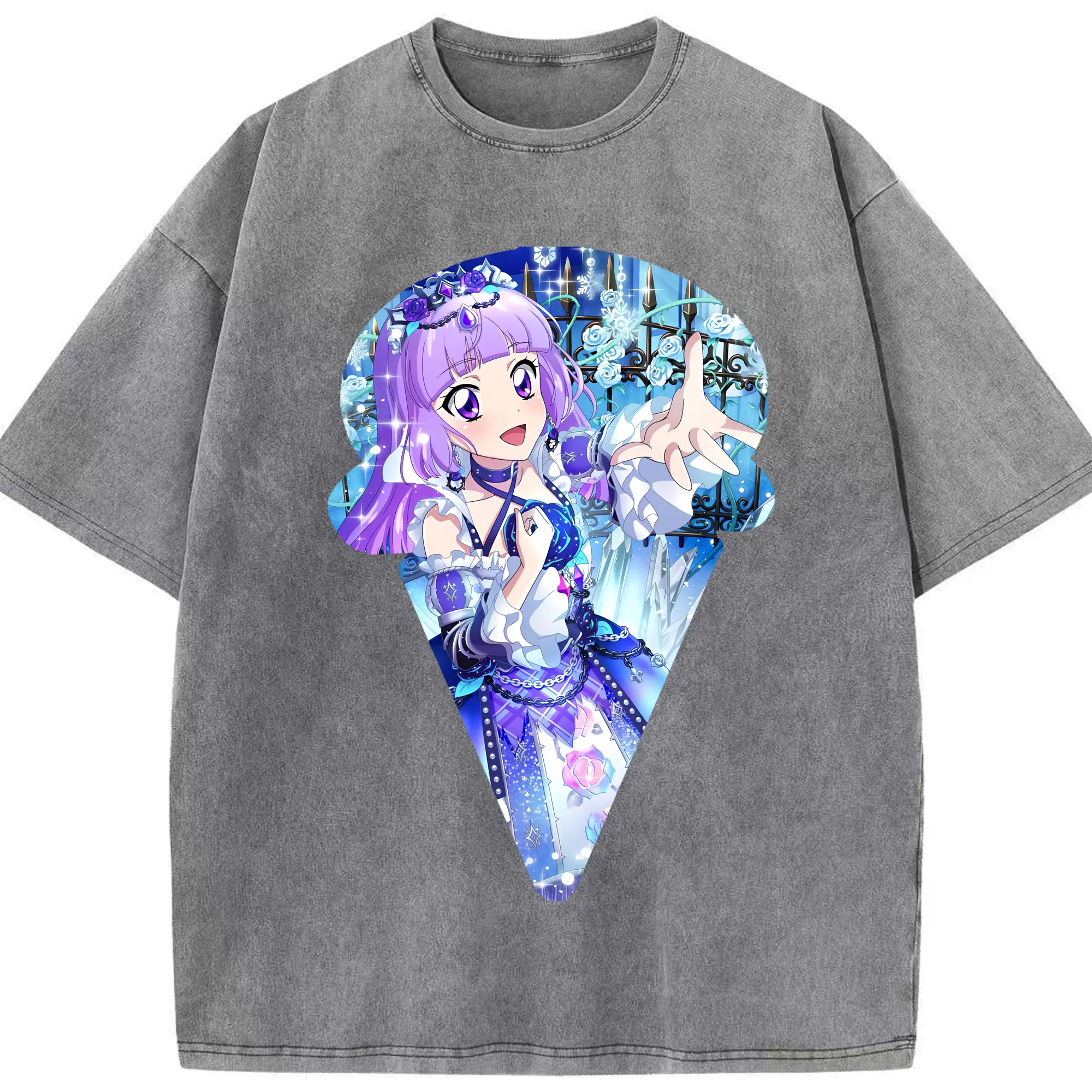 アイカツ グッズ 氷上 スミレ - 綿100% ヴィンテージ風 半袖Tシャツ ・ 背面プリント ・ 柔らか肌触り ・ 通気性 快適 ・ スポーツ カジュアル 外出用