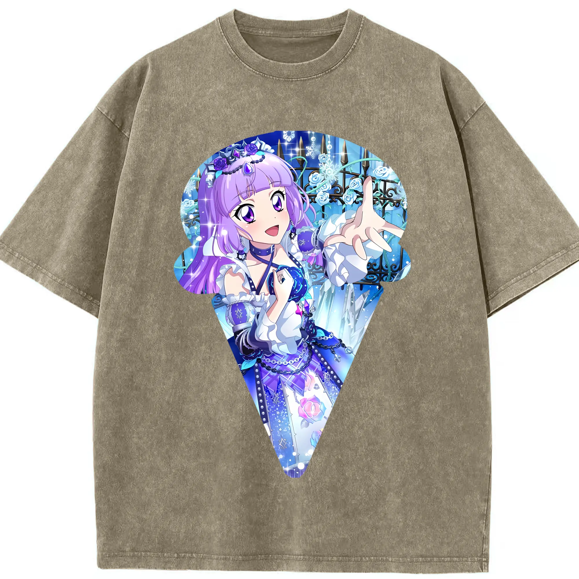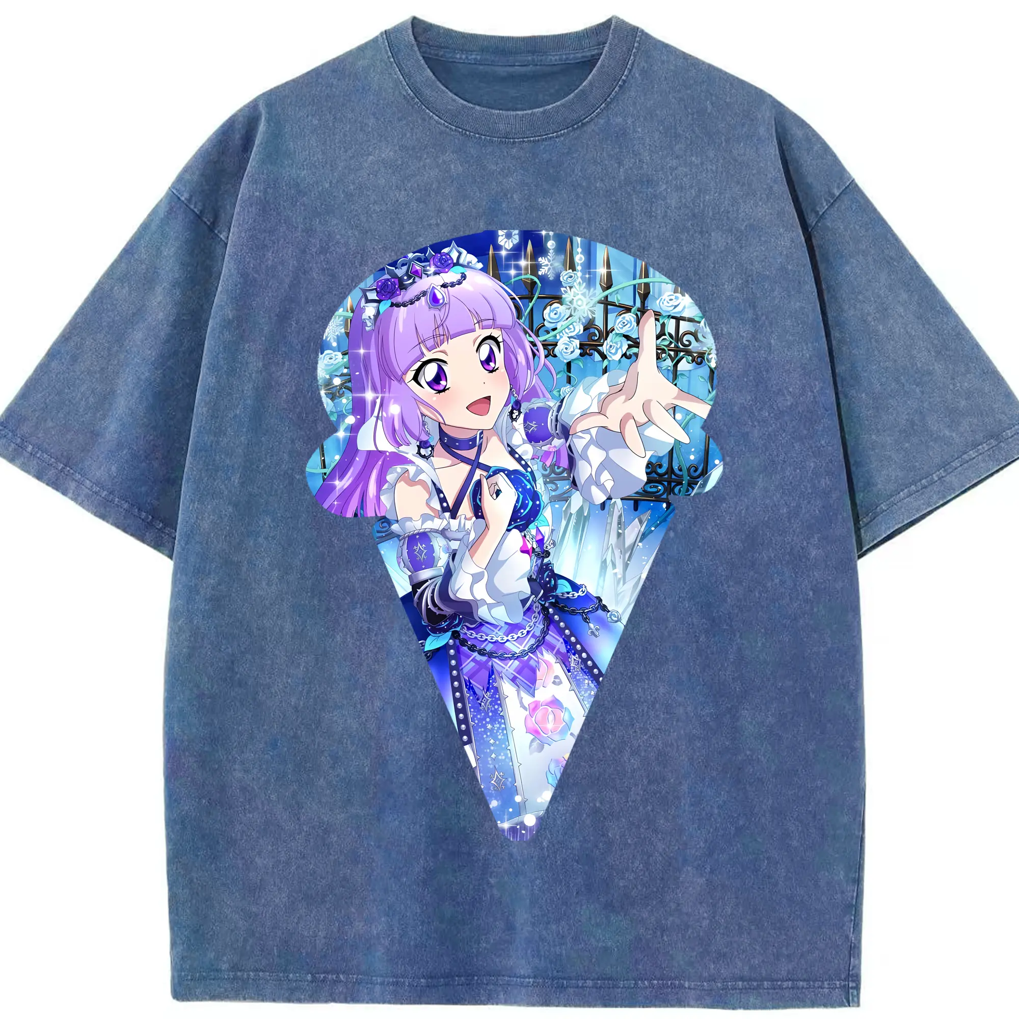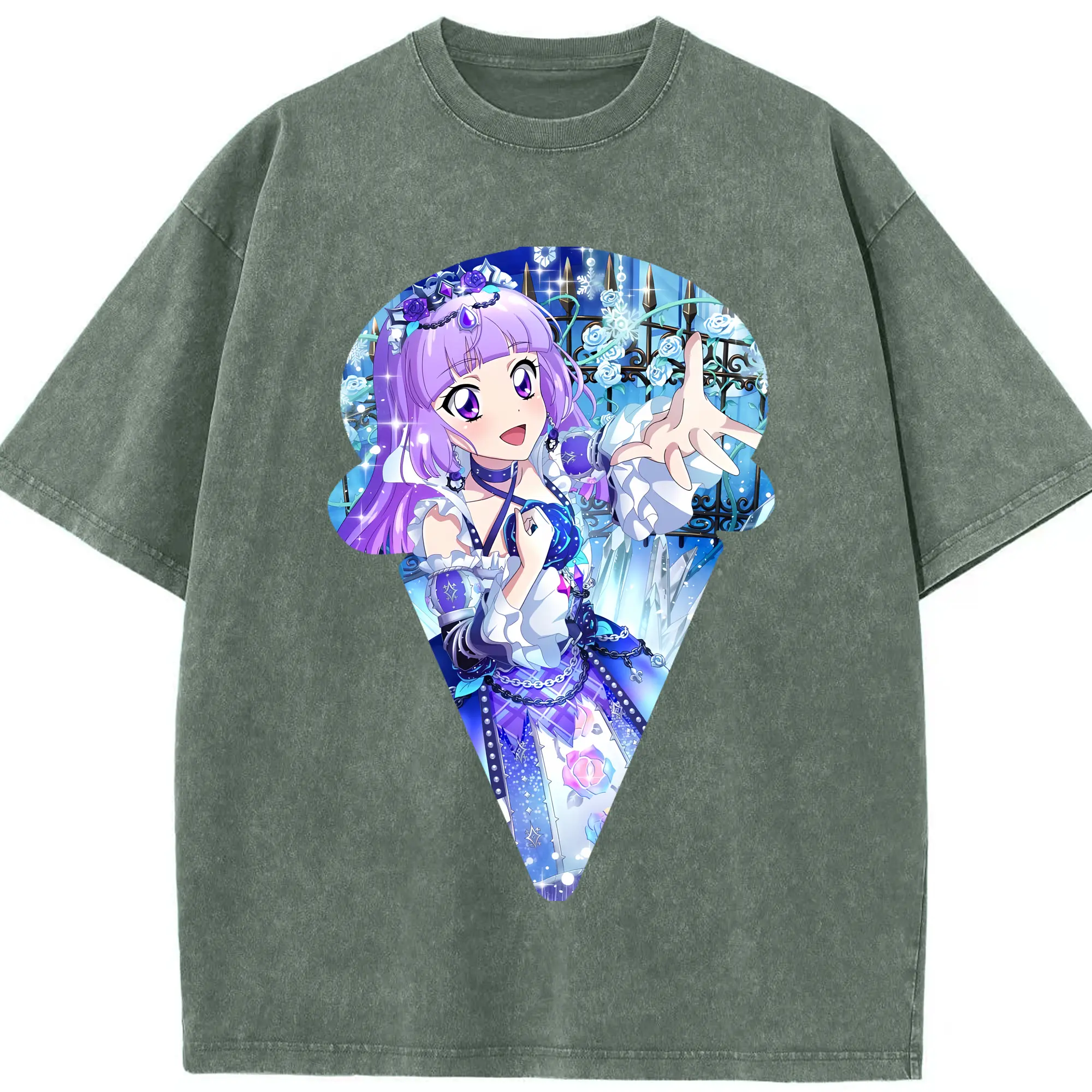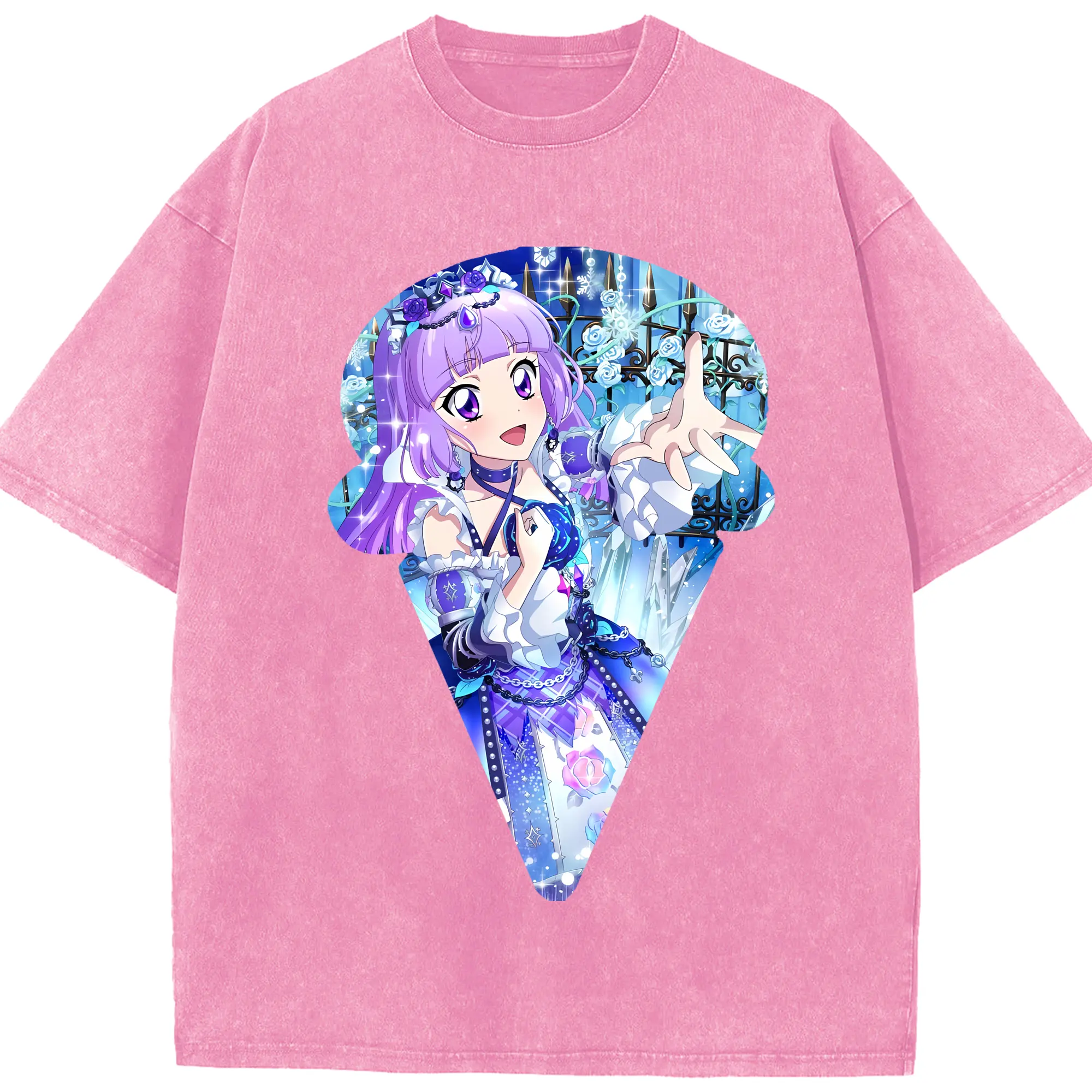 アイカツ グッズ 氷上 スミレ - 綿100% ヴィンテージ風 半袖Tシャツ ・ 背面プリント ・ 柔らか肌触り ・ 通気性 快適 ・ スポーツ カジュアル 外出用