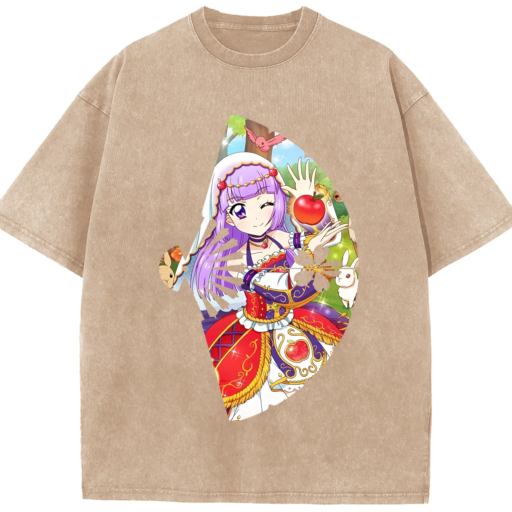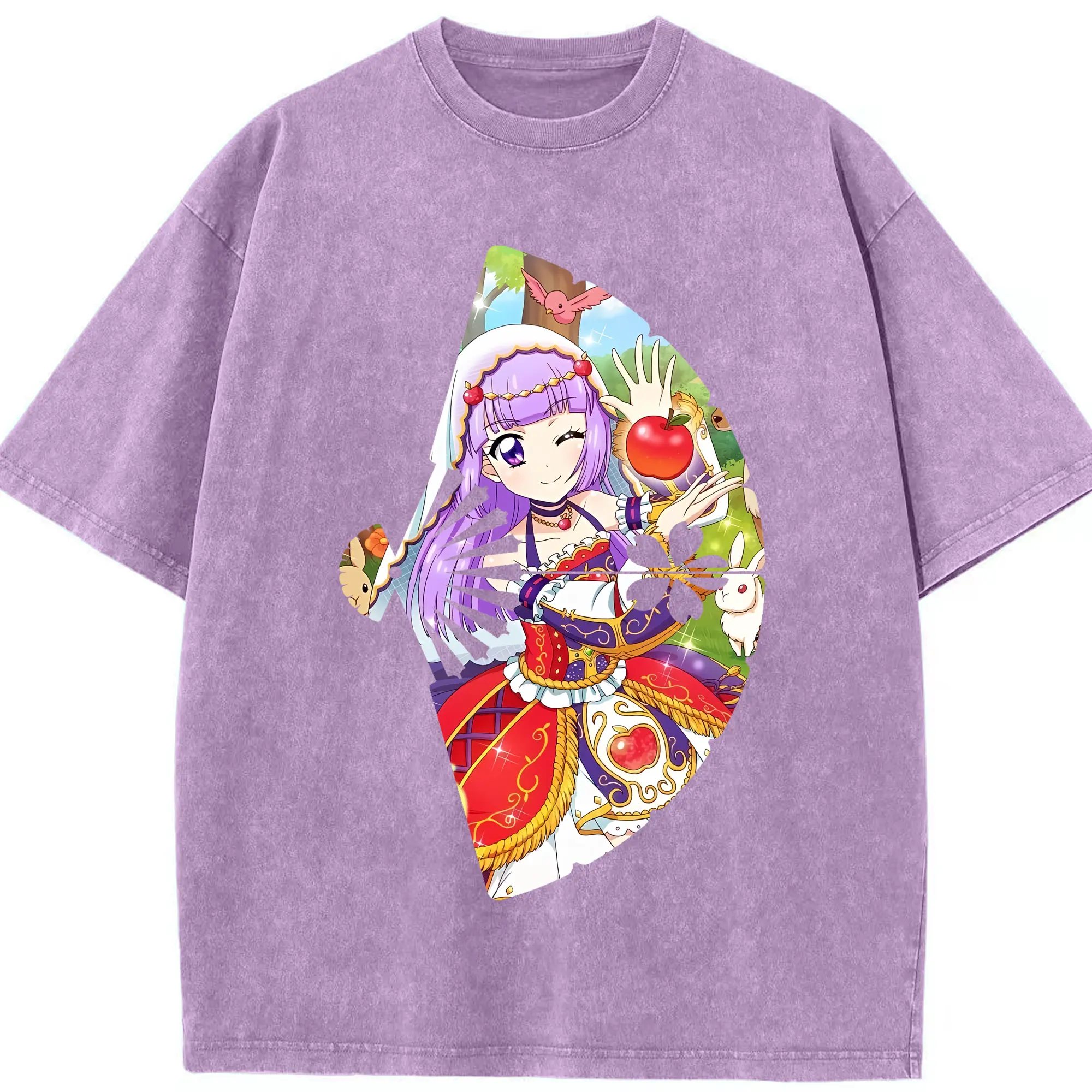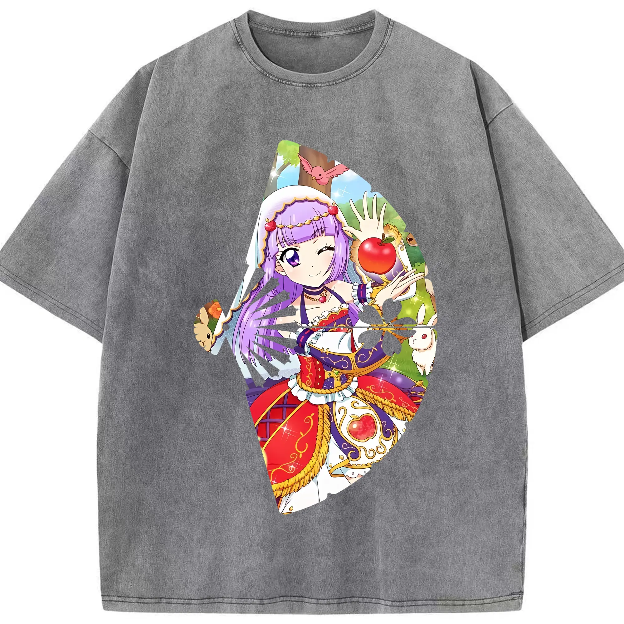 アイカツ グッズ 氷上 スミレ - 綿100% ヴィンテージ風 半袖Tシャツ ・ 背面プリント ・ 柔らか肌触り ・ 通気性 快適 ・ スポーツ カジュアル 外出用