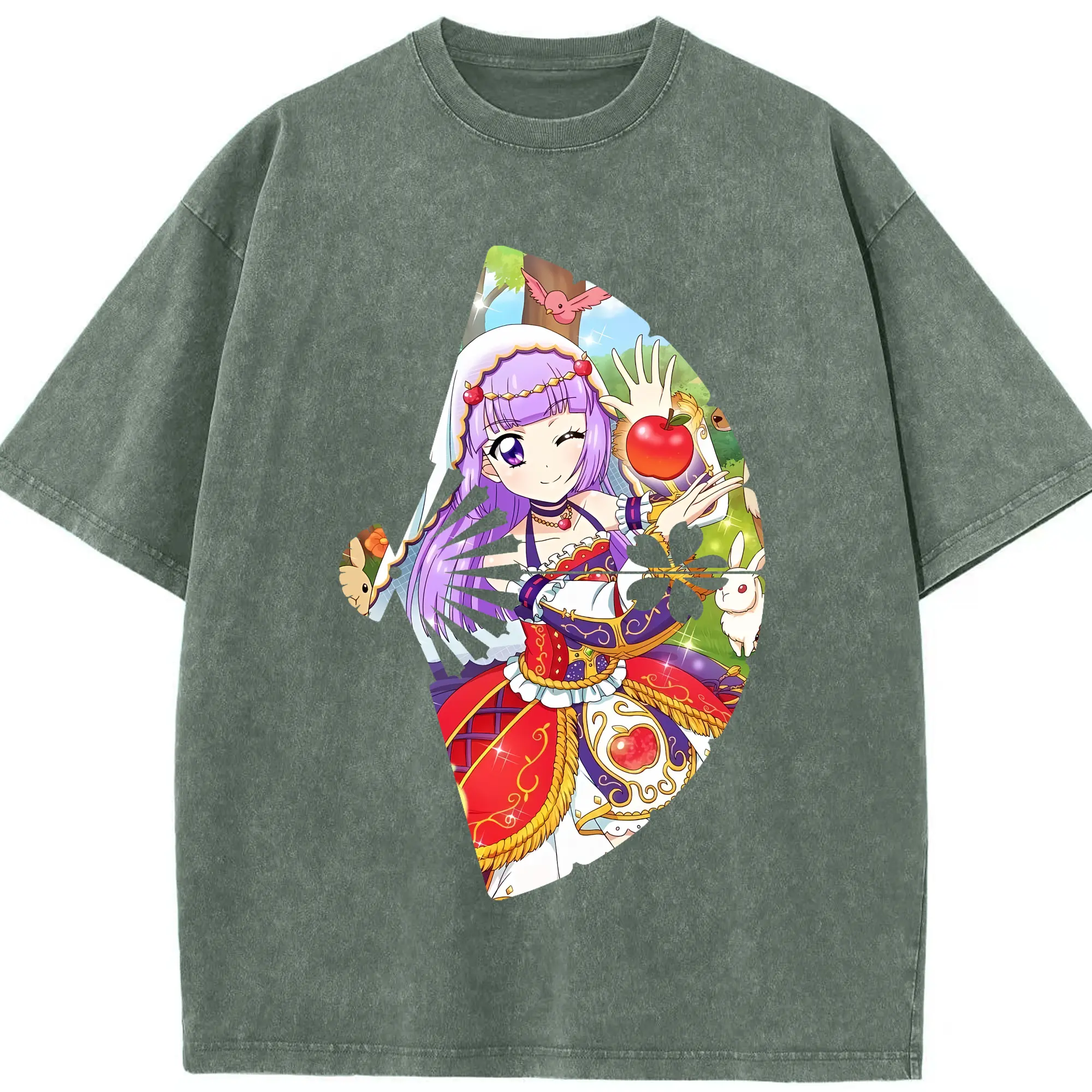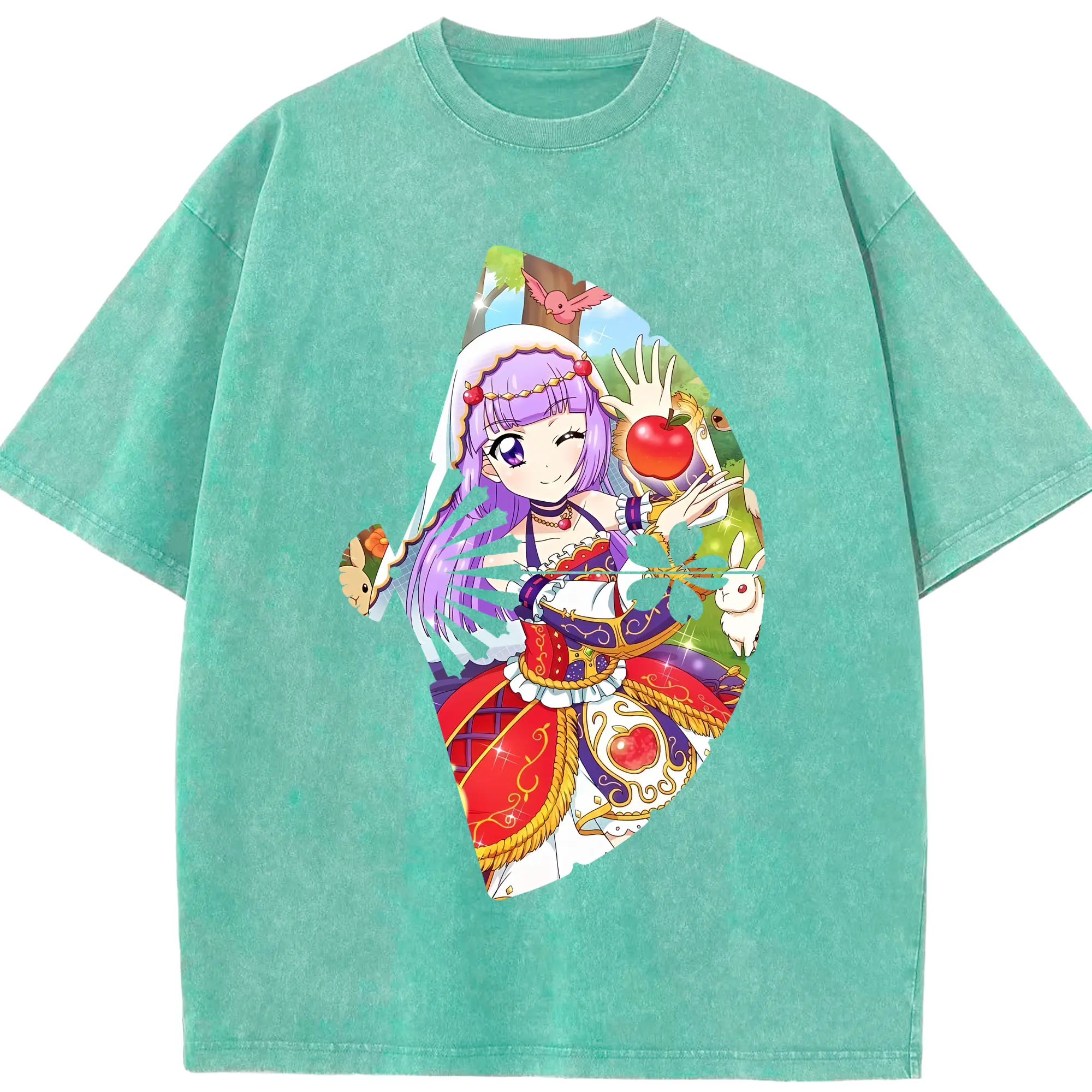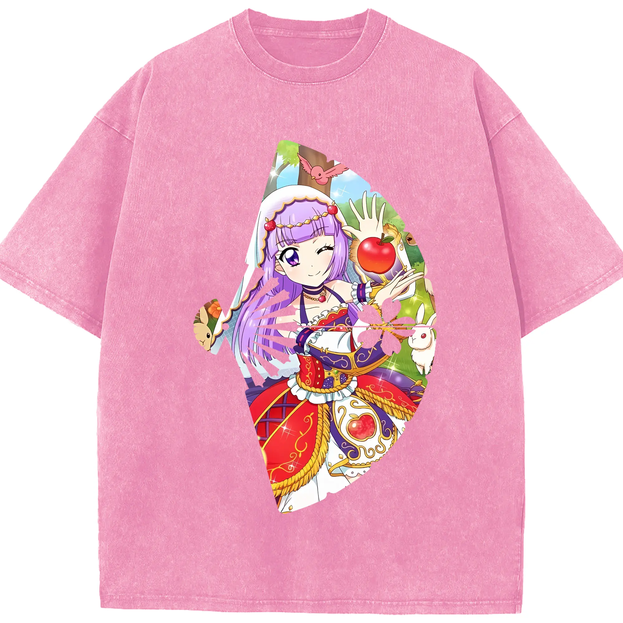 アイカツ グッズ 氷上 スミレ - 綿100% ヴィンテージ風 半袖Tシャツ ・ 背面プリント ・ 柔らか肌触り ・ 通気性 快適 ・ スポーツ カジュアル 外出用
