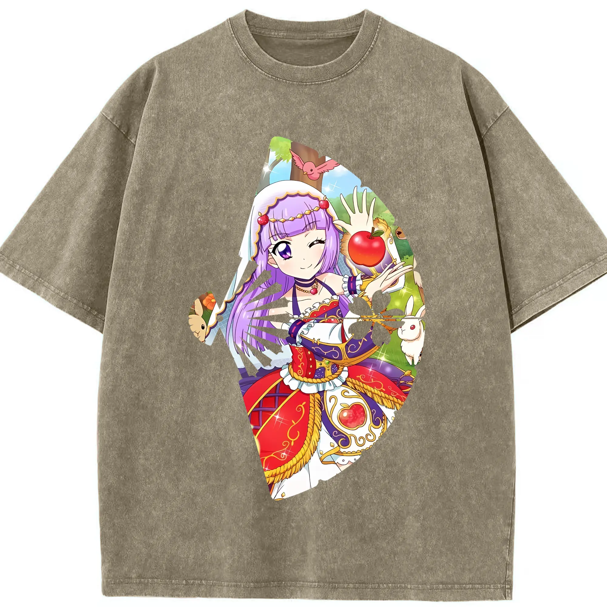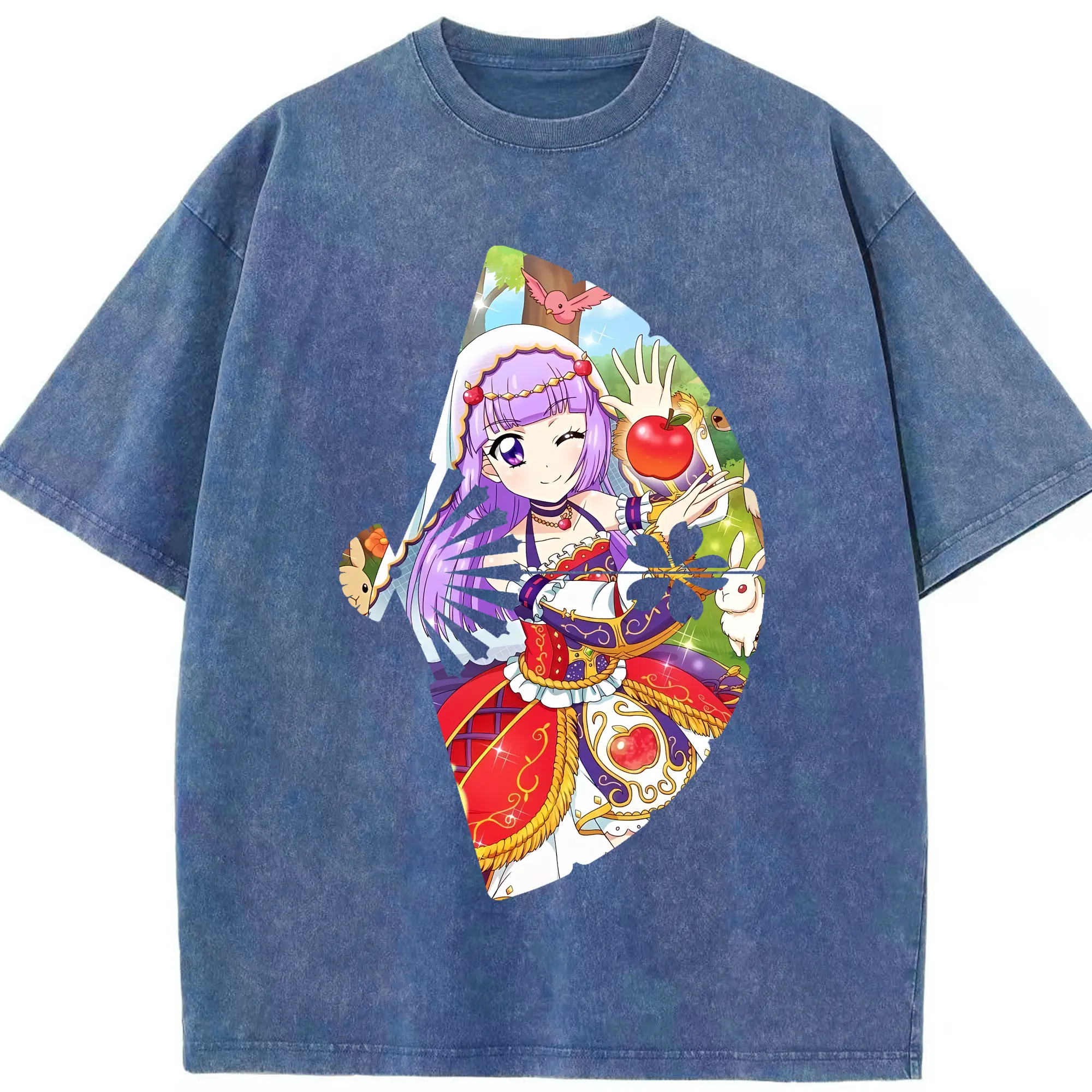 アイカツ グッズ 氷上 スミレ - 綿100% ヴィンテージ風 半袖Tシャツ ・ フロントプリント ・ 柔らか肌触り ・ 通気性 快適 ・ スポーツ カジュアル 外出用