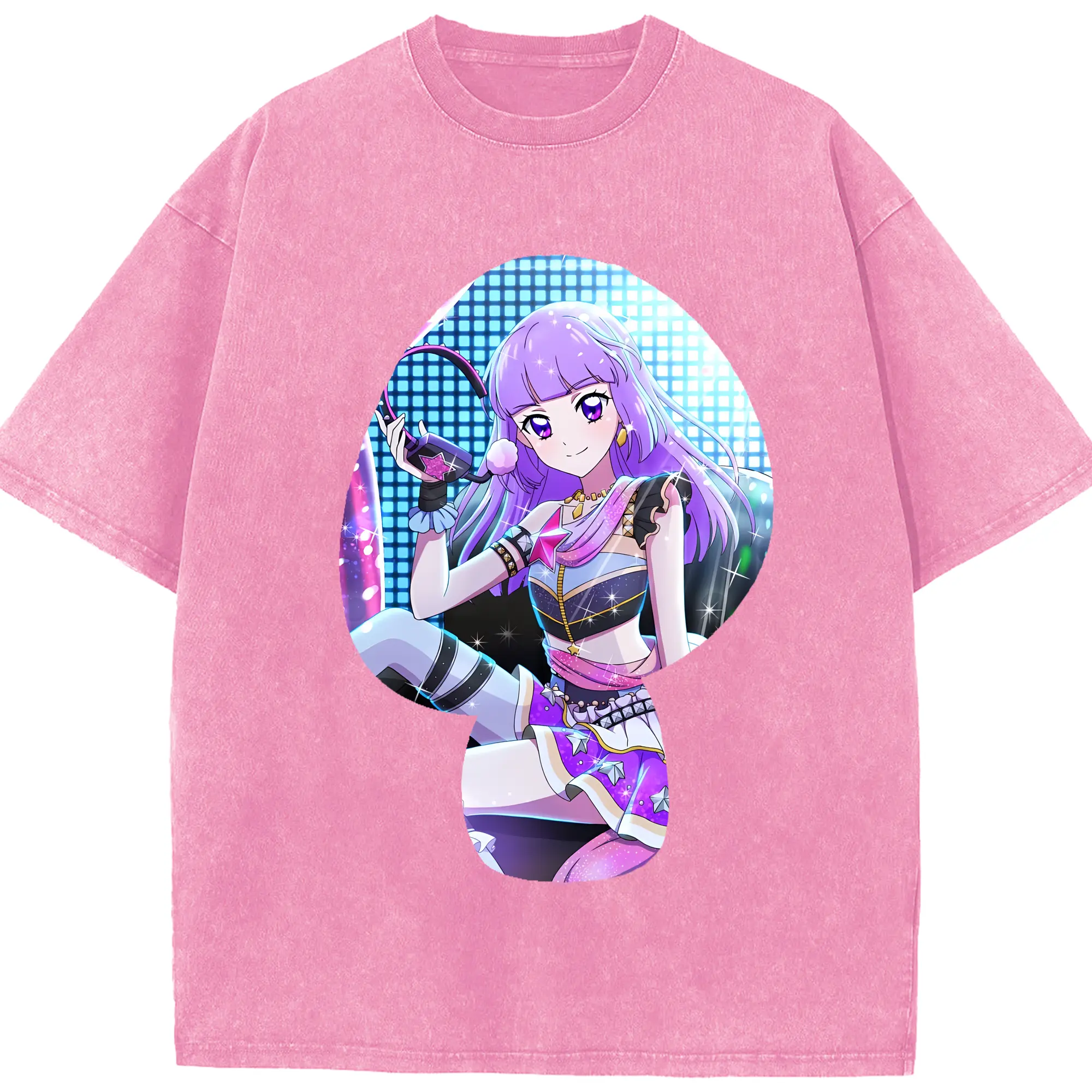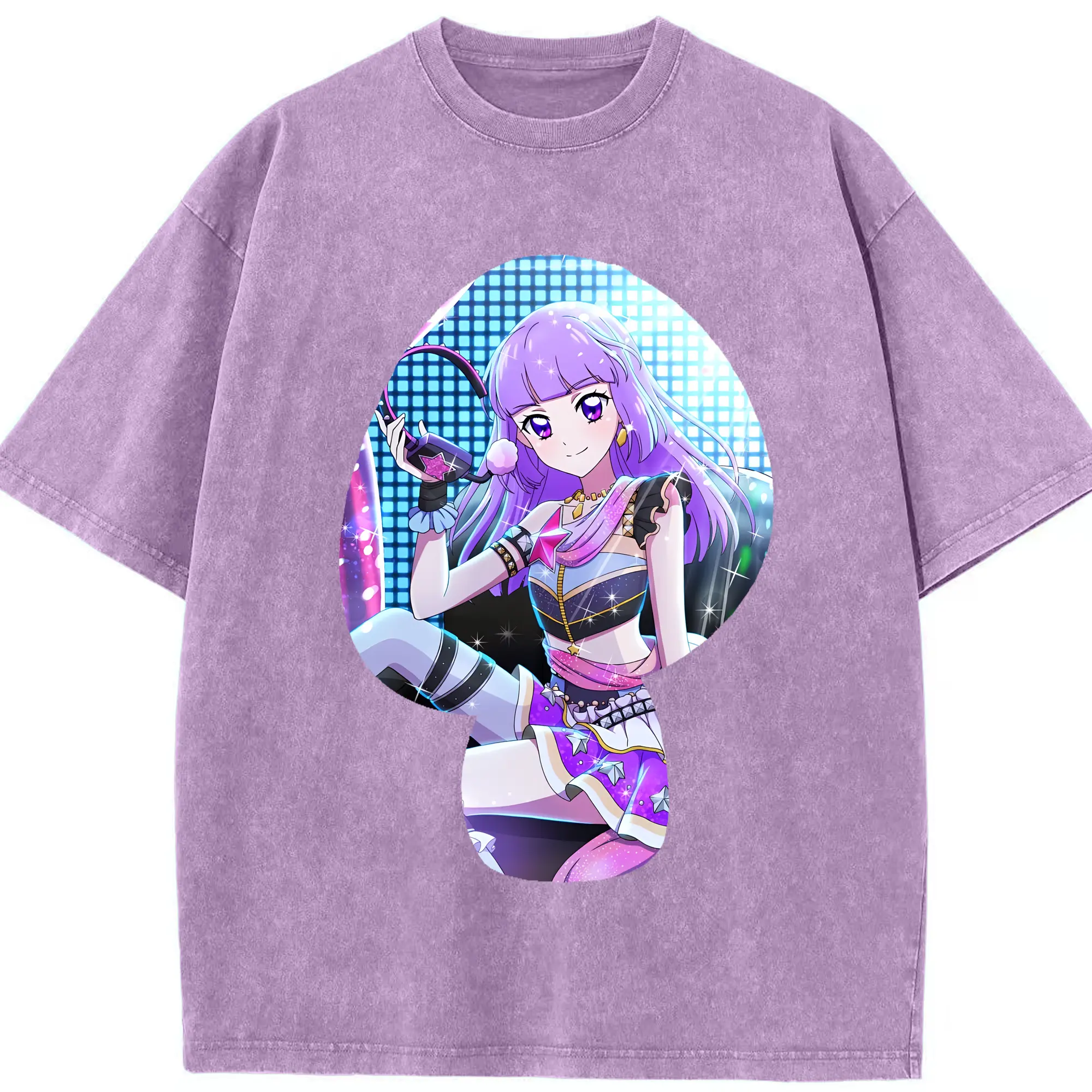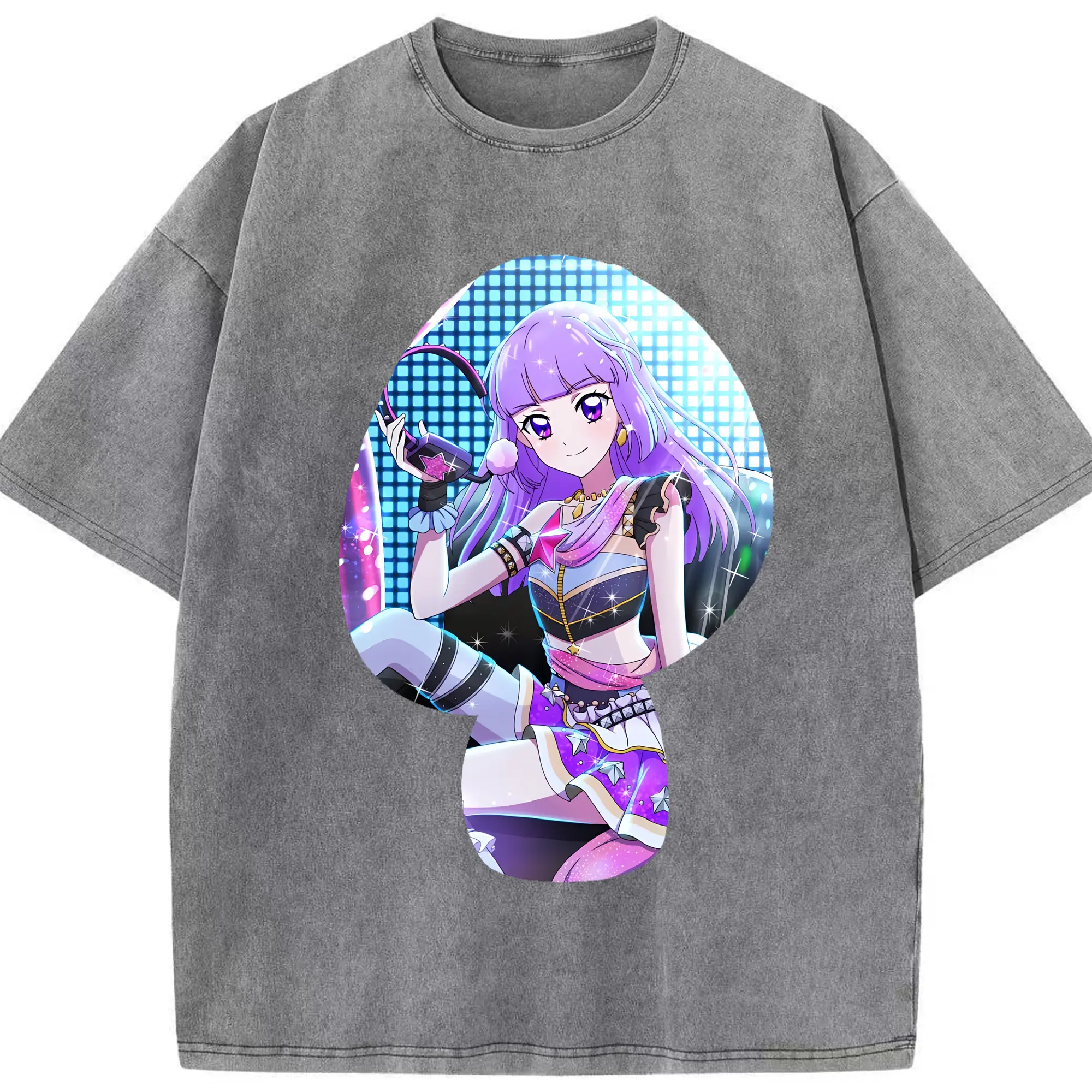 アイカツ グッズ 氷上 スミレ - 綿100% ヴィンテージ風 半袖Tシャツ ・ 背面プリント ・ 柔らか肌触り ・ 通気性 快適 ・ スポーツ カジュアル 外出用