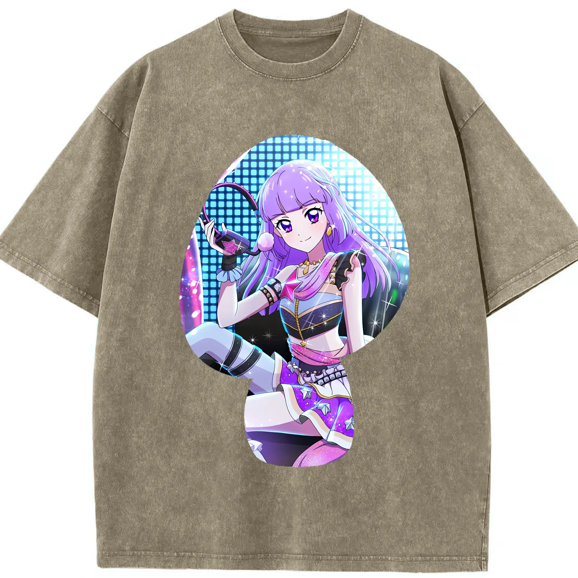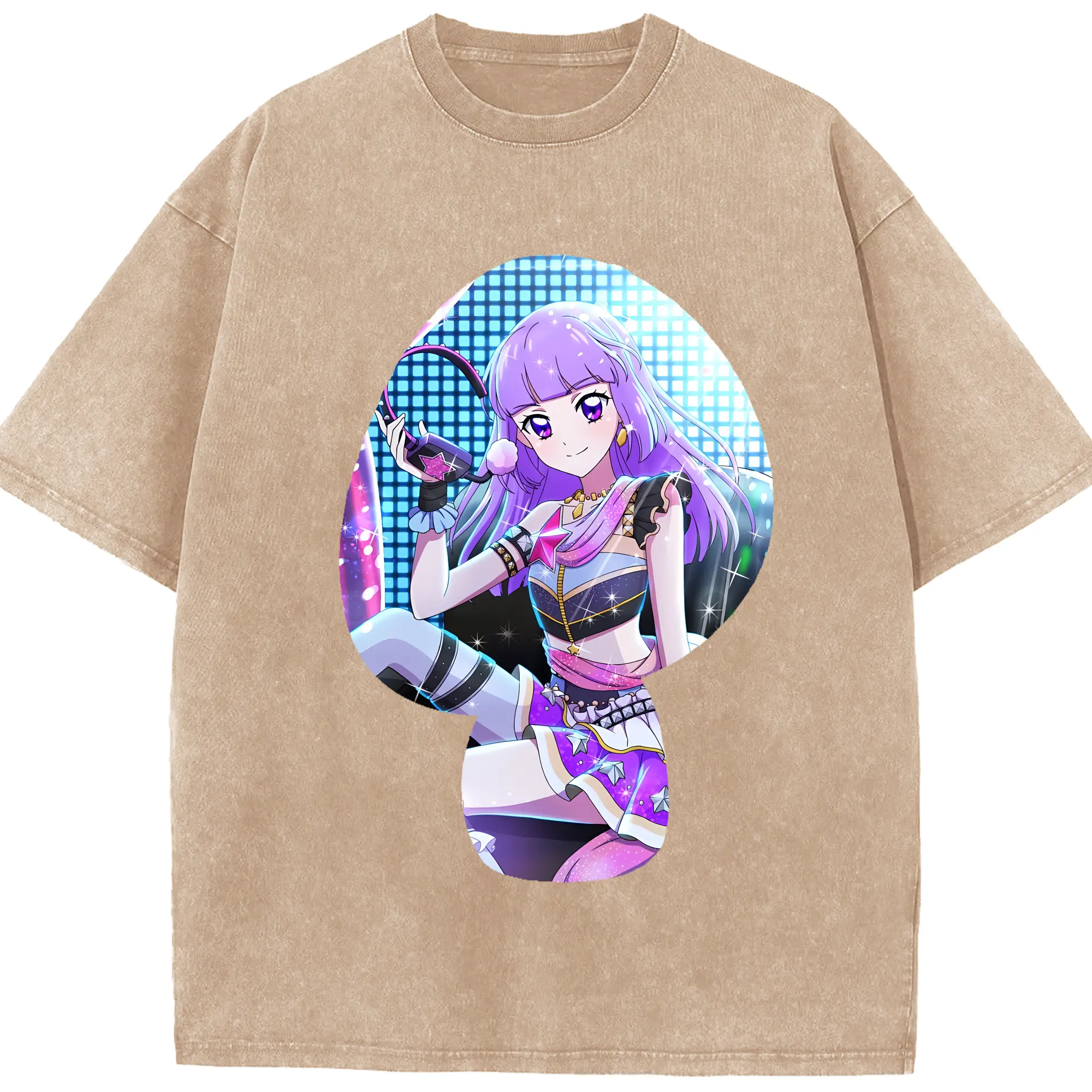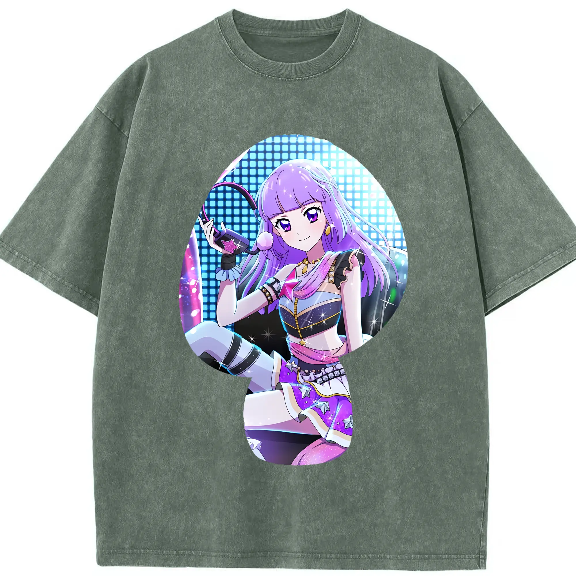 アイカツ グッズ 氷上 スミレ - 綿100% ヴィンテージ風 半袖Tシャツ ・ 背面プリント ・ 柔らか肌触り ・ 通気性 快適 ・ スポーツ カジュアル 外出用