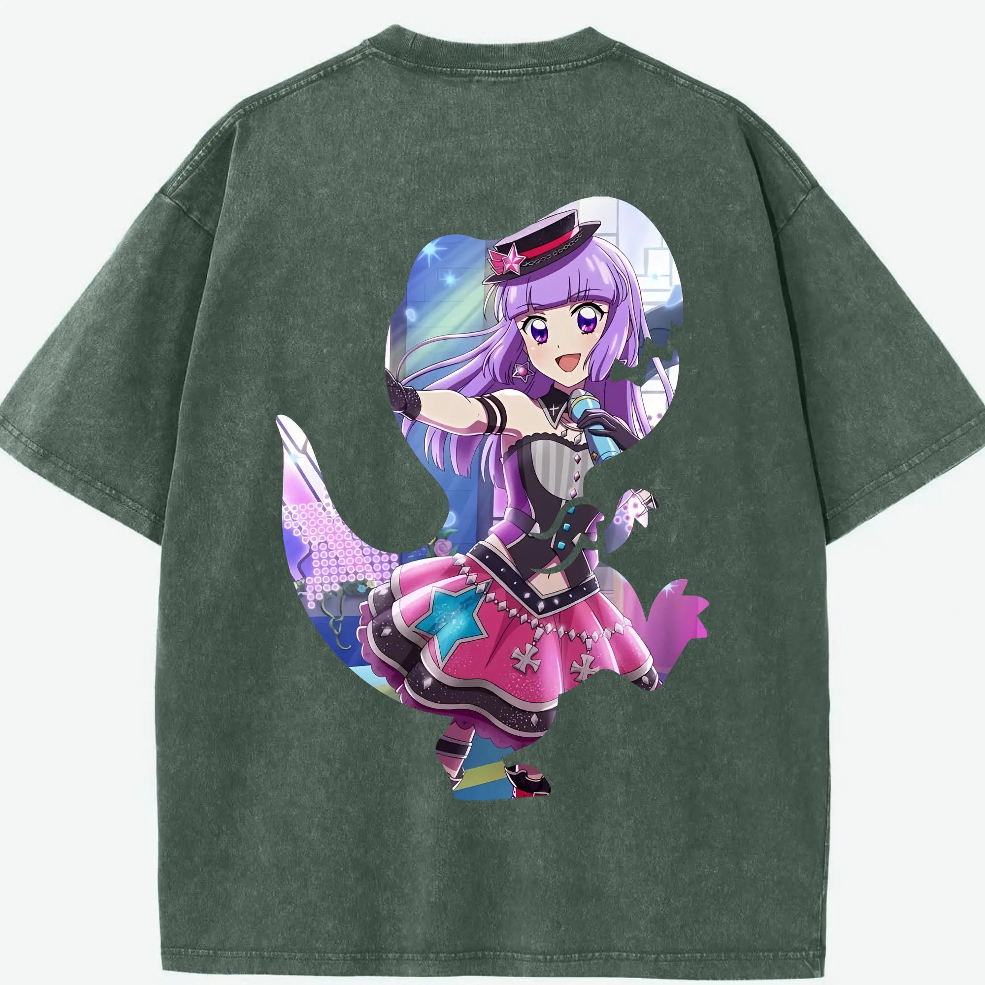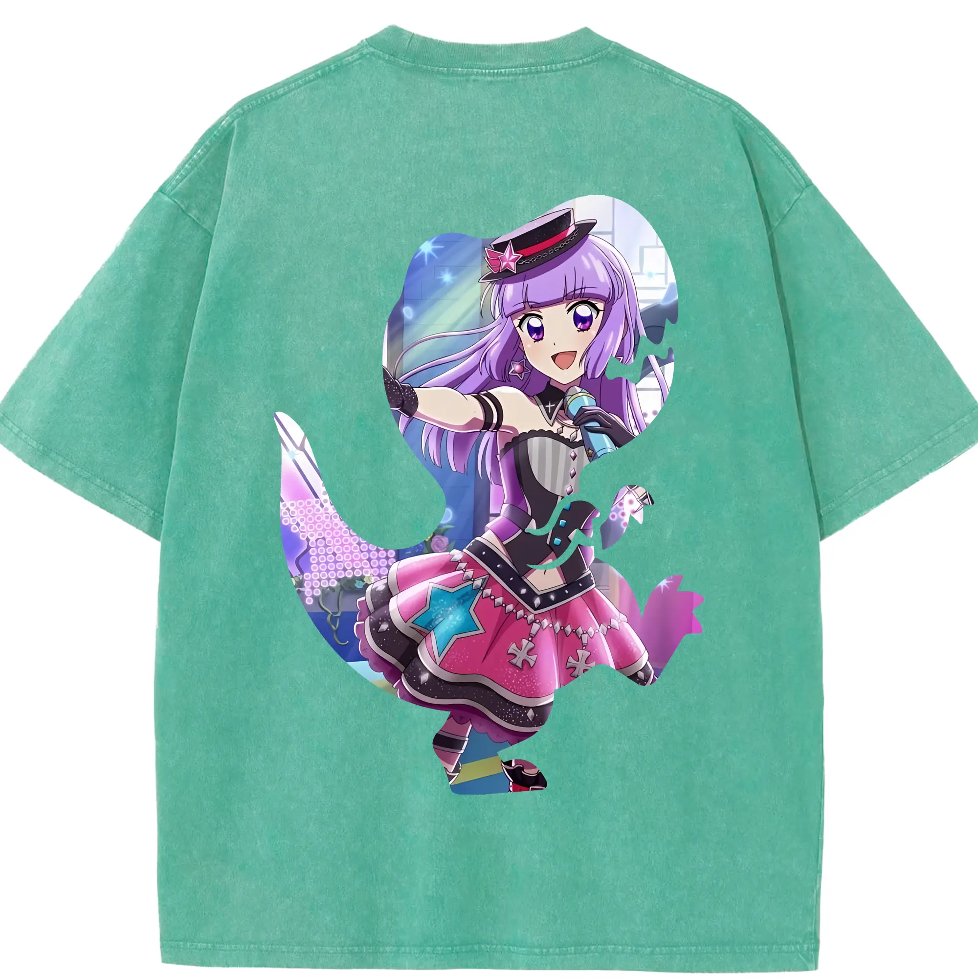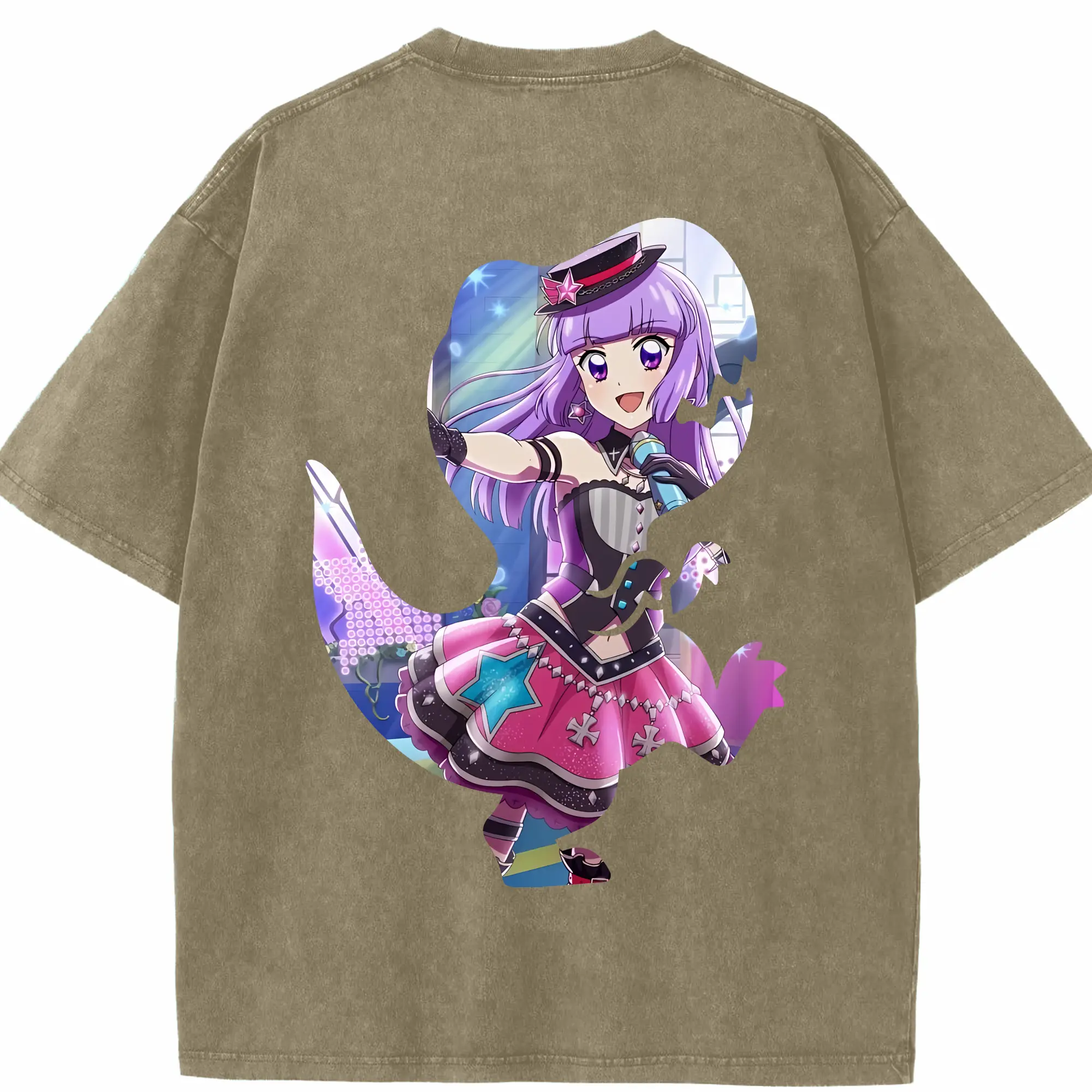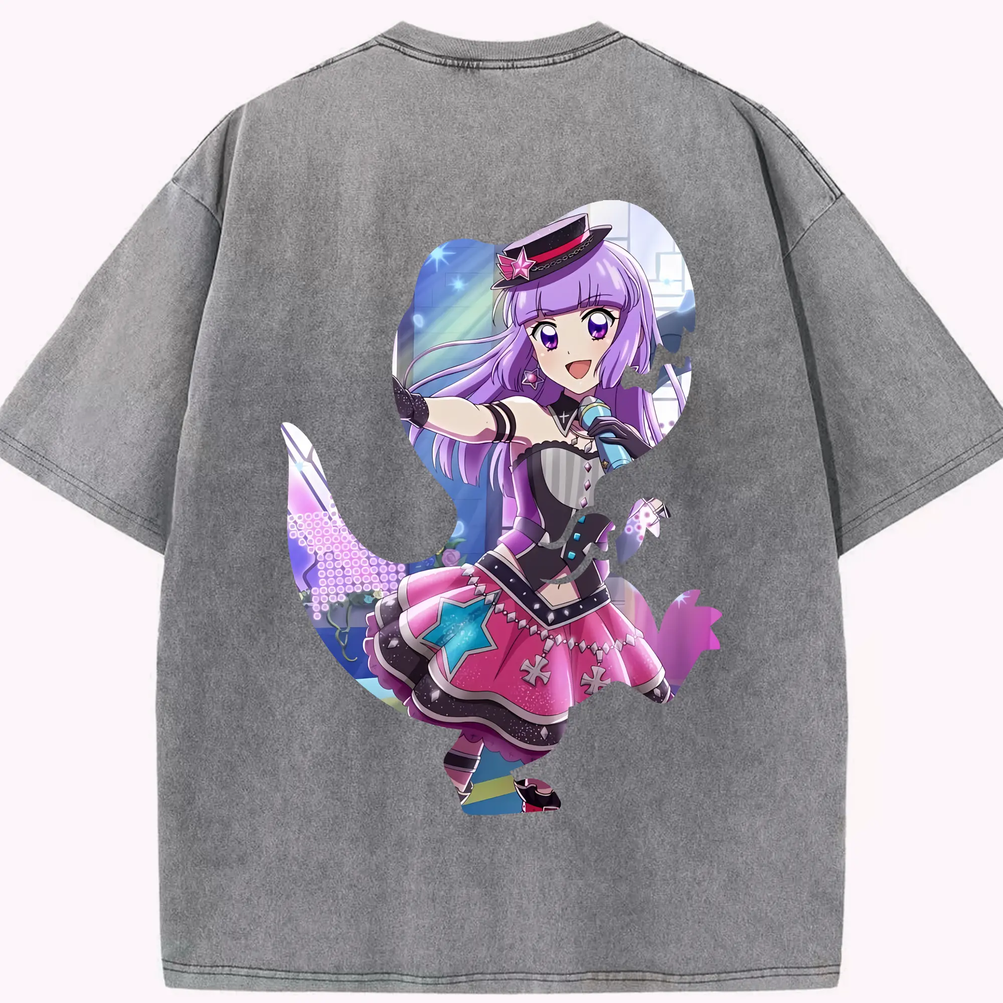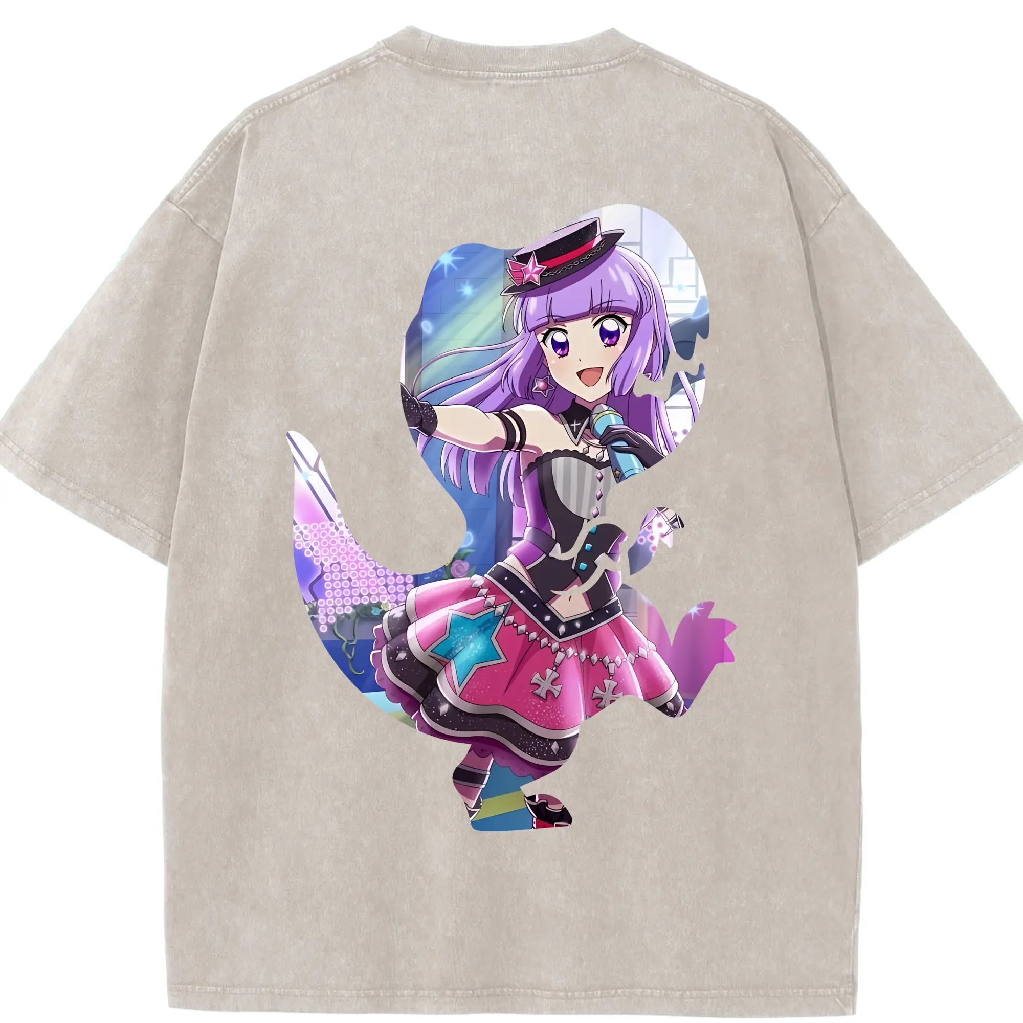 アイカツ グッズ 氷上 スミレ - 綿100% ヴィンテージ風 半袖Tシャツ ・ フロントプリント ・ 柔らか肌触り ・ 通気性 快適 ・ スポーツ カジュアル 外出用