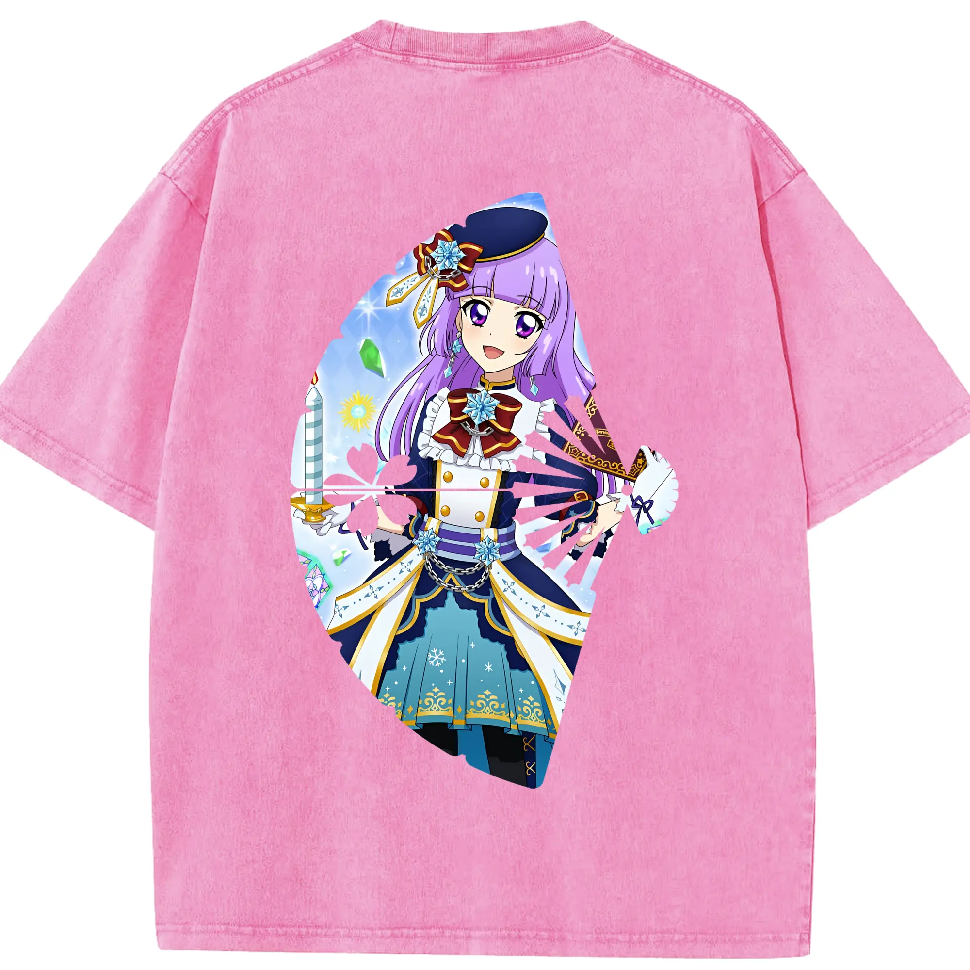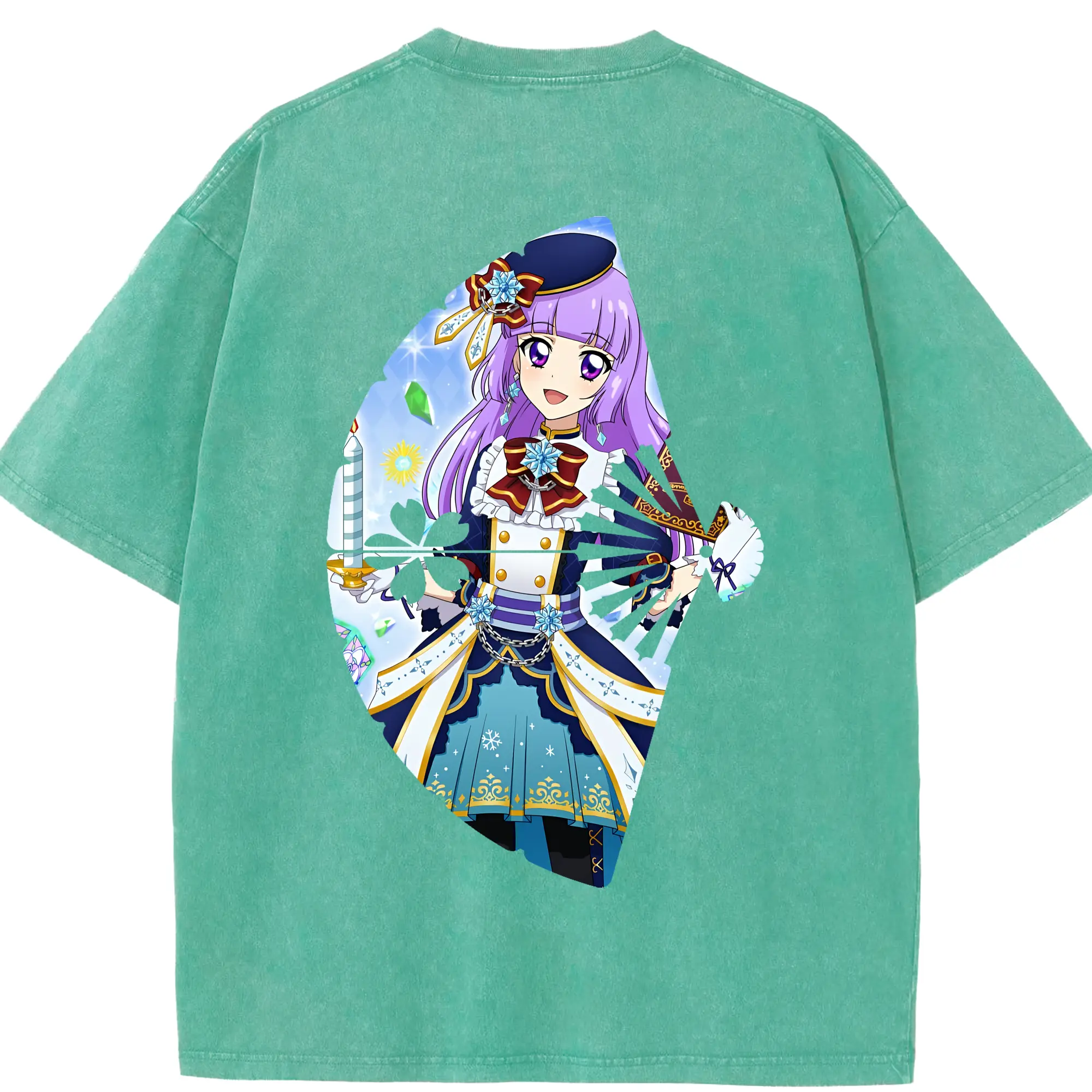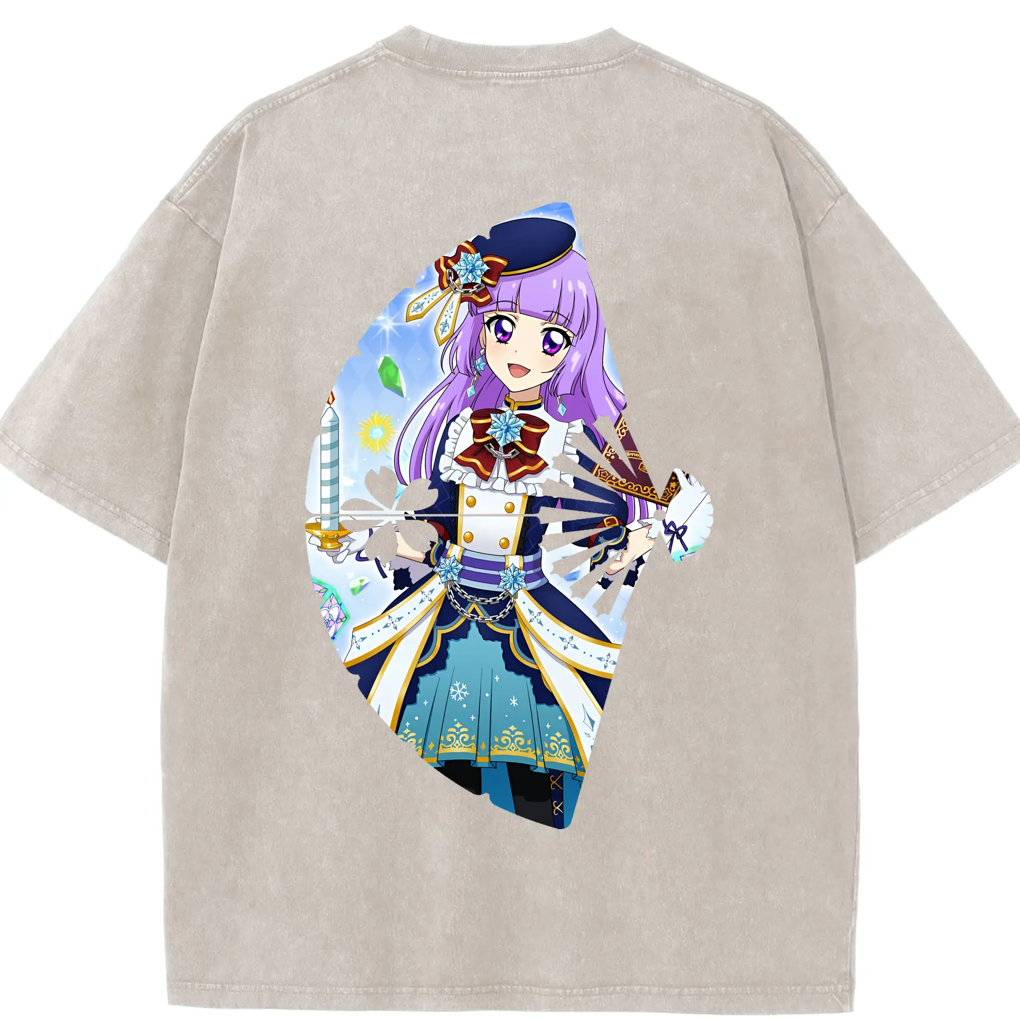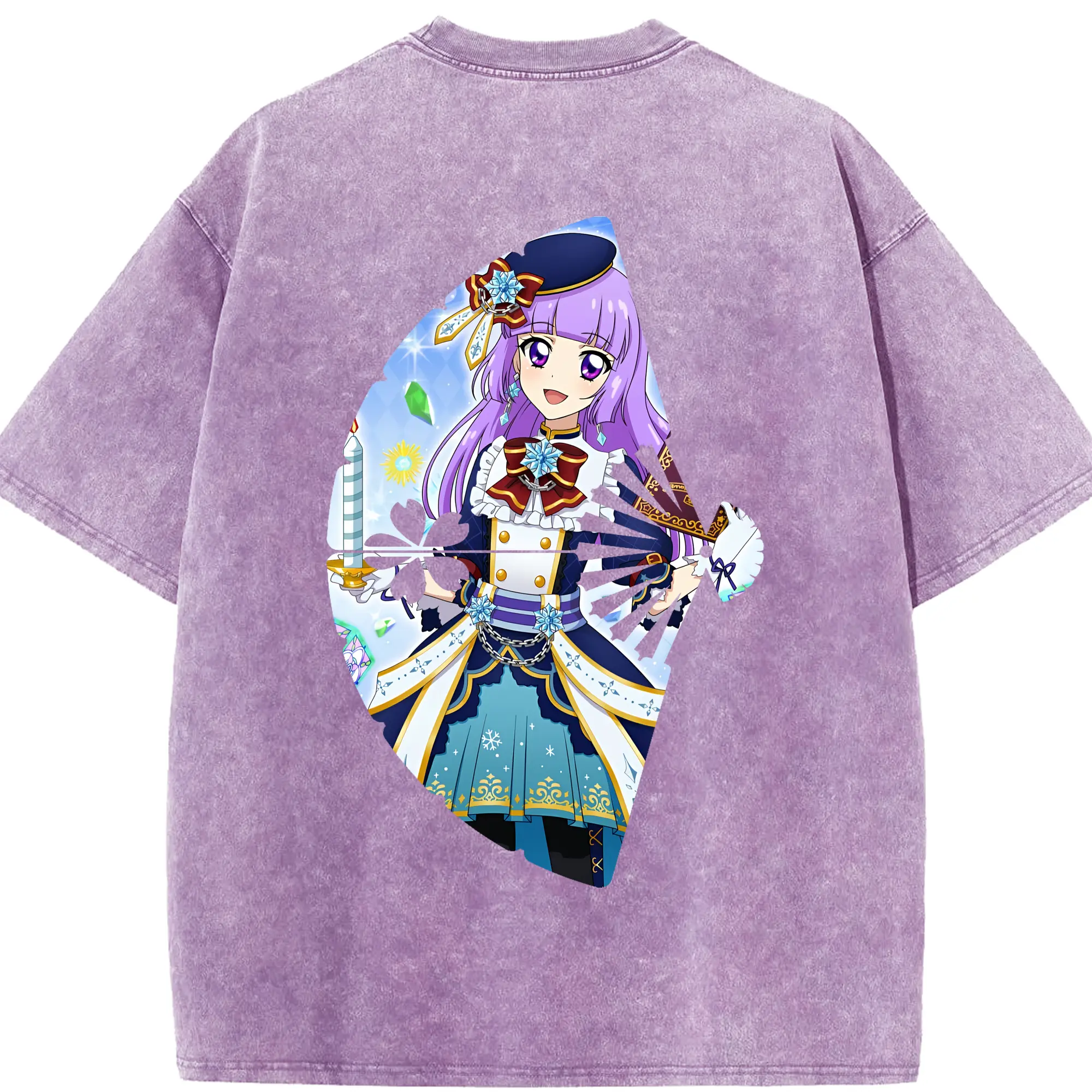 アイカツ グッズ 氷上 スミレ - 綿100% ヴィンテージ風 半袖Tシャツ ・ フロントプリント ・ 柔らか肌触り ・ 通気性 快適 ・ スポーツ カジュアル 外出用