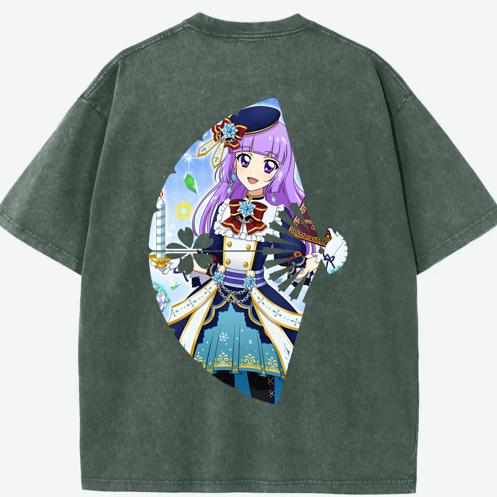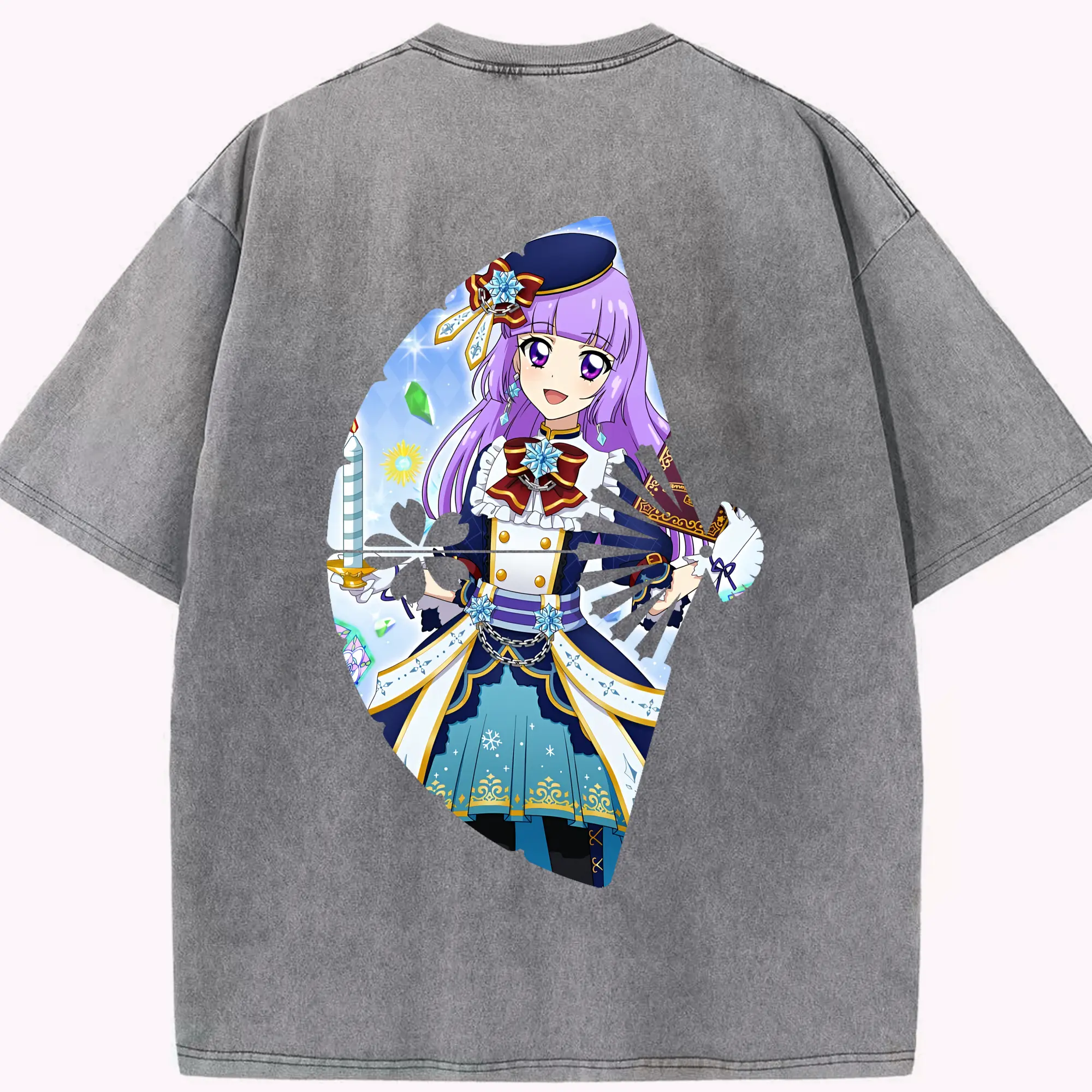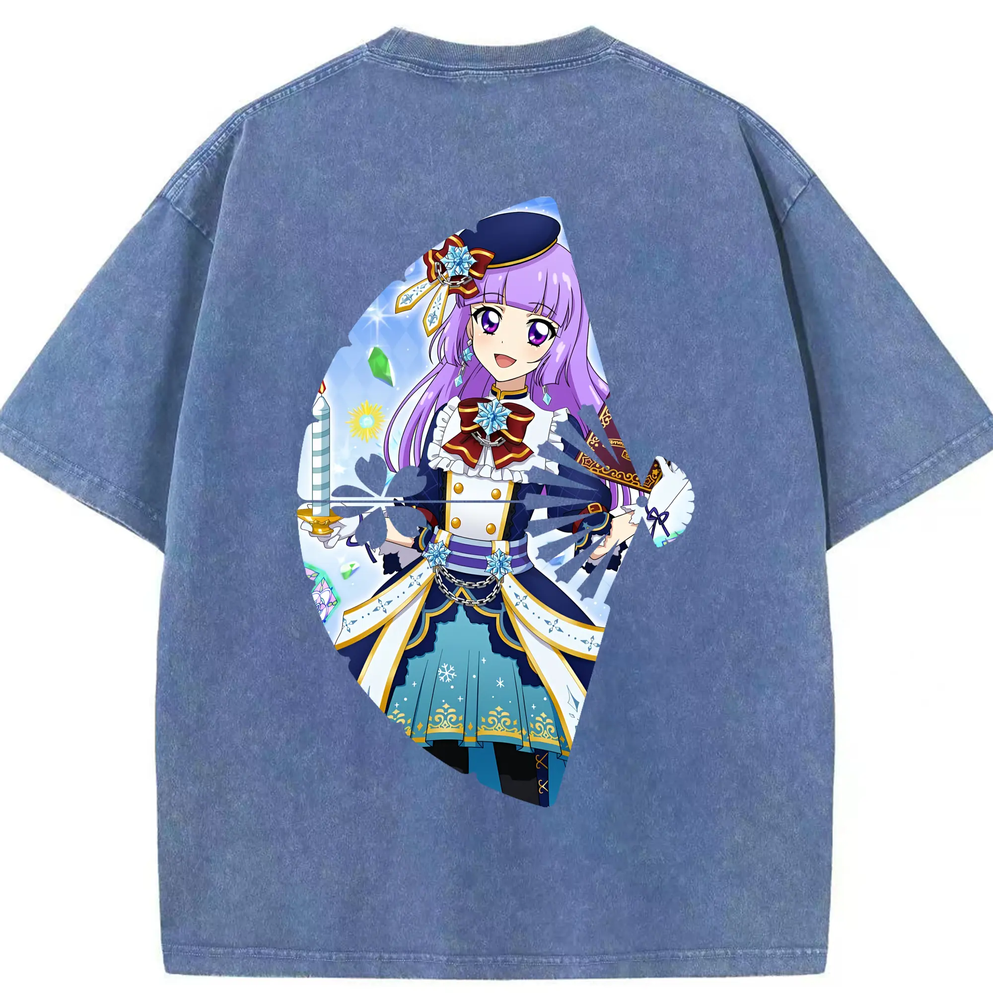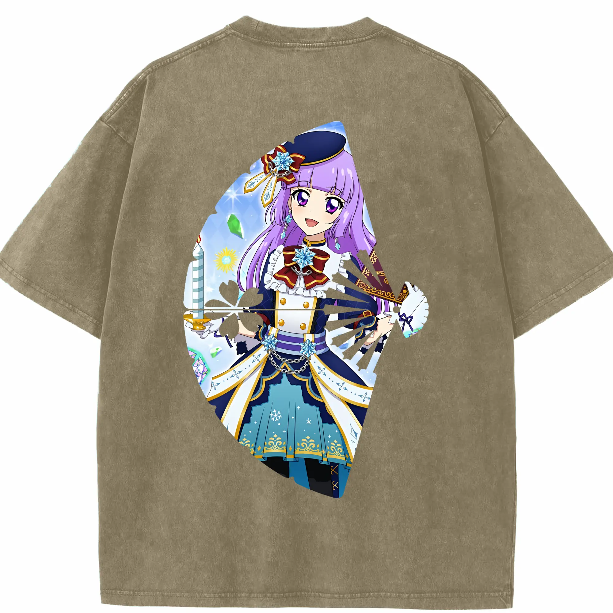 アイカツ グッズ 氷上 スミレ - 綿100% ヴィンテージ風 半袖Tシャツ ・ フロントプリント ・ 柔らか肌触り ・ 通気性 快適 ・ スポーツ カジュアル 外出用