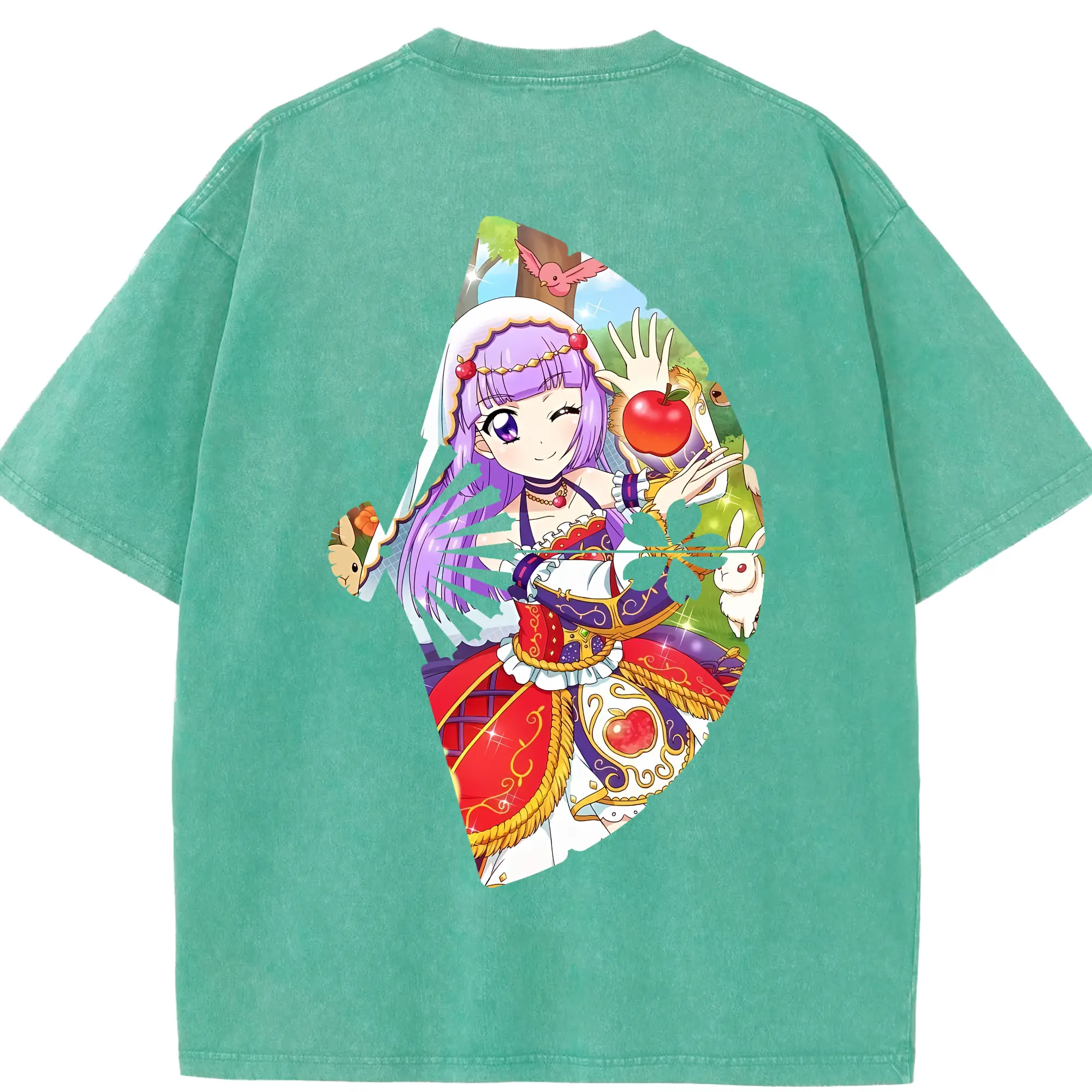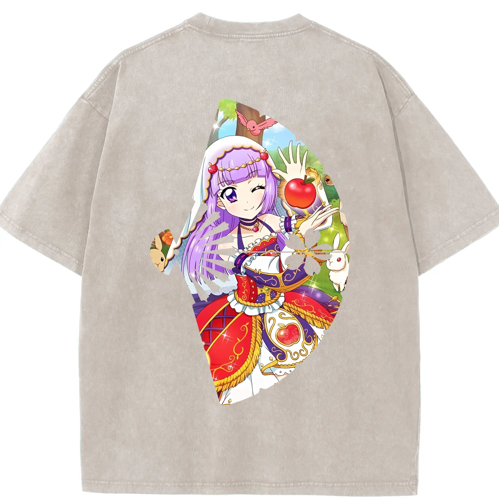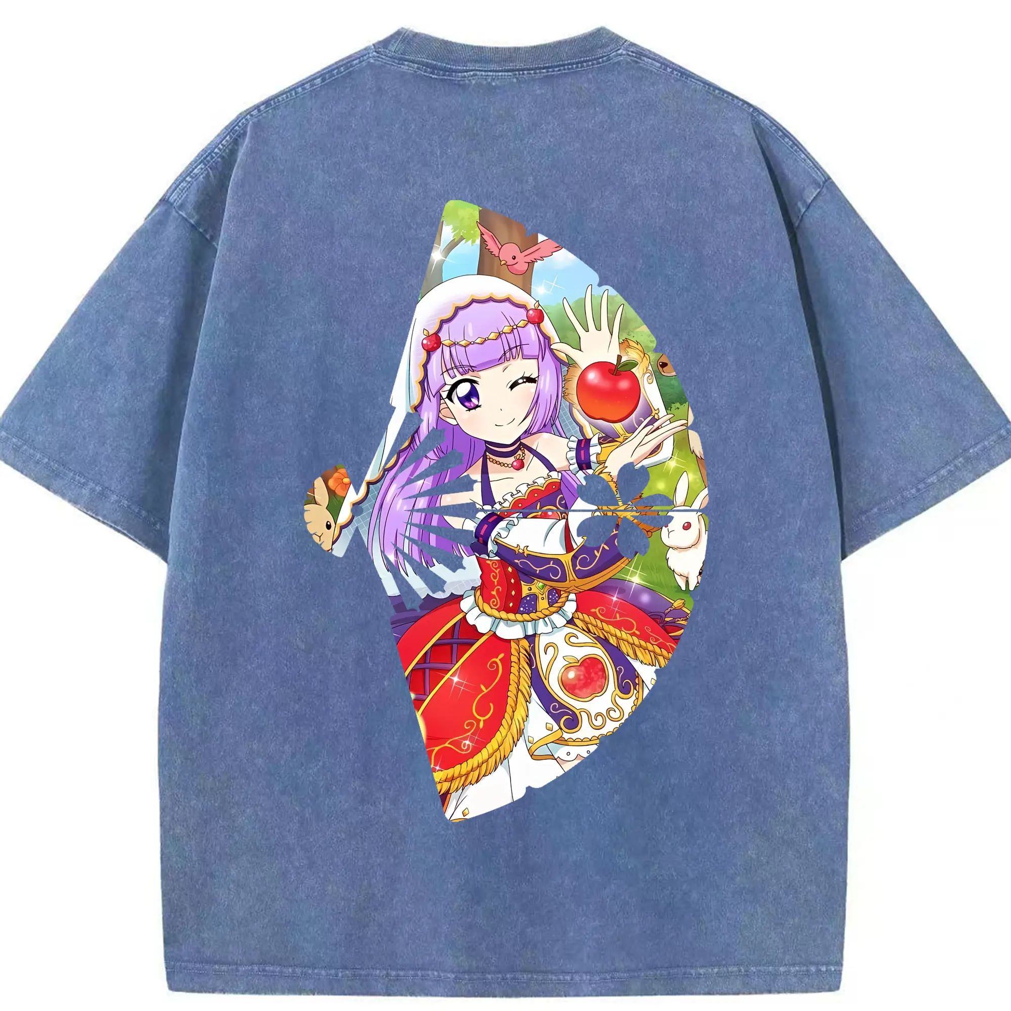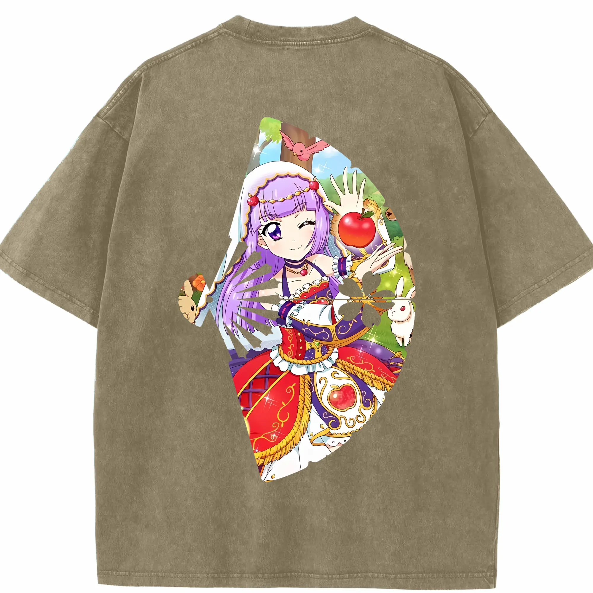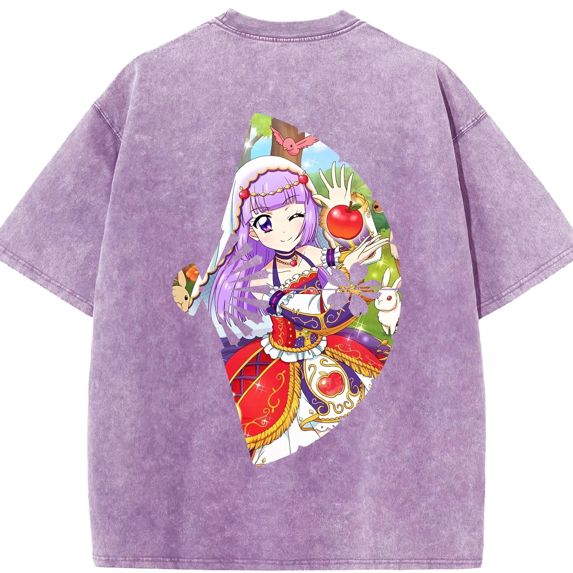 アイカツ グッズ 氷上 スミレ - 綿100% ヴィンテージ風 半袖Tシャツ ・ フロントプリント ・ 柔らか肌触り ・ 通気性 快適 ・ スポーツ カジュアル 外出用