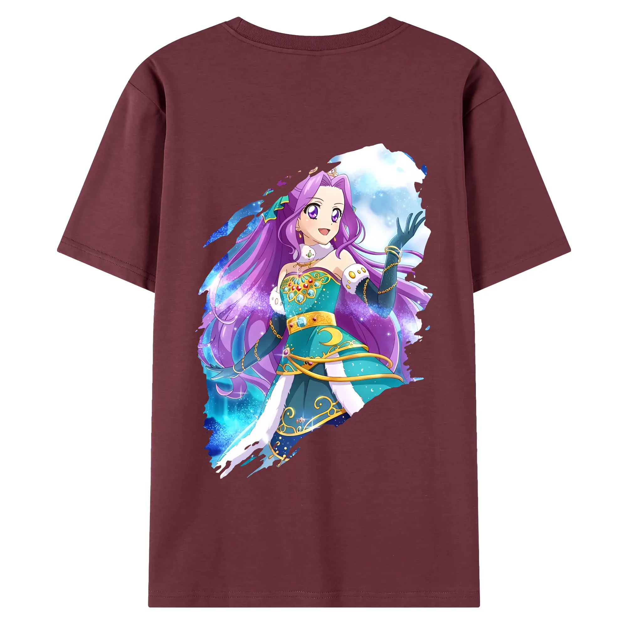 アイカツ グッズ 神崎 美月 - 綿100% ヴィンテージ風 半袖Tシャツ ・ 背面プリント ・ 柔らか肌触り ・ 通気性 快適 ・ スポーツ カジュアル 外出用
