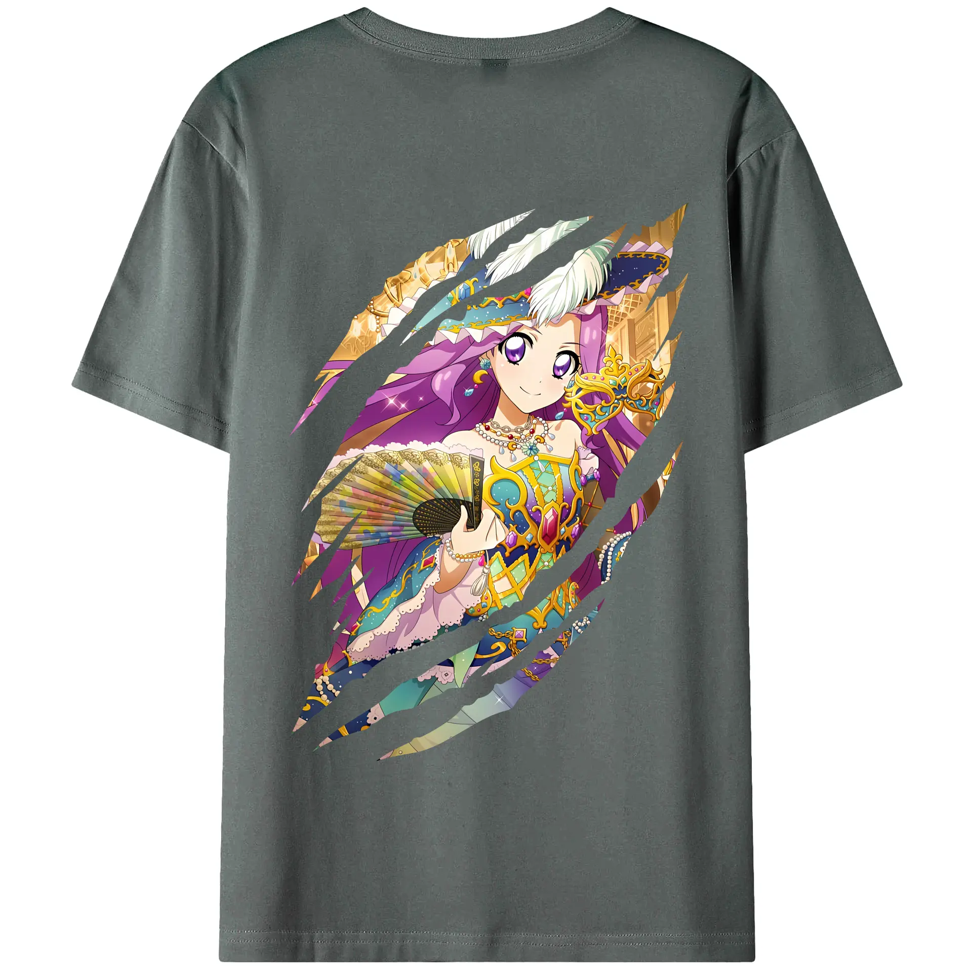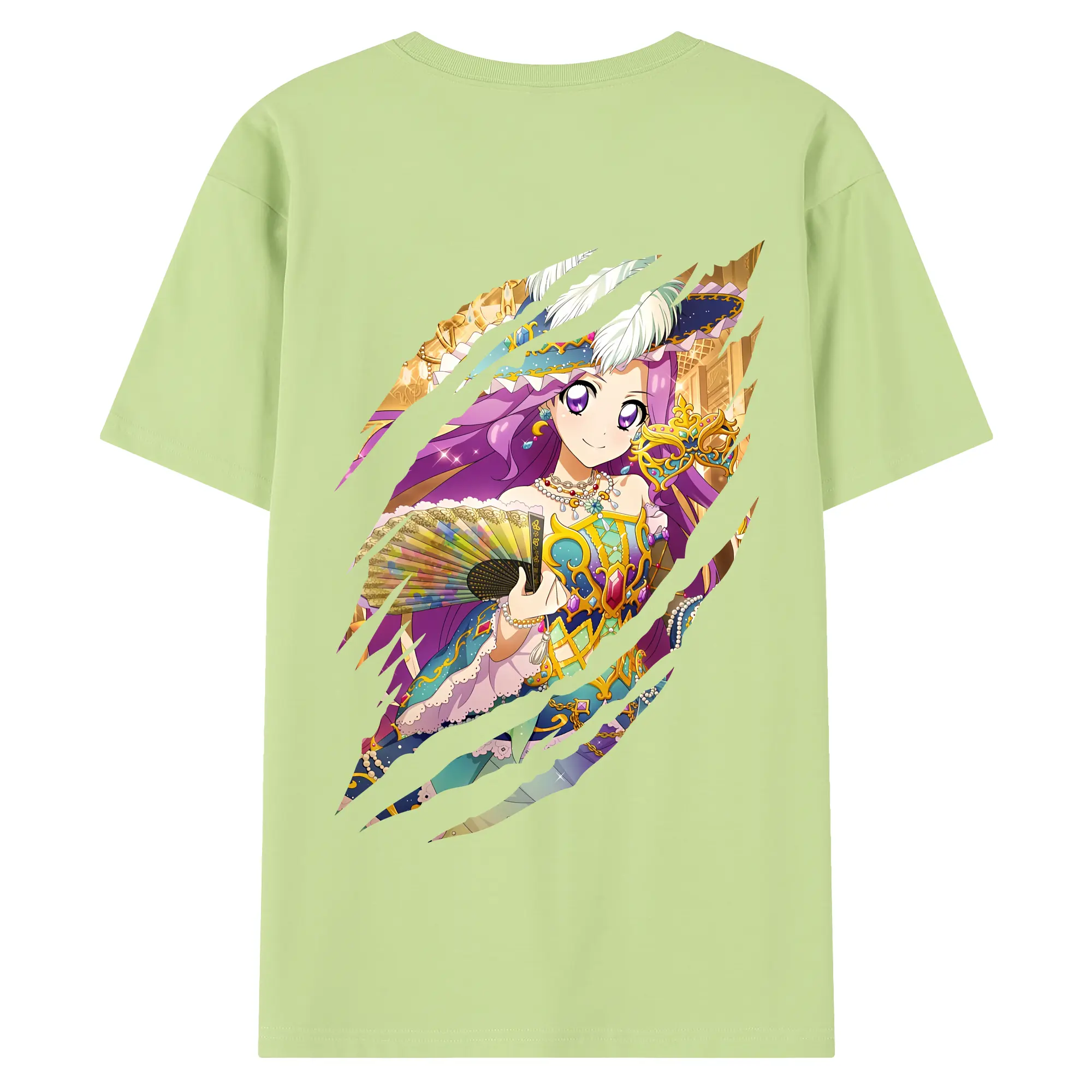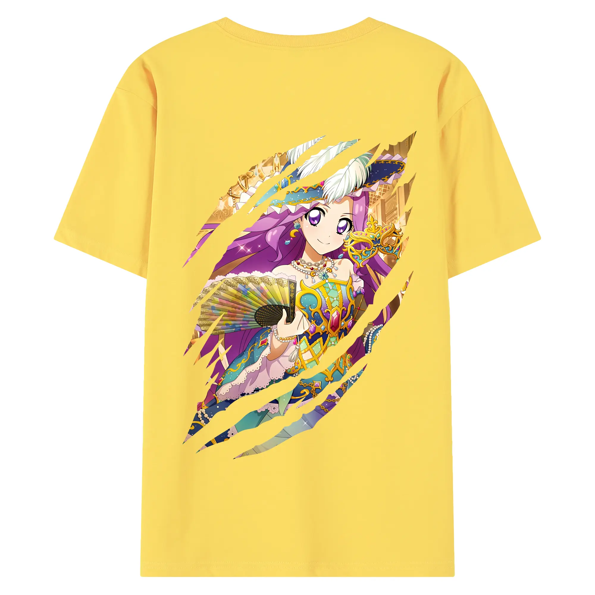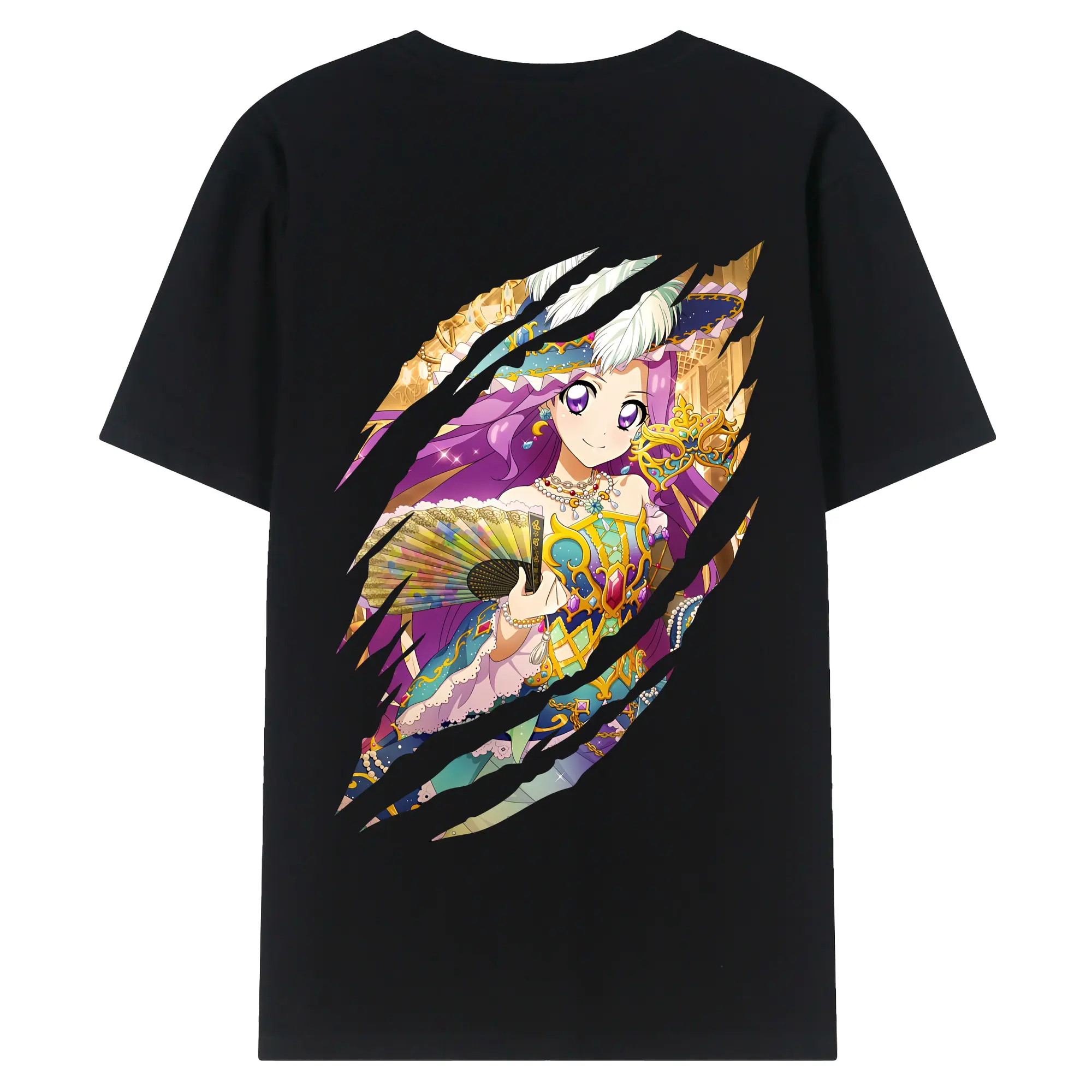 アイカツ グッズ 神崎 美月 - 綿100% ヴィンテージ風 半袖Tシャツ ・ 背面プリント ・ 柔らか肌触り ・ 通気性 快適 ・ スポーツ カジュアル 外出用