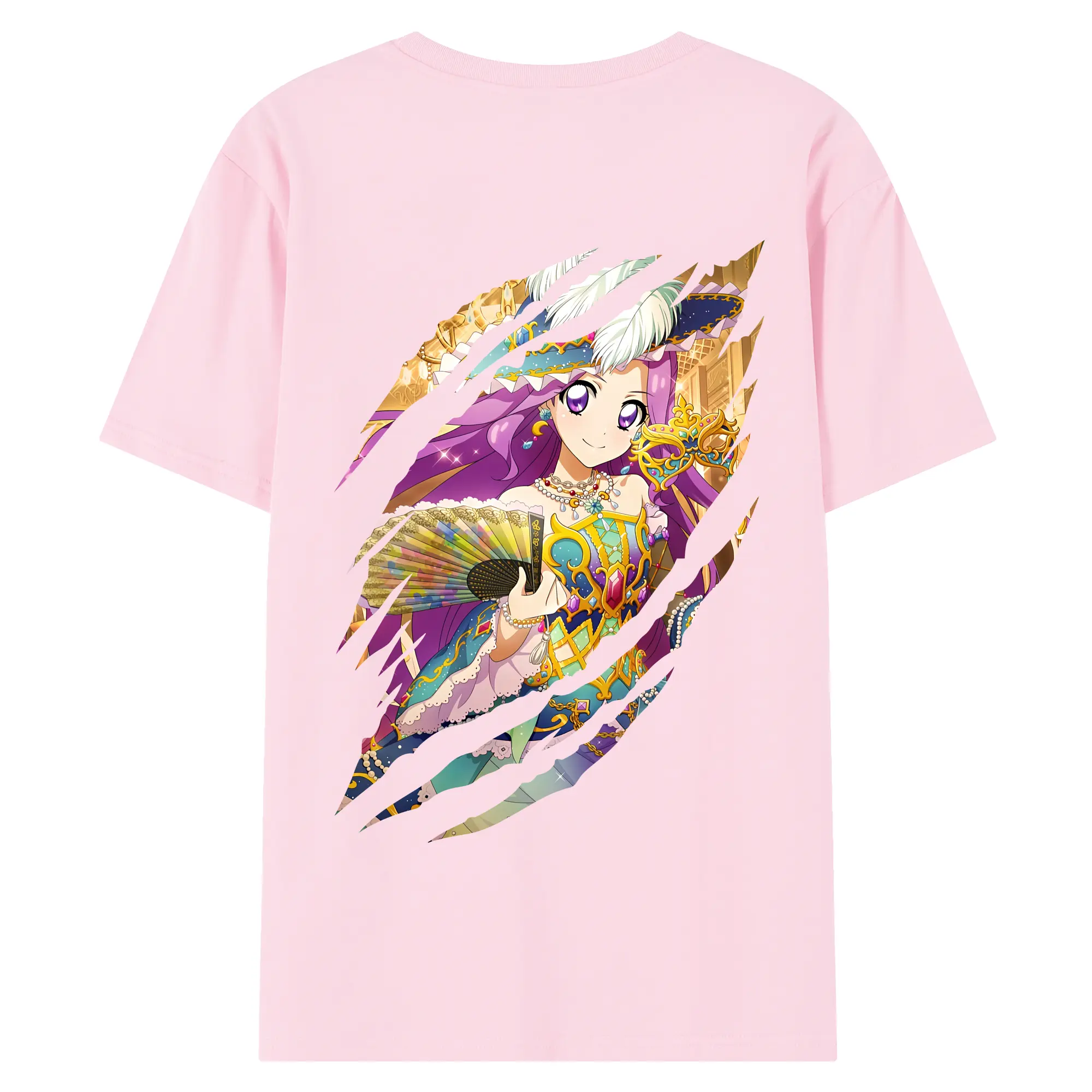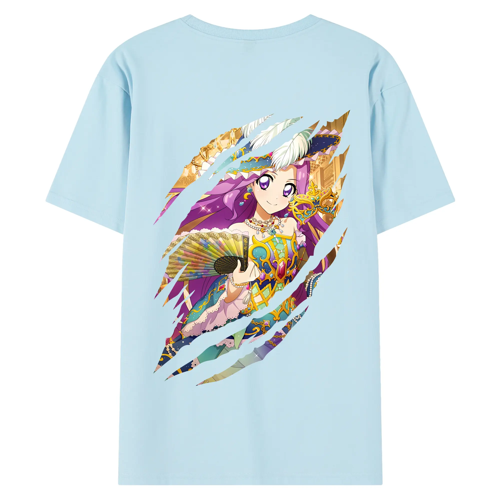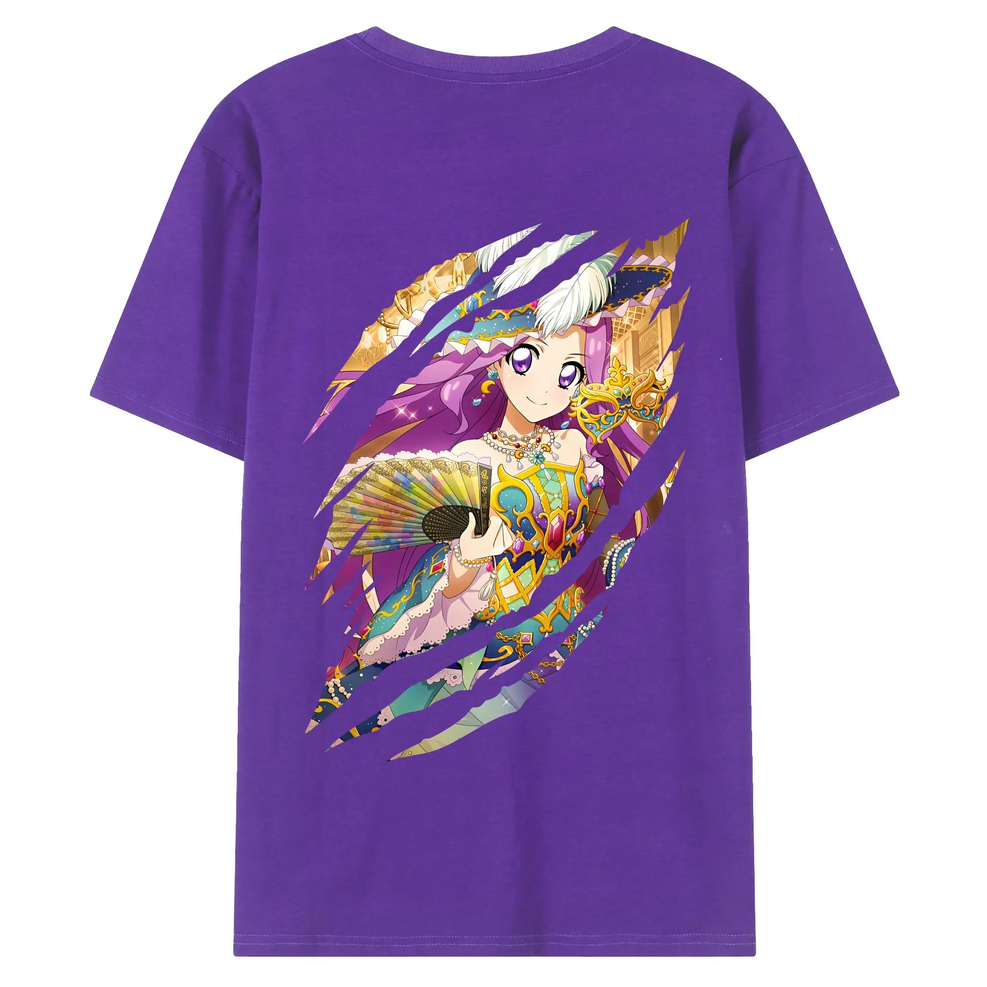 アイカツ グッズ 神崎 美月 - 綿100% ヴィンテージ風 半袖Tシャツ ・ 背面プリント ・ 柔らか肌触り ・ 通気性 快適 ・ スポーツ カジュアル 外出用