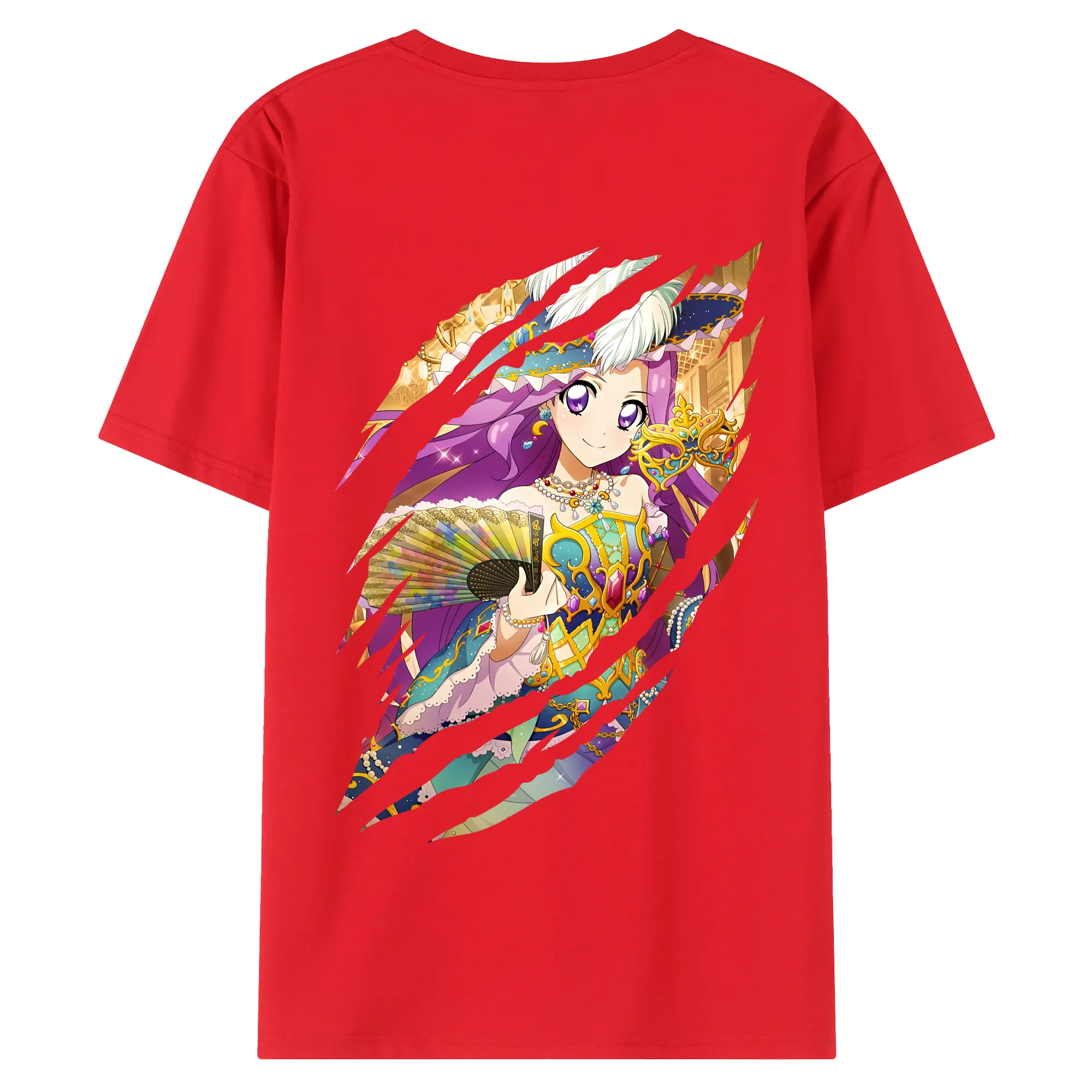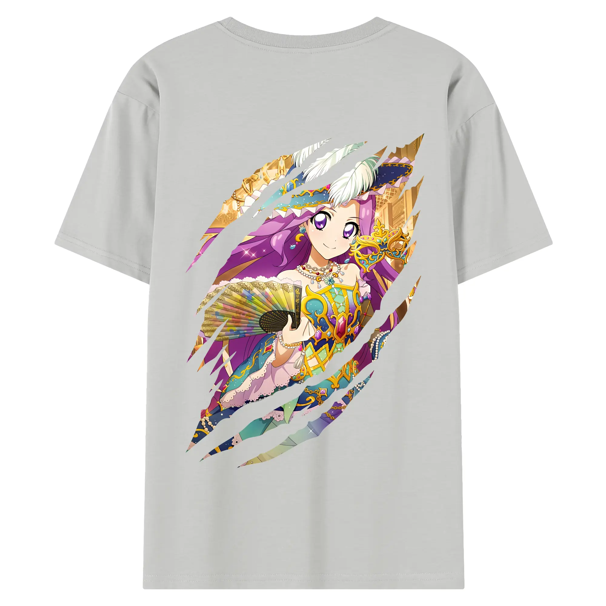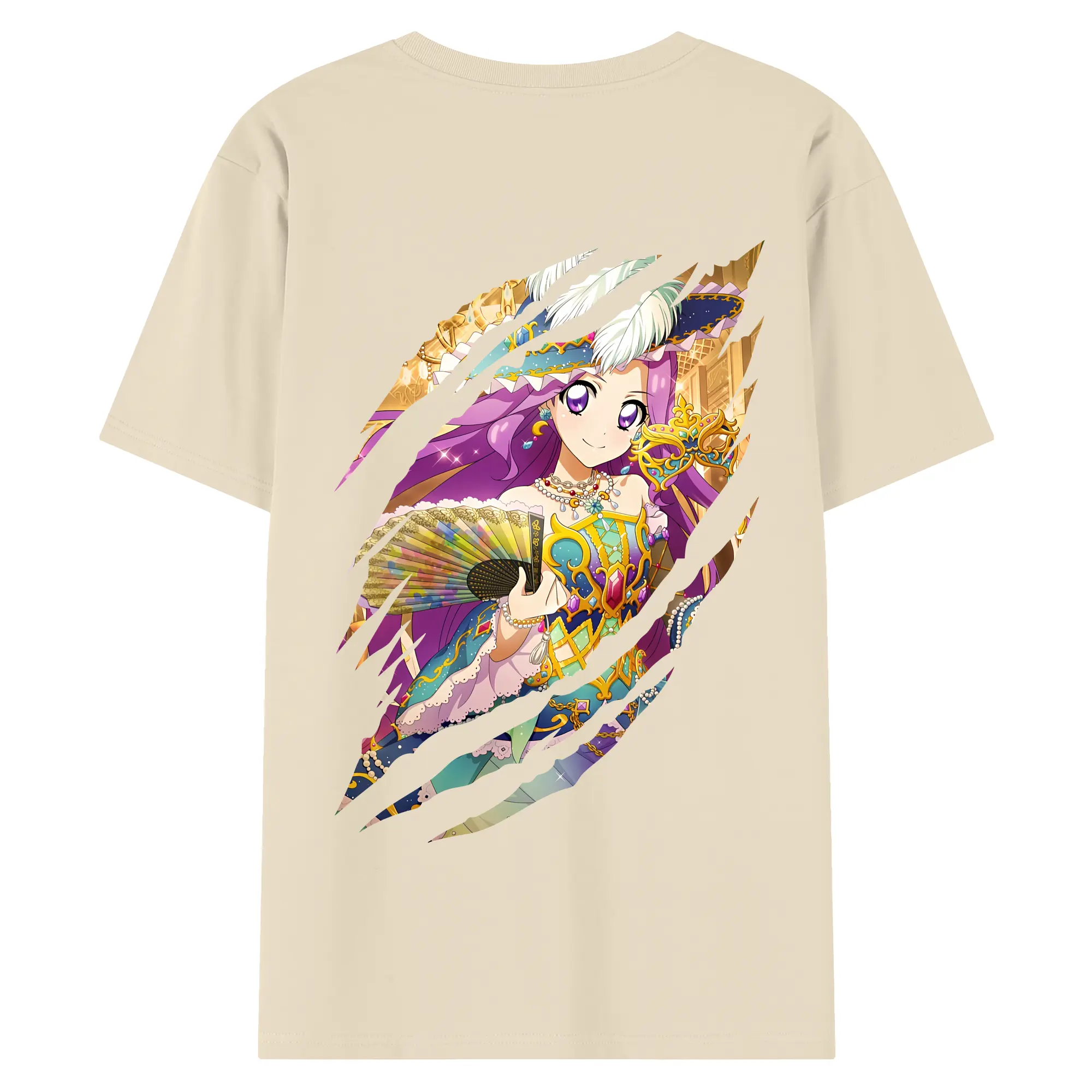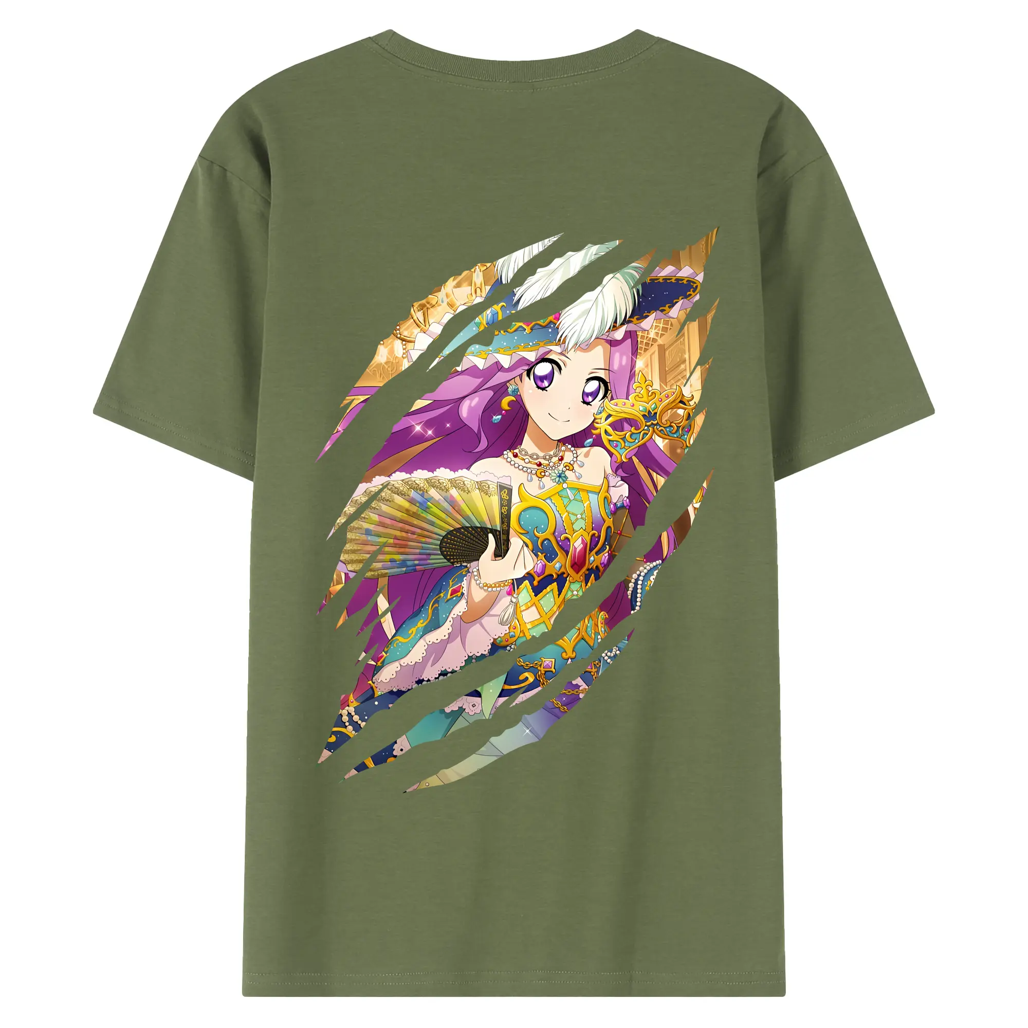 アイカツ グッズ 神崎 美月 - 綿100% ヴィンテージ風 半袖Tシャツ ・ 背面プリント ・ 柔らか肌触り ・ 通気性 快適 ・ スポーツ カジュアル 外出用