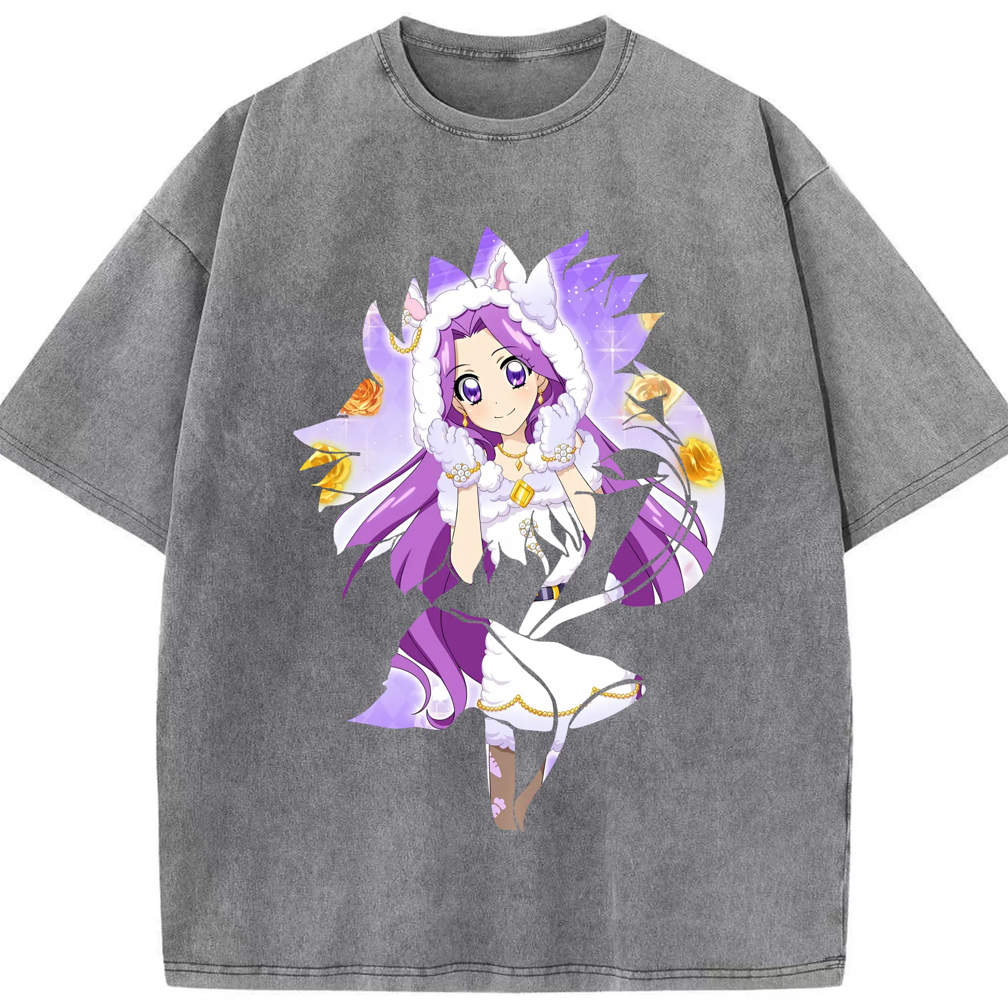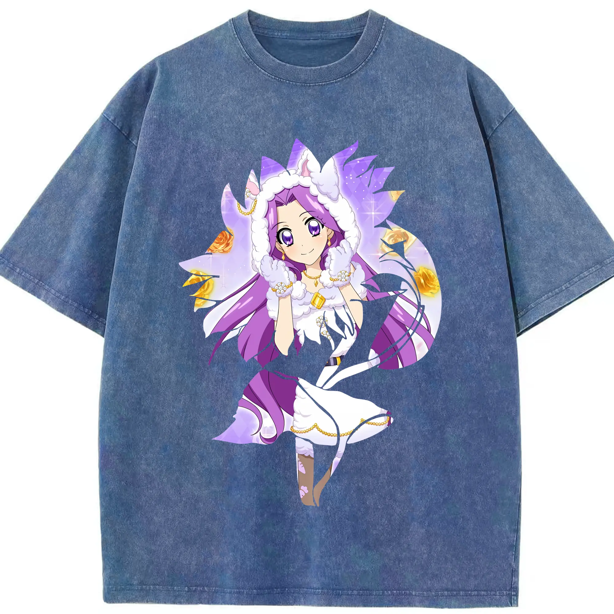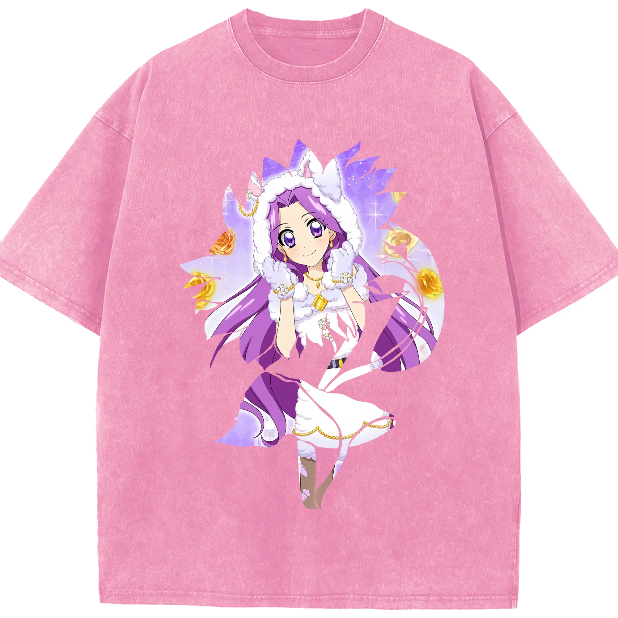 アイカツ グッズ 神崎 美月 - 綿100% ヴィンテージ風 半袖Tシャツ ・ 背面プリント ・ 柔らか肌触り ・ 通気性 快適 ・ スポーツ カジュアル 外出用