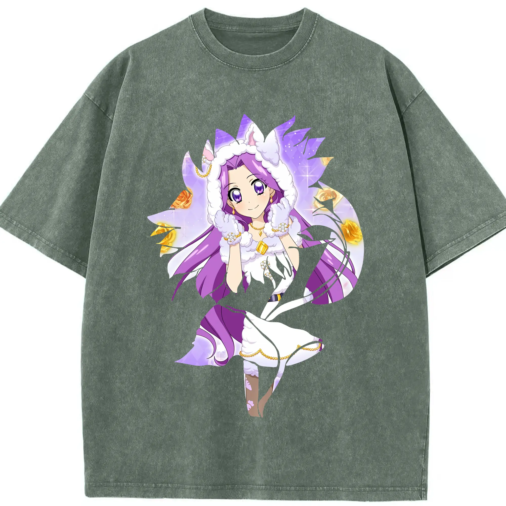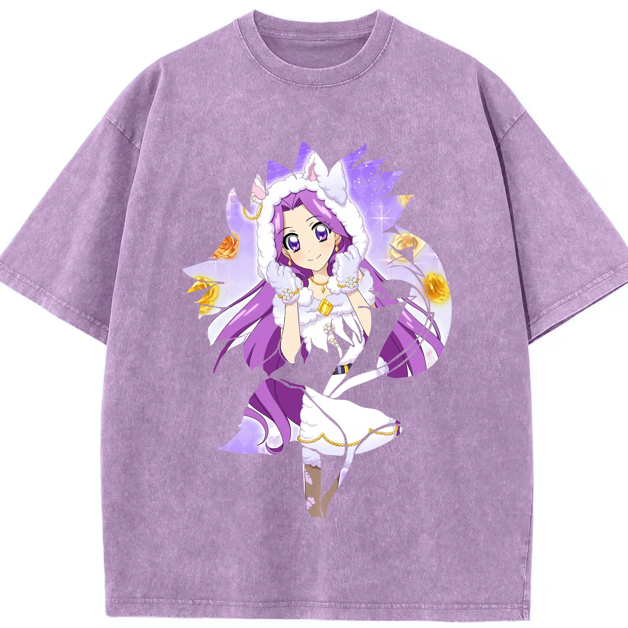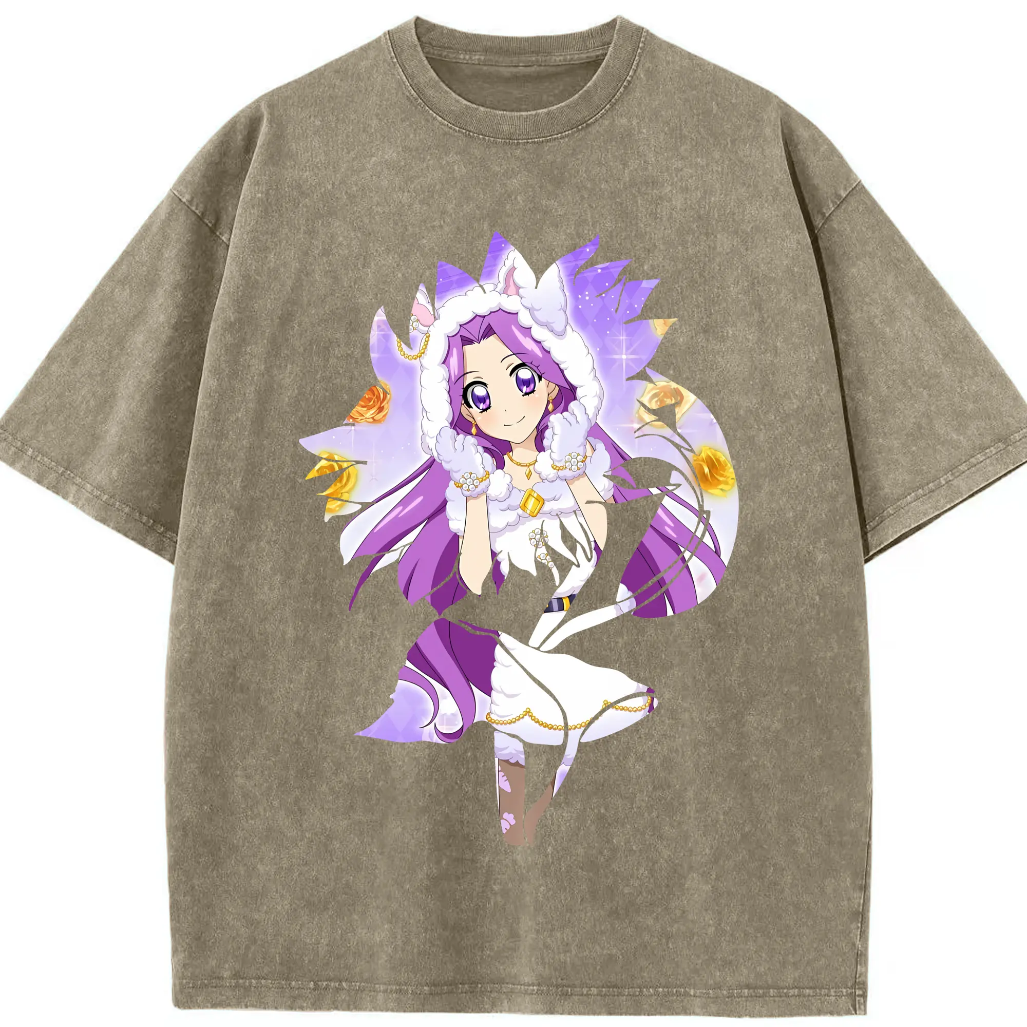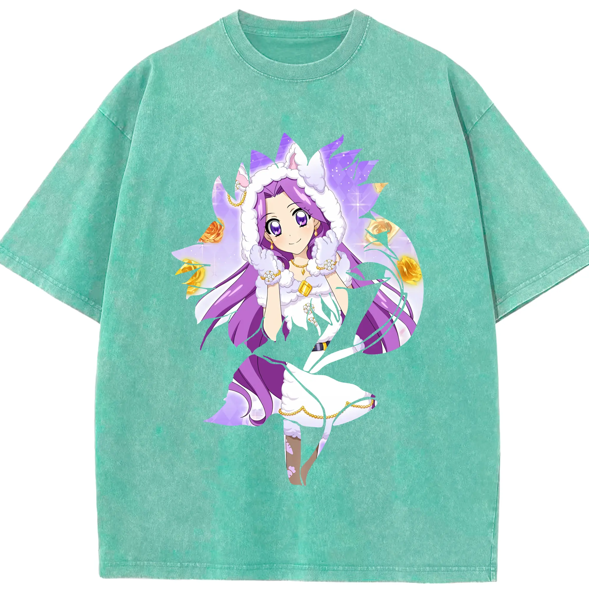 アイカツ グッズ 神崎 美月 - 綿100% ヴィンテージ風 半袖Tシャツ ・ 背面プリント ・ 柔らか肌触り ・ 通気性 快適 ・ スポーツ カジュアル 外出用