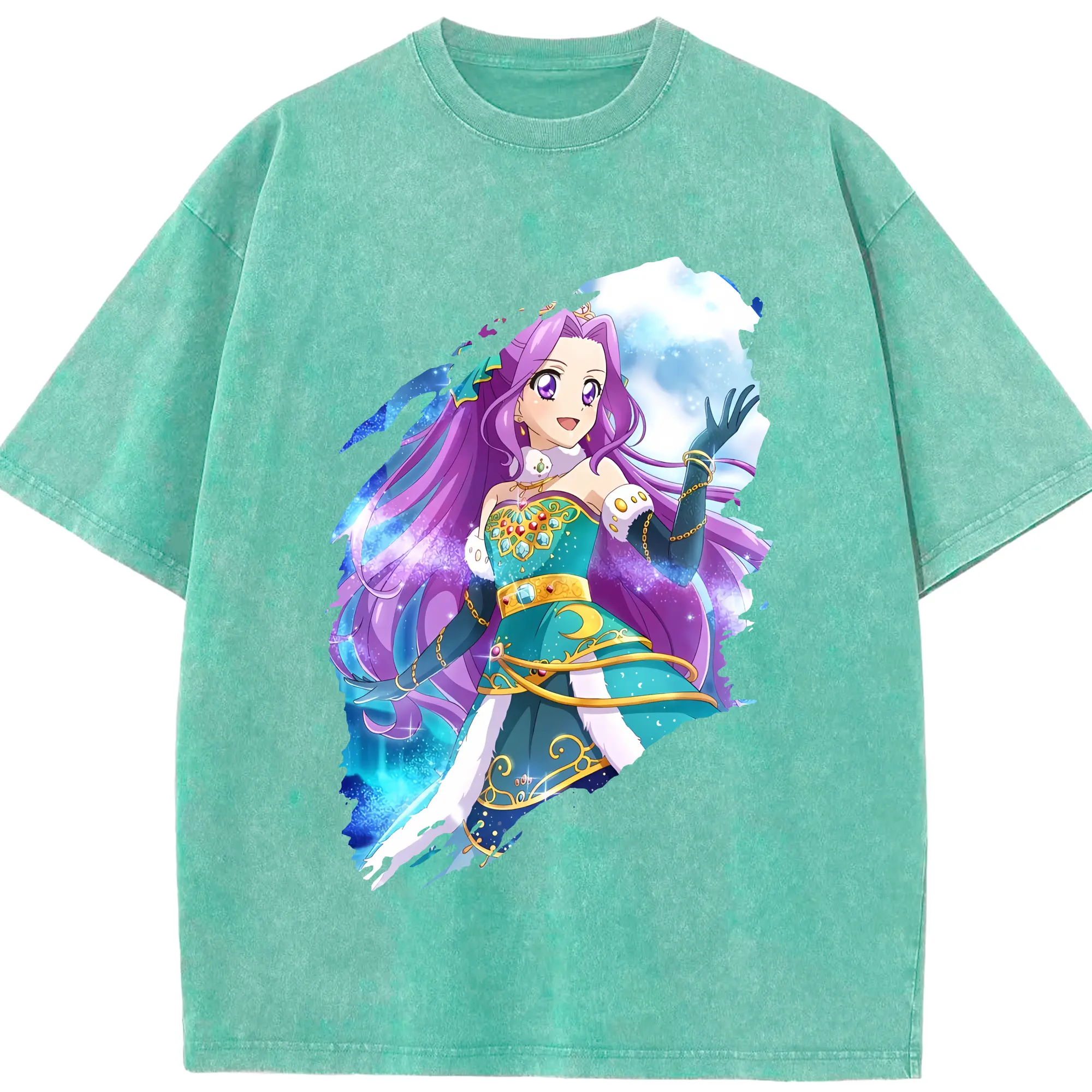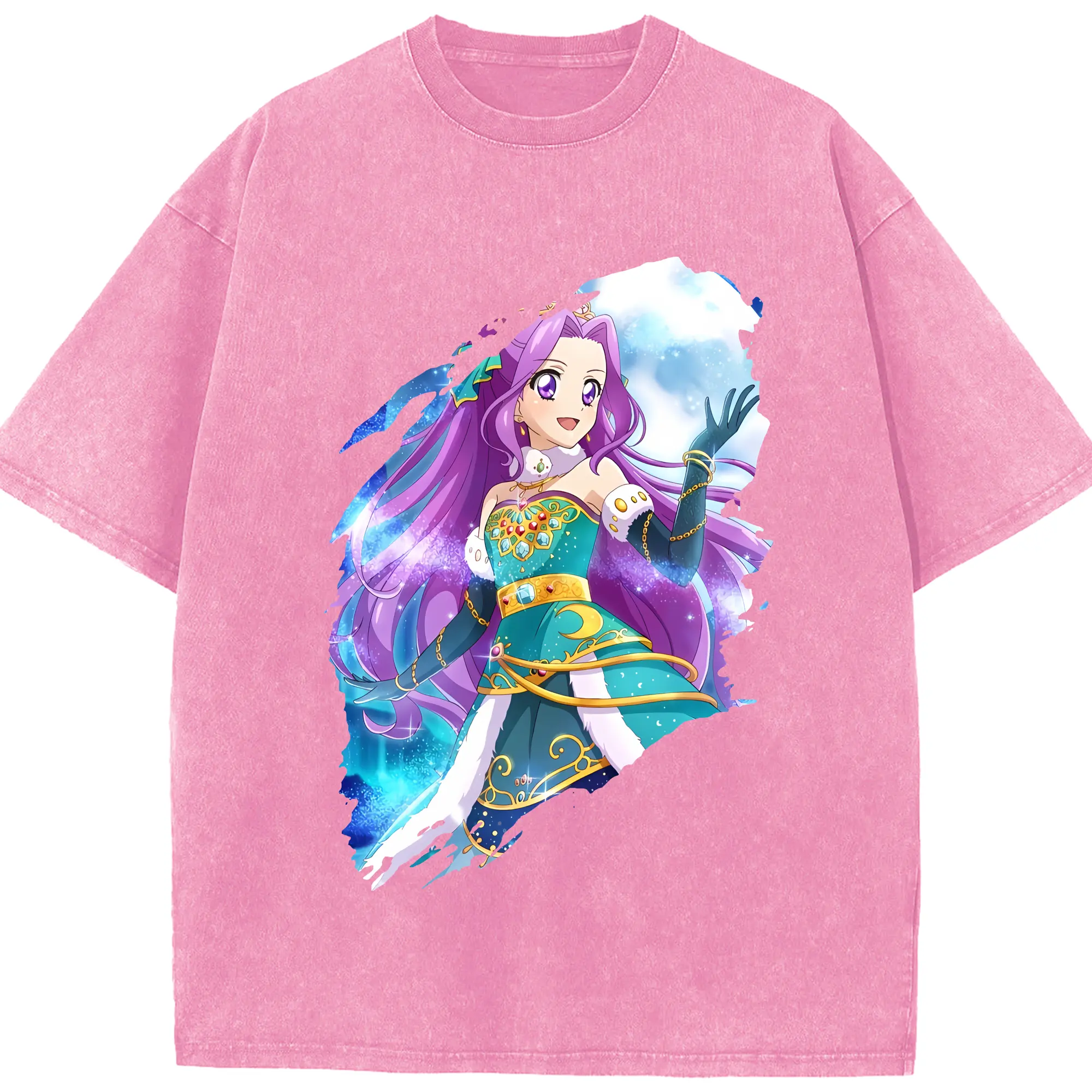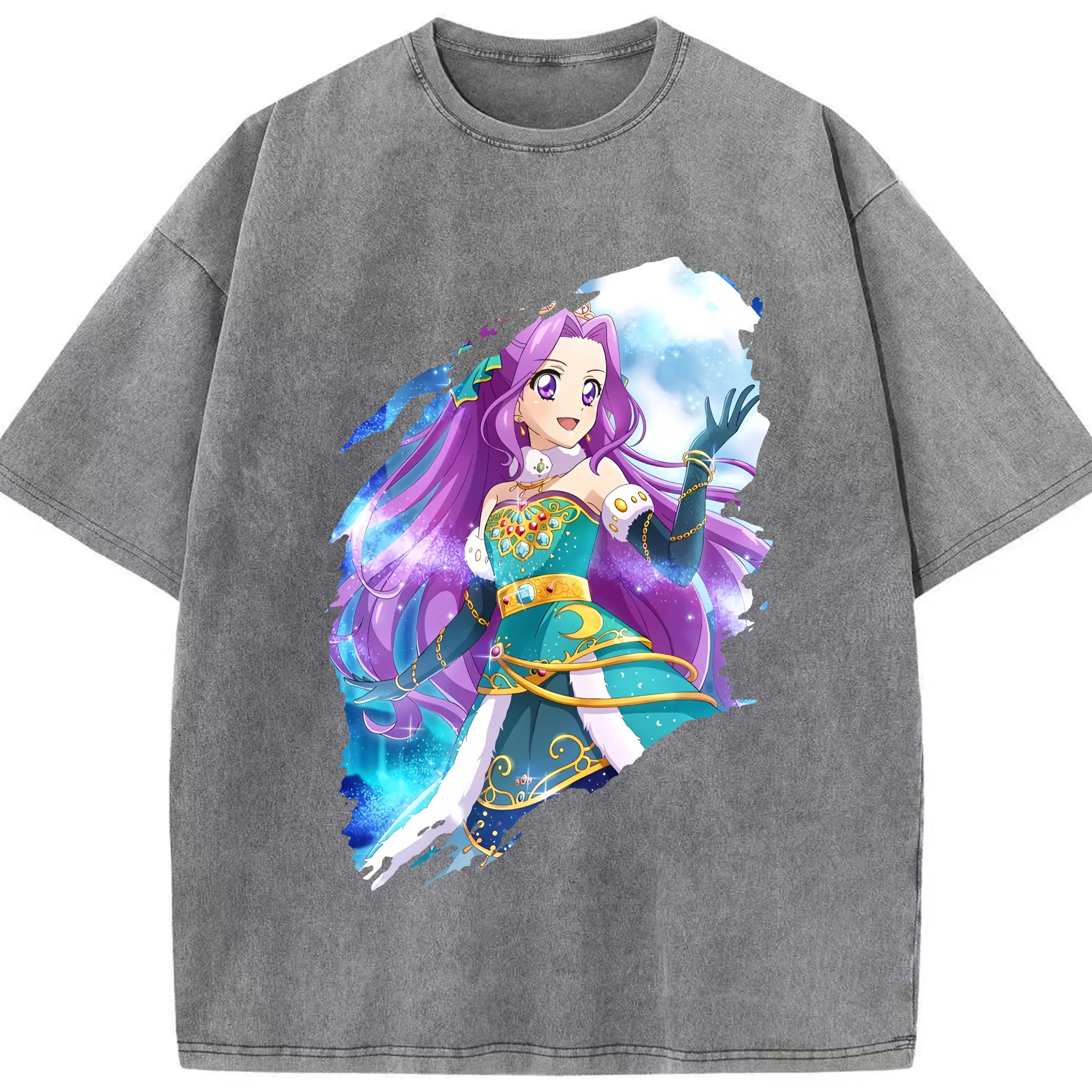 アイカツ グッズ 神崎 美月 - 綿100% ヴィンテージ風 半袖Tシャツ ・ 背面プリント ・ 柔らか肌触り ・ 通気性 快適 ・ スポーツ カジュアル 外出用