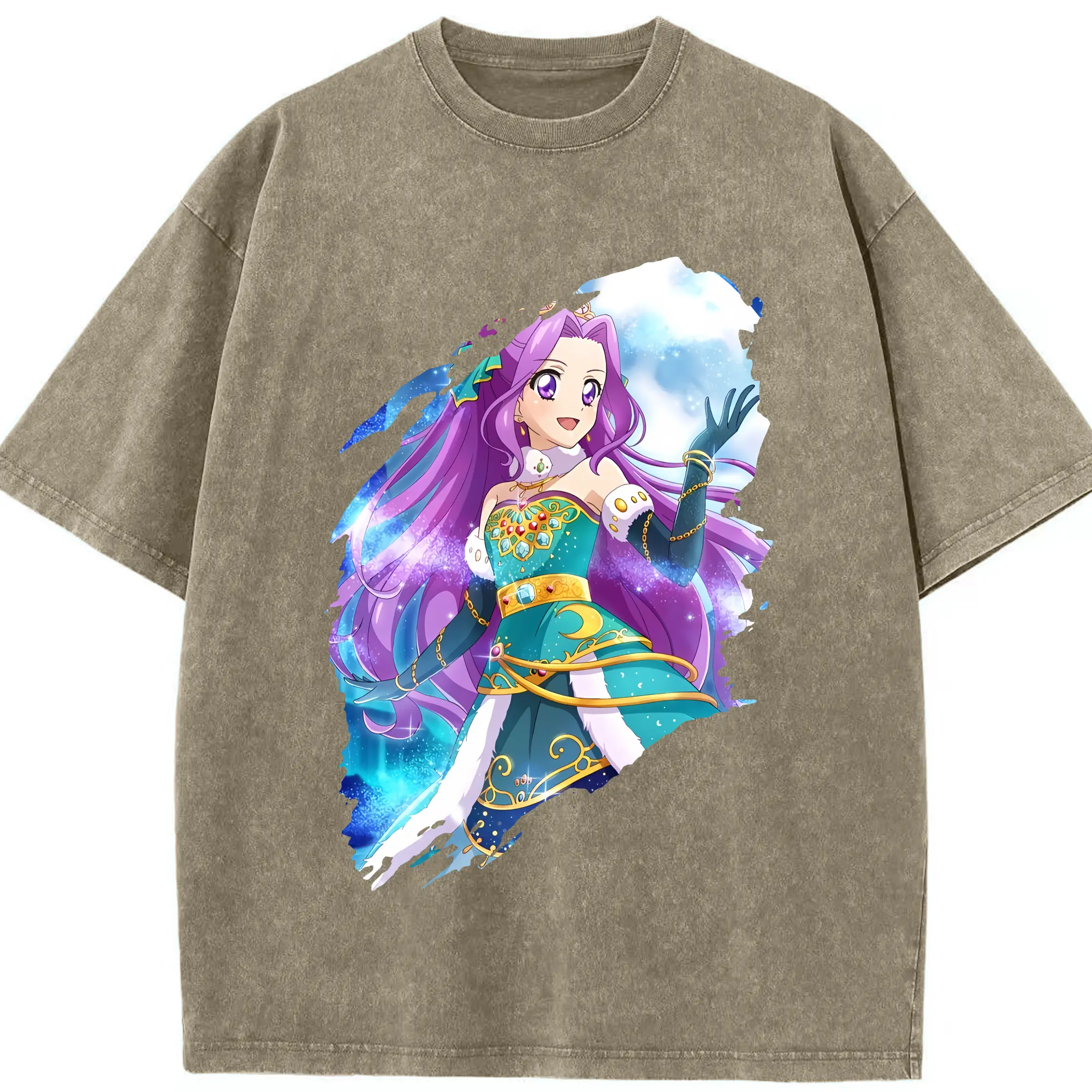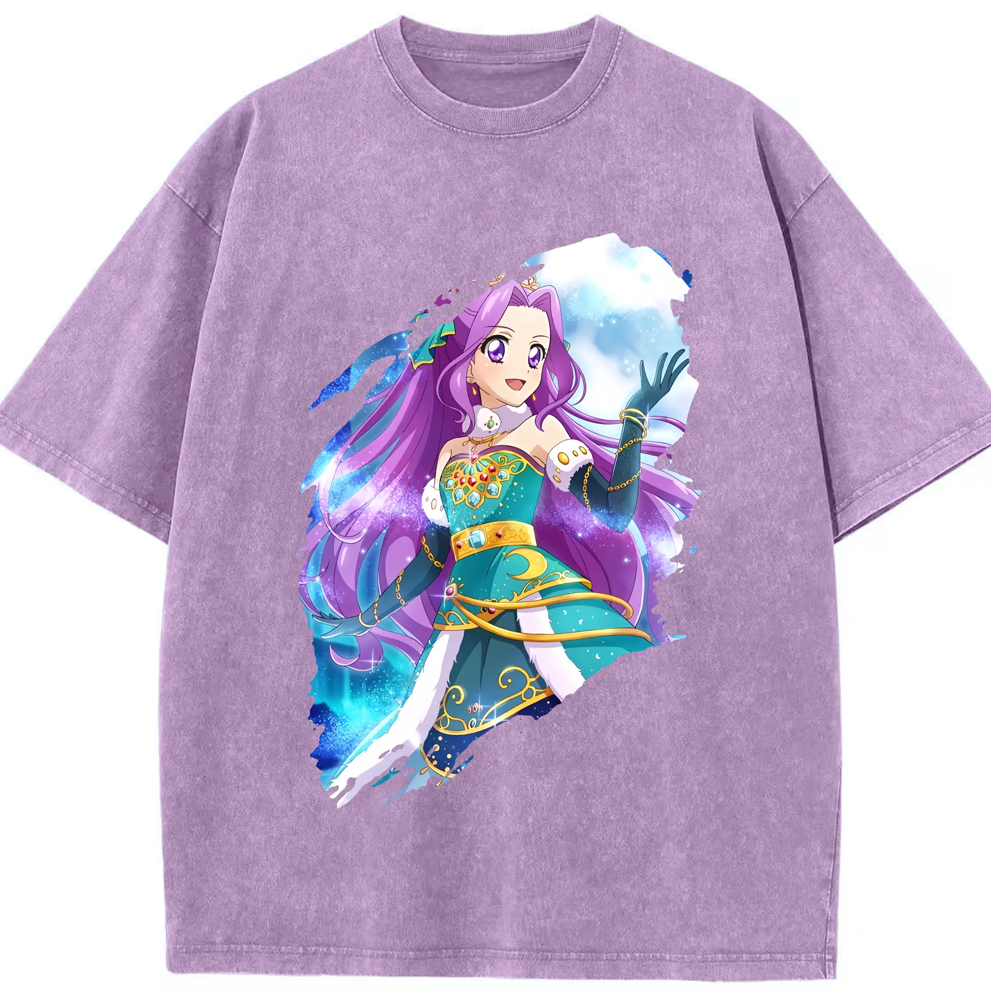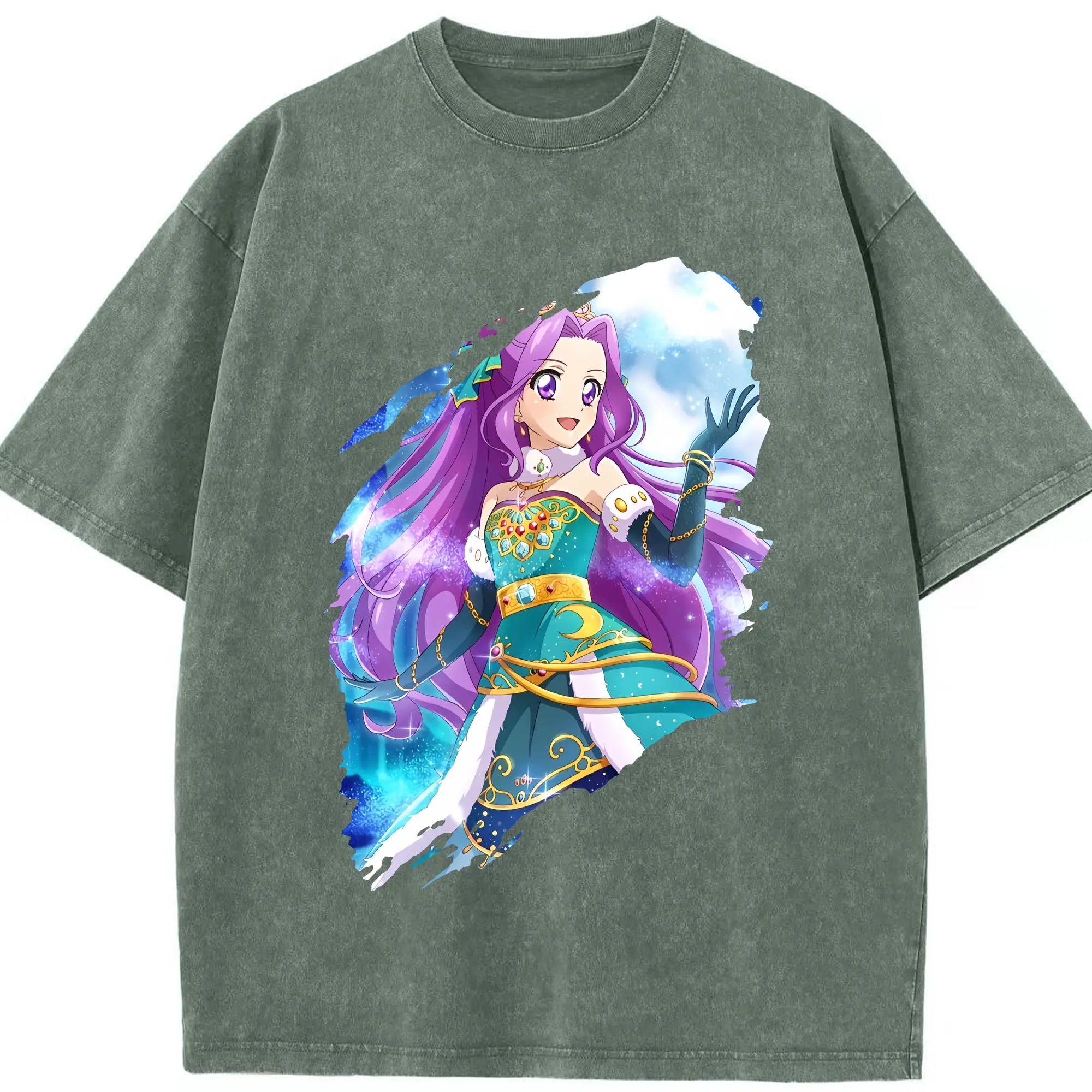 アイカツ グッズ 神崎 美月 - 綿100% ヴィンテージ風 半袖Tシャツ ・ 背面プリント ・ 柔らか肌触り ・ 通気性 快適 ・ スポーツ カジュアル 外出用