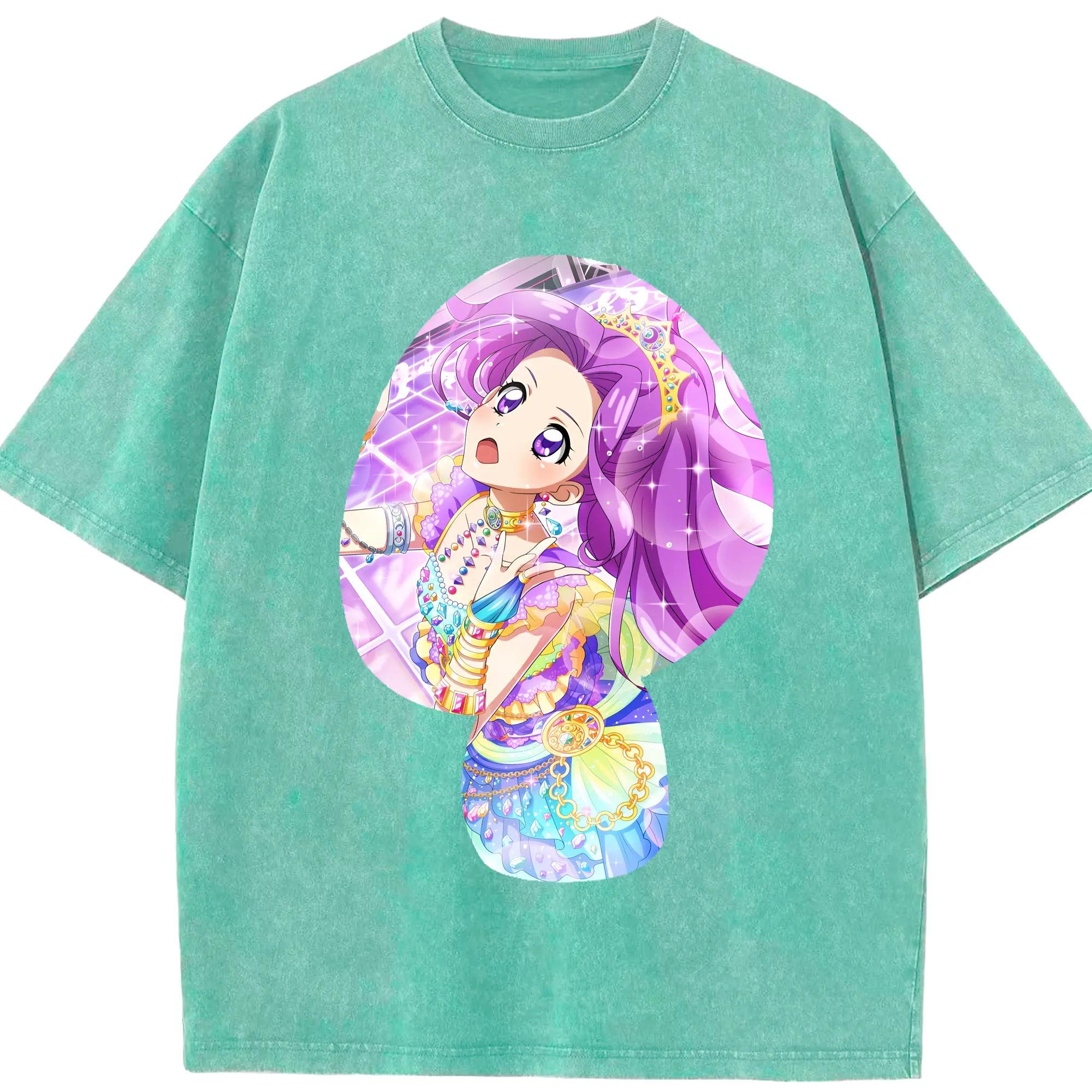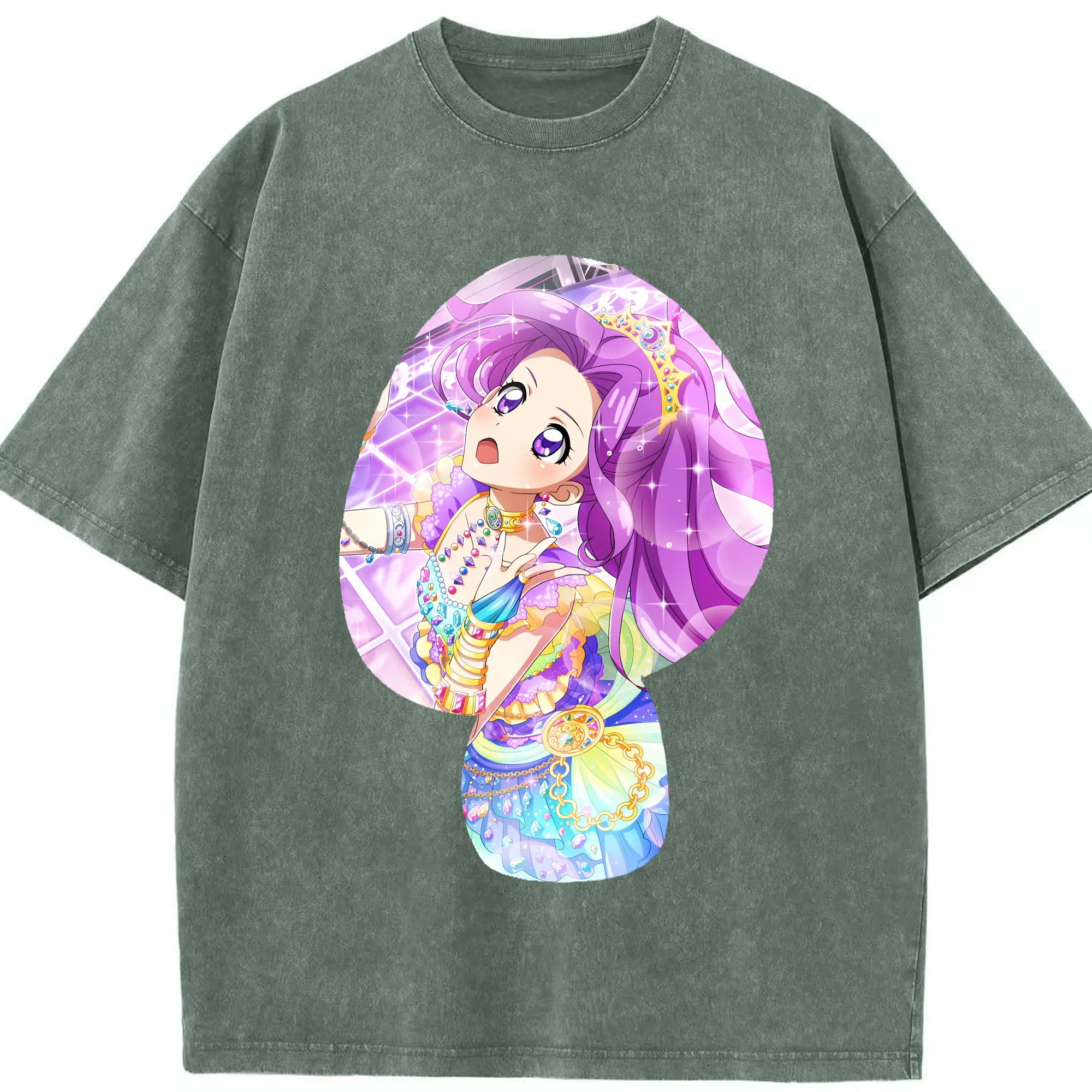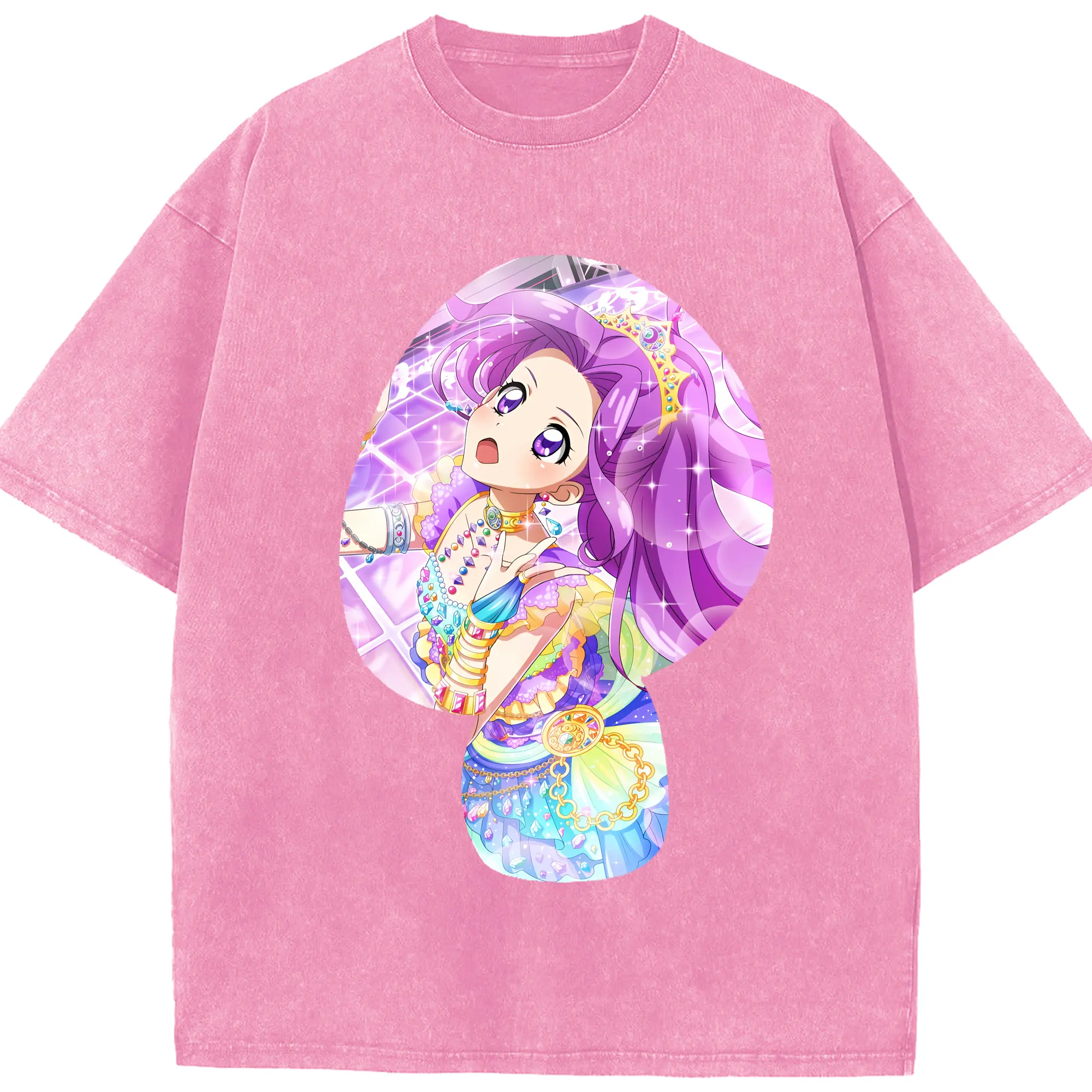 アイカツ グッズ 神崎 美月 - 綿100% ヴィンテージ風 半袖Tシャツ ・ 背面プリント ・ 柔らか肌触り ・ 通気性 快適 ・ スポーツ カジュアル 外出用