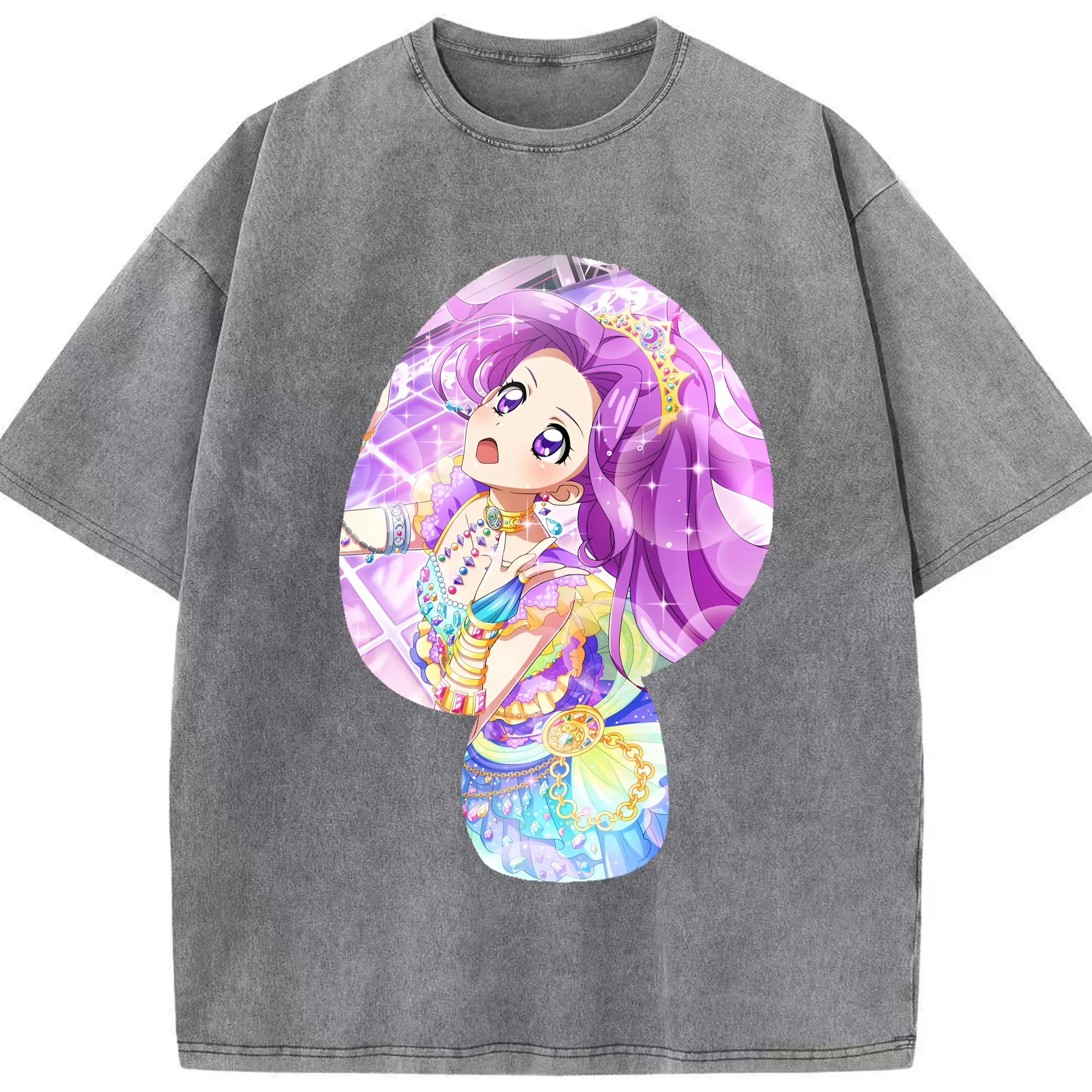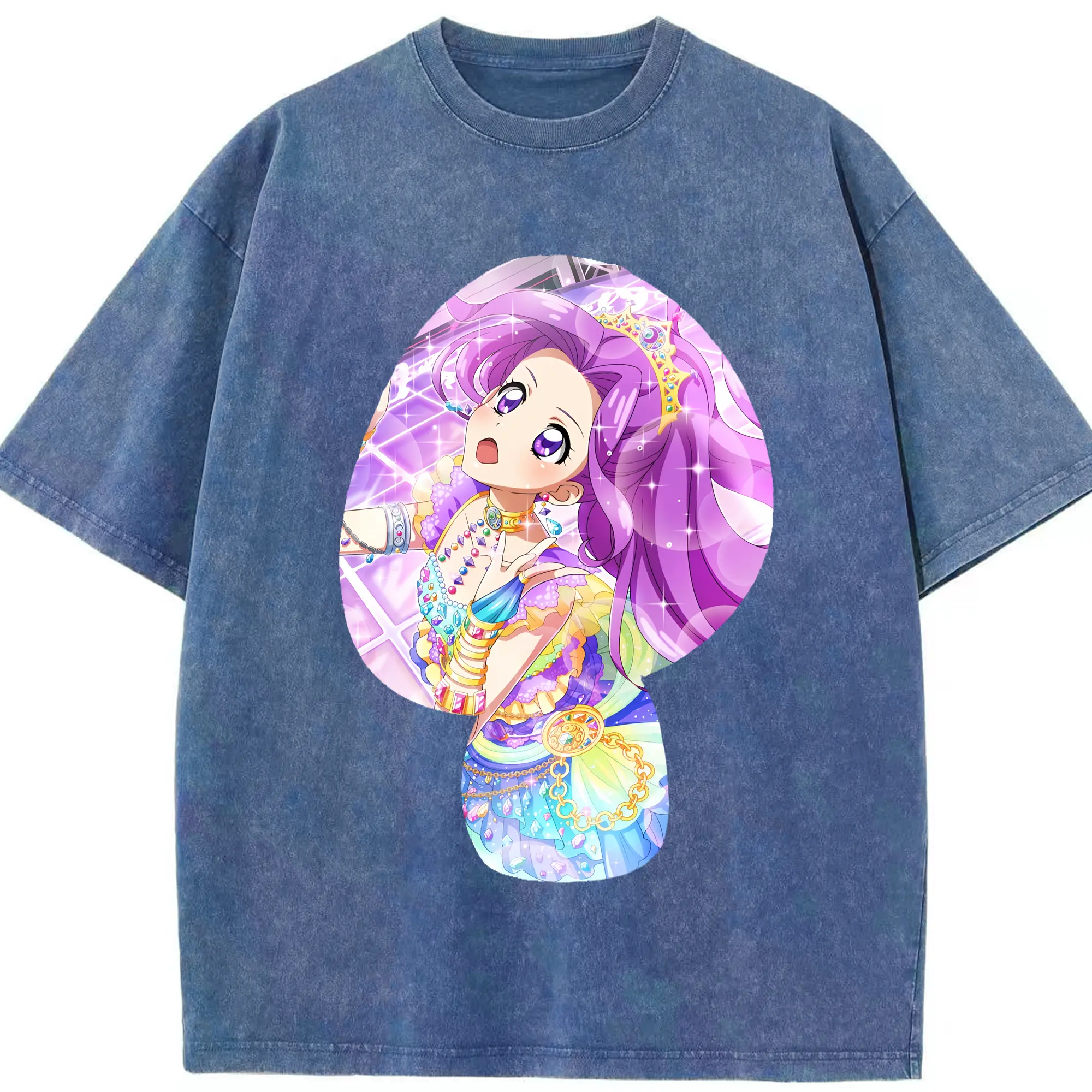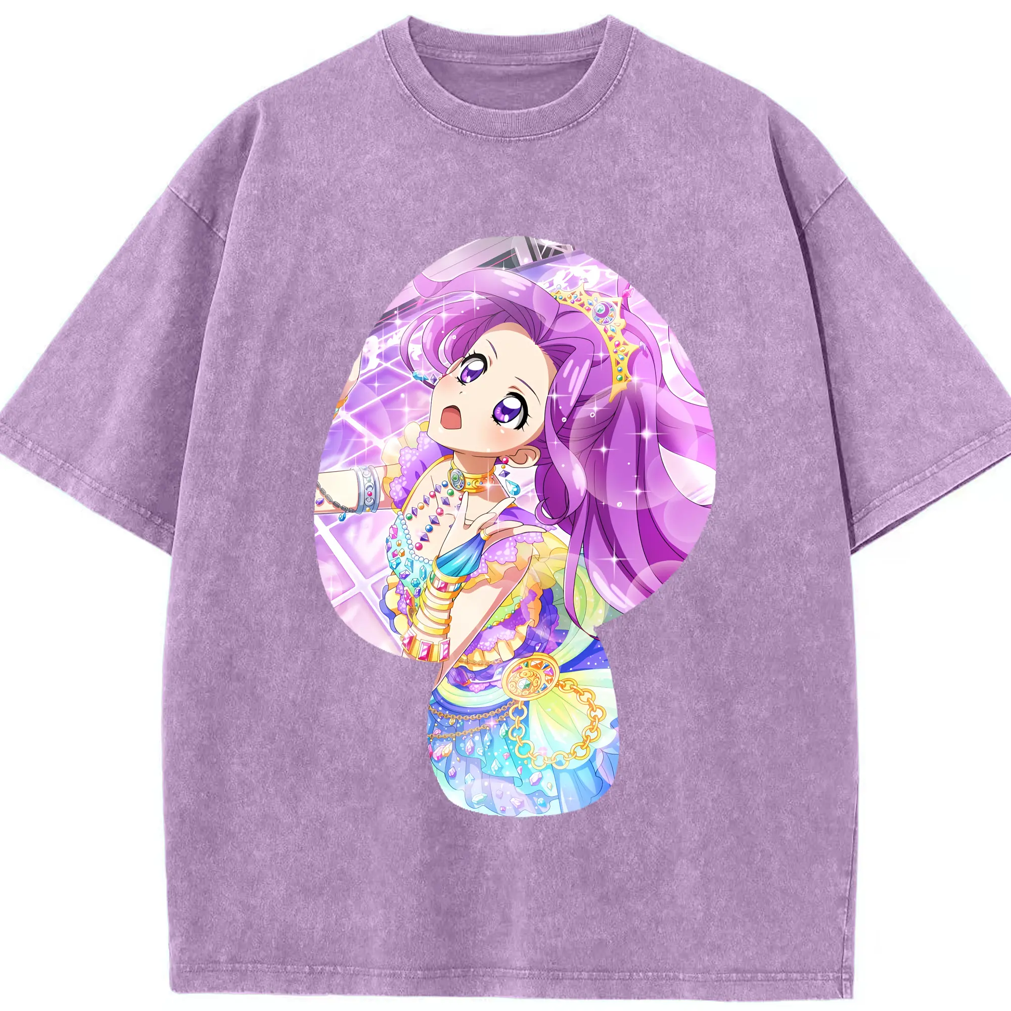 アイカツ グッズ 神崎 美月 - 綿100% ヴィンテージ風 半袖Tシャツ ・ 背面プリント ・ 柔らか肌触り ・ 通気性 快適 ・ スポーツ カジュアル 外出用