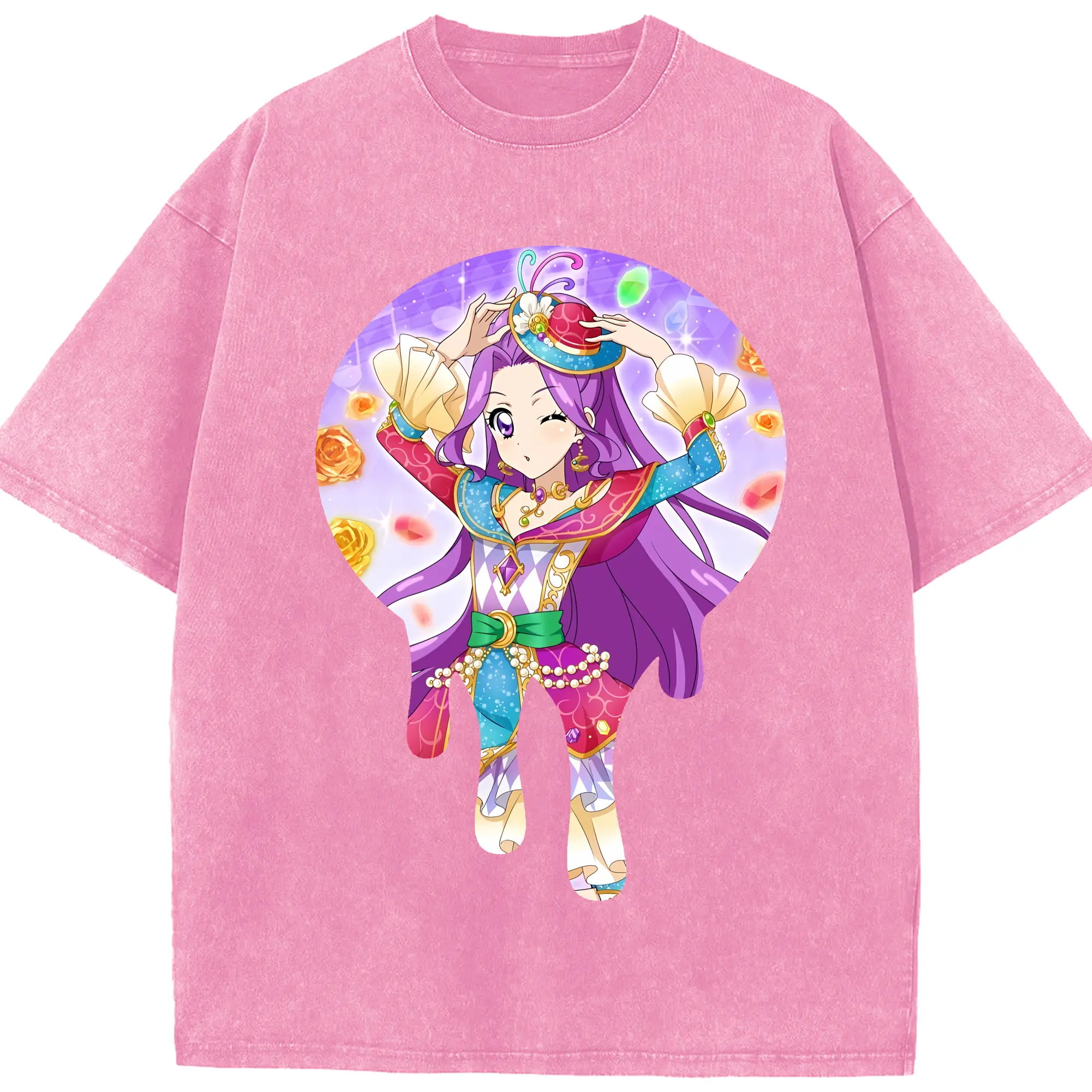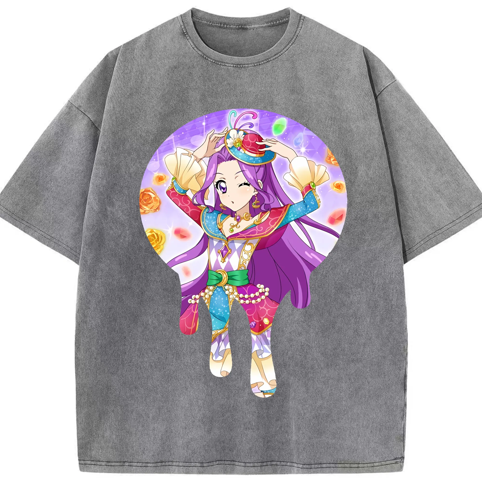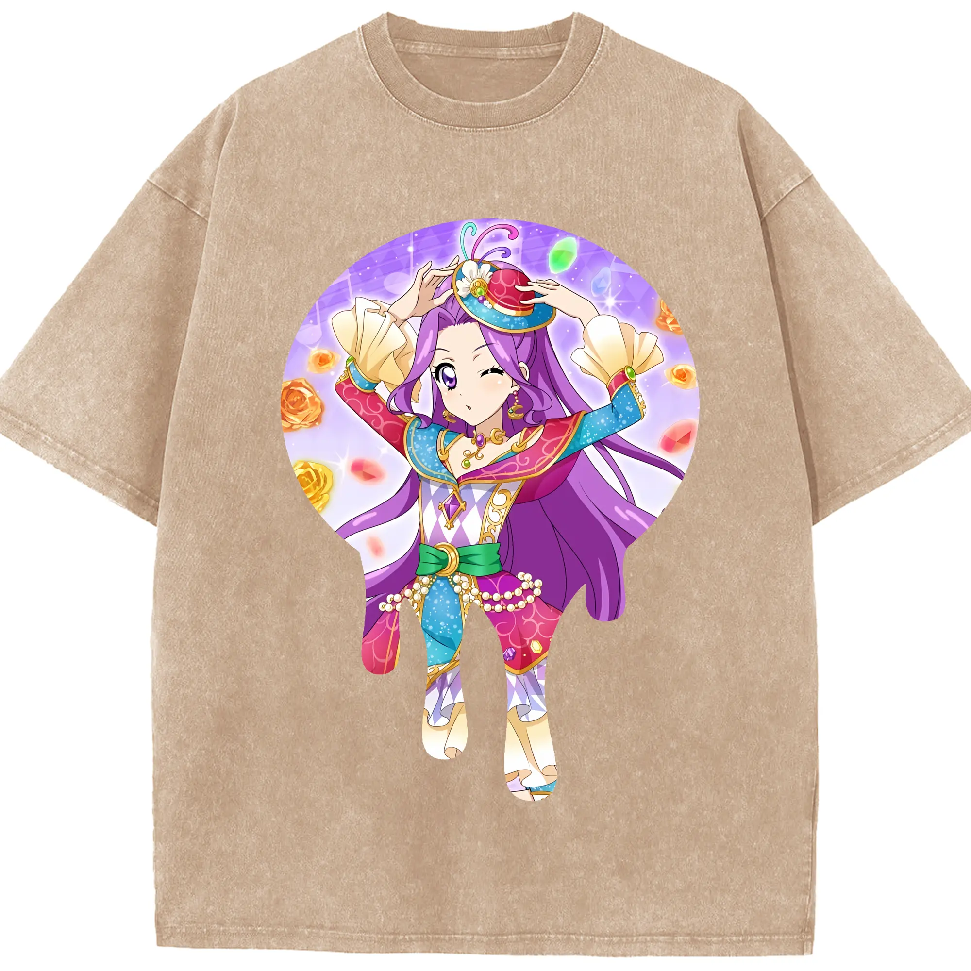 アイカツ グッズ 神崎 美月 - 綿100% ヴィンテージ風 半袖Tシャツ ・ 背面プリント ・ 柔らか肌触り ・ 通気性 快適 ・ スポーツ カジュアル 外出用