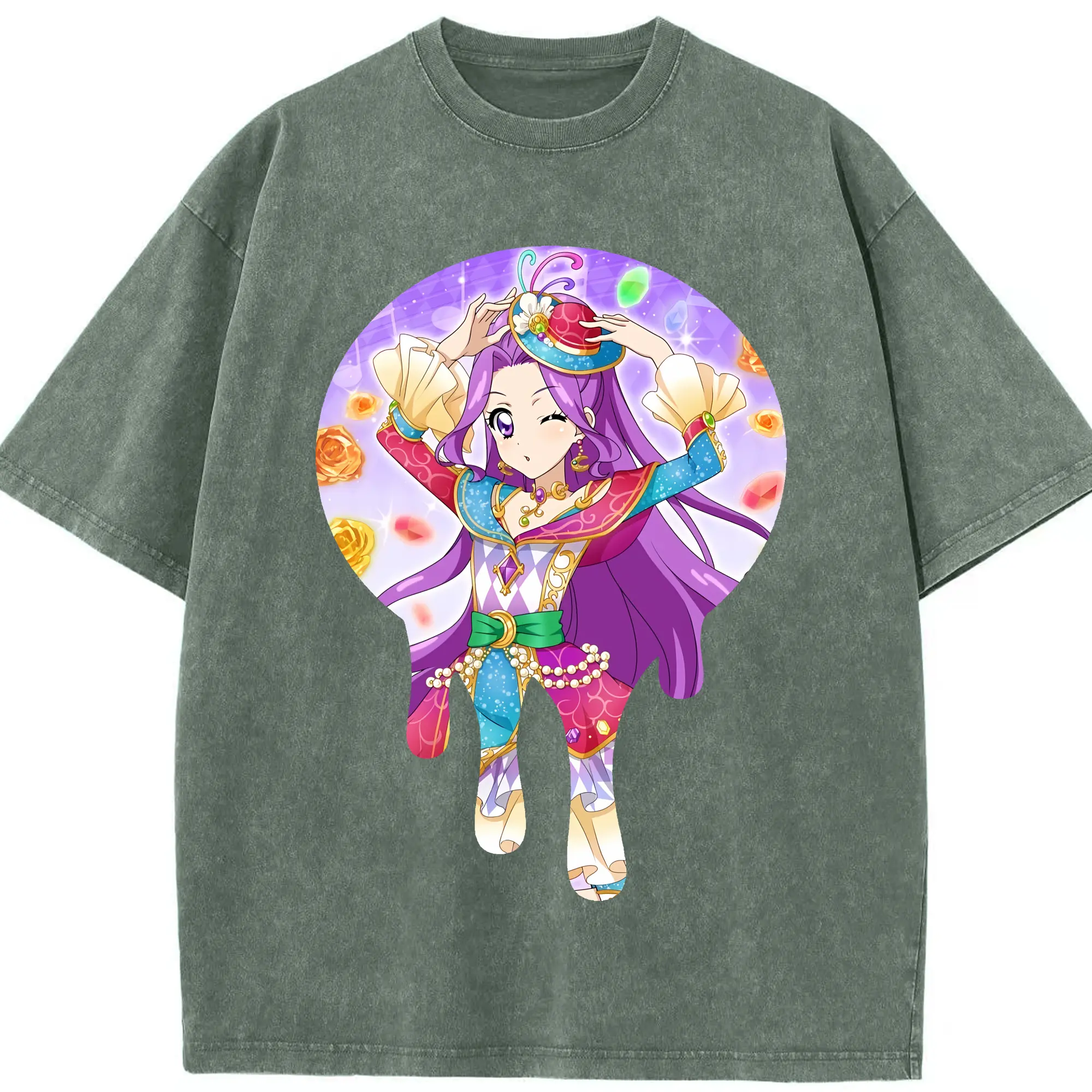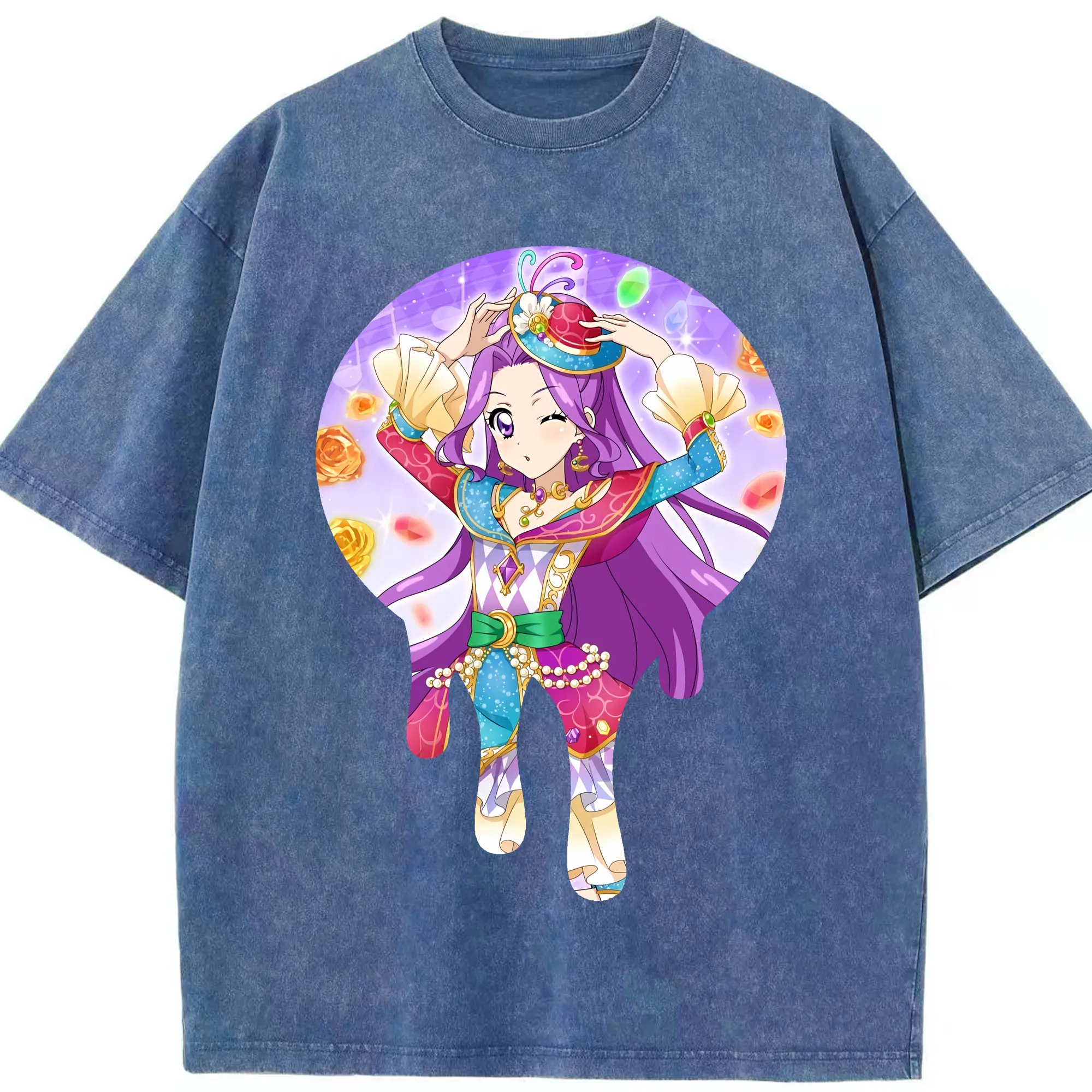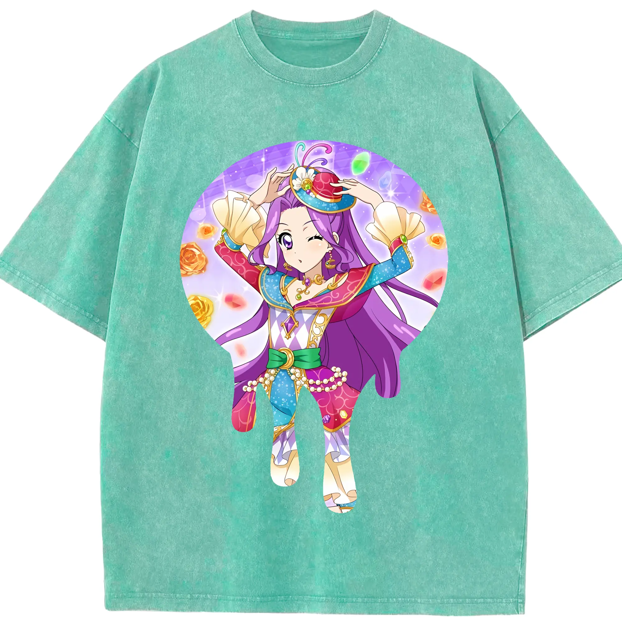 アイカツ グッズ 神崎 美月 - 綿100% ヴィンテージ風 半袖Tシャツ ・ 背面プリント ・ 柔らか肌触り ・ 通気性 快適 ・ スポーツ カジュアル 外出用
