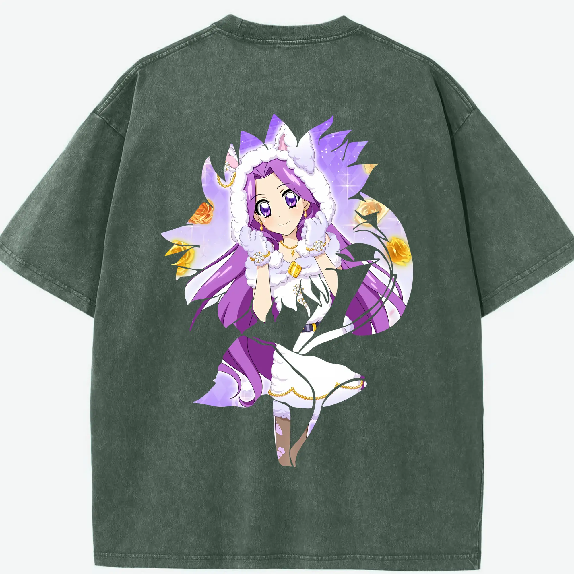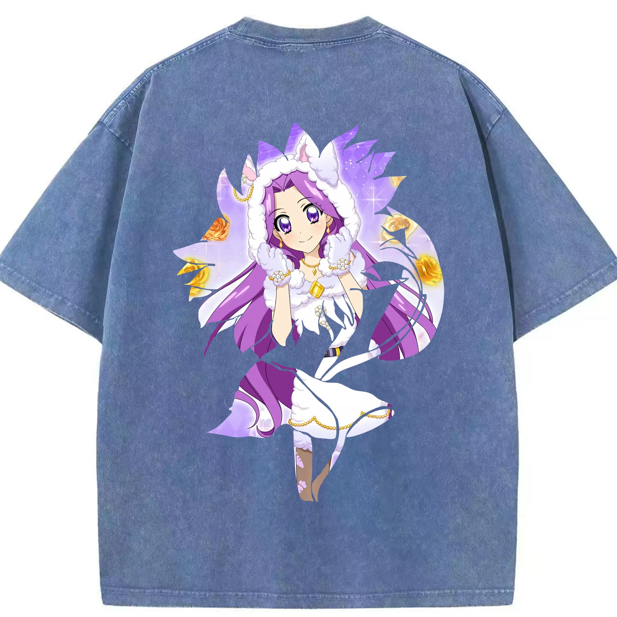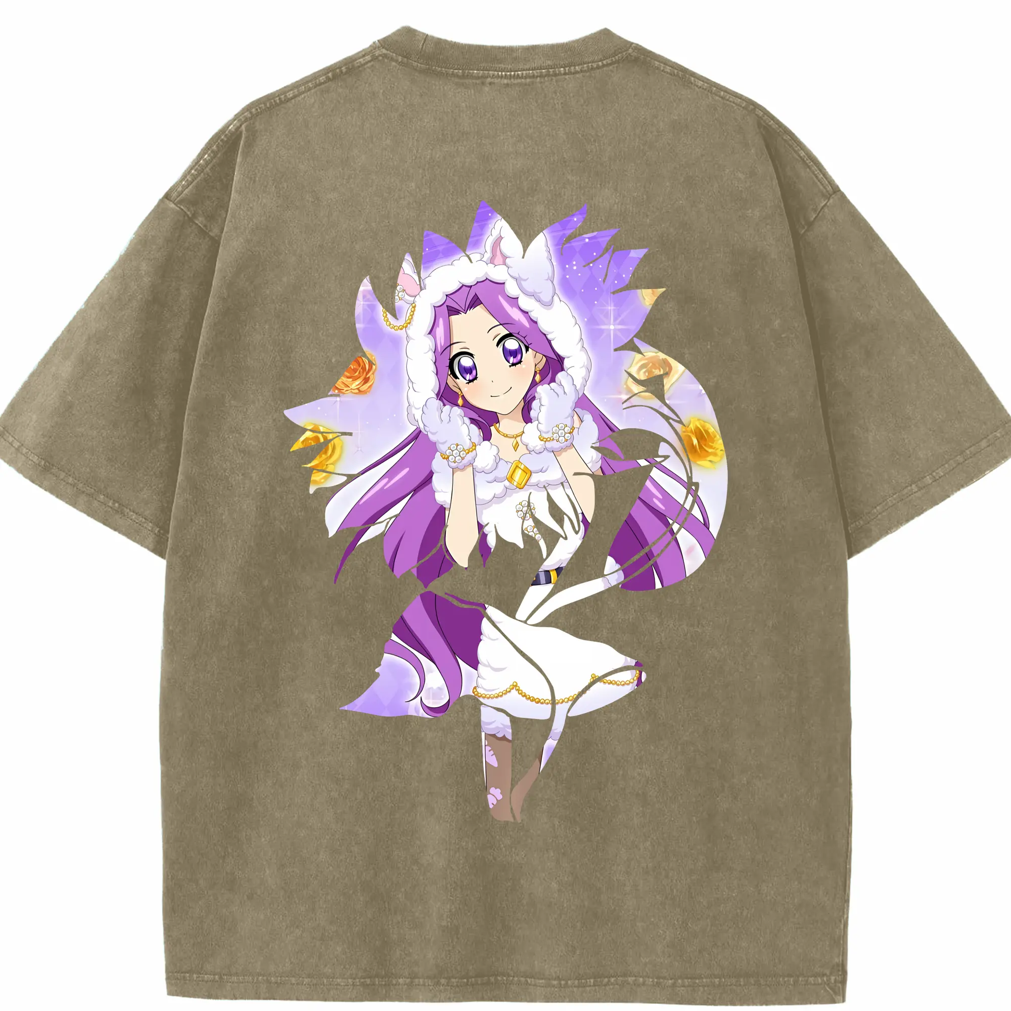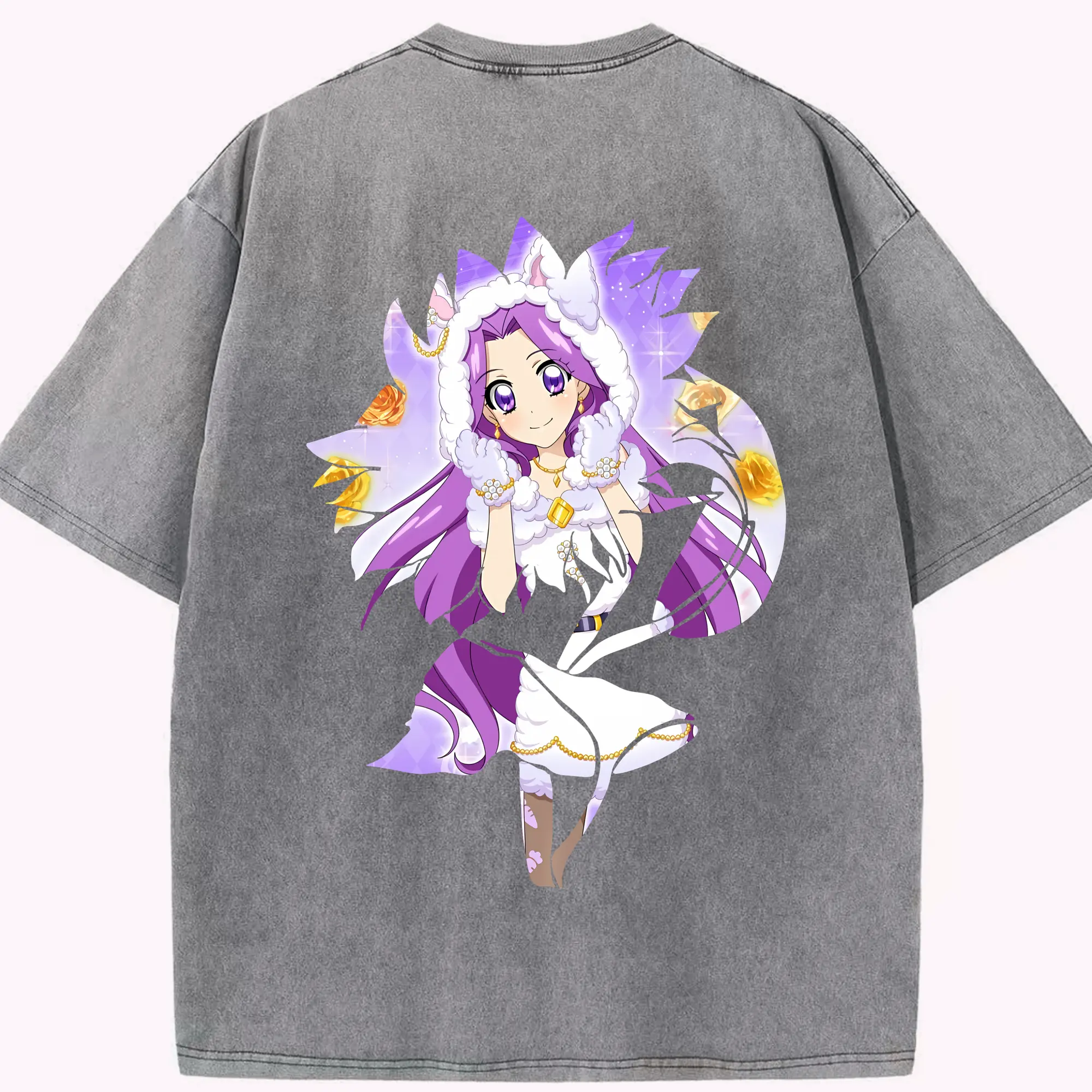 アイカツ グッズ 神崎 美月 - 綿100% ヴィンテージ風 半袖Tシャツ ・ フロントプリント ・ 柔らか肌触り ・ 通気性 快適 ・ スポーツ カジュアル 外出用