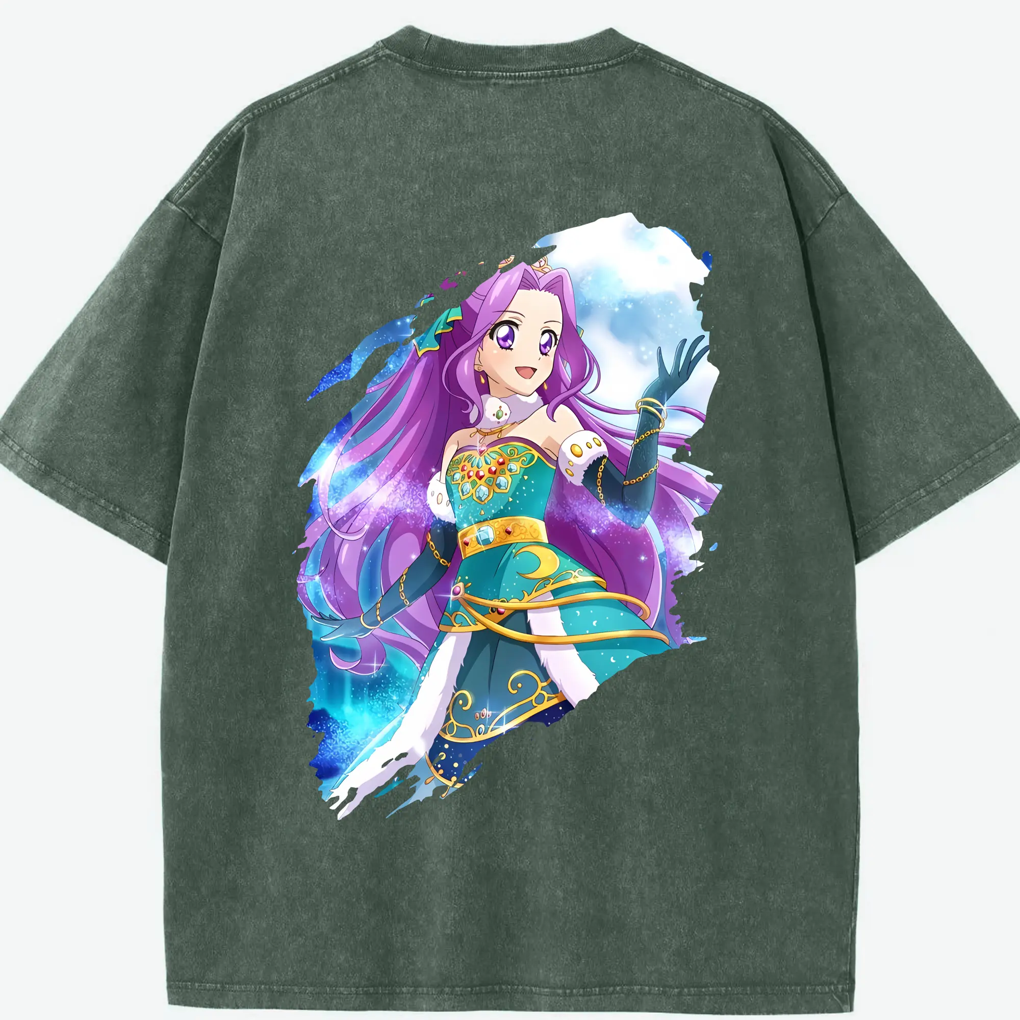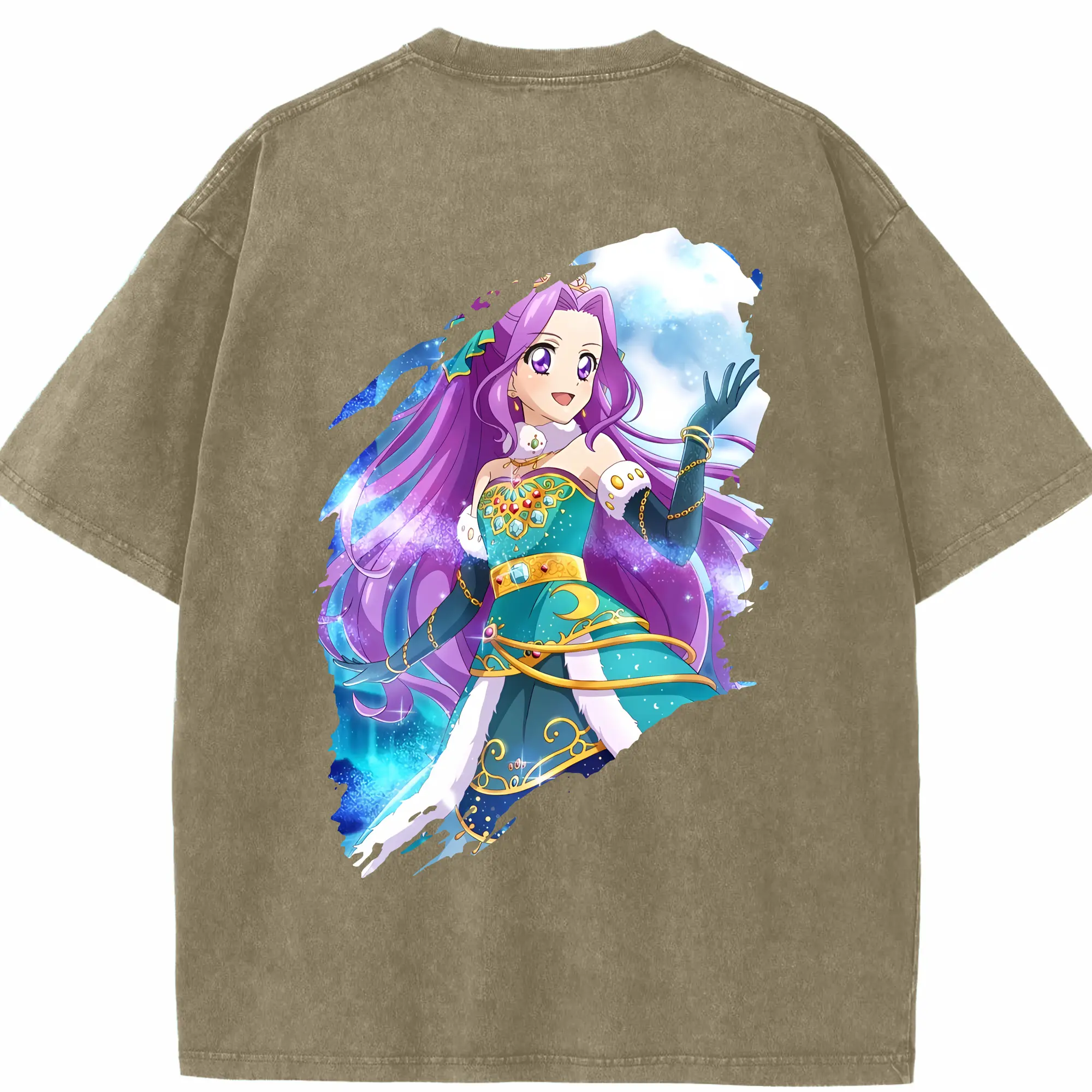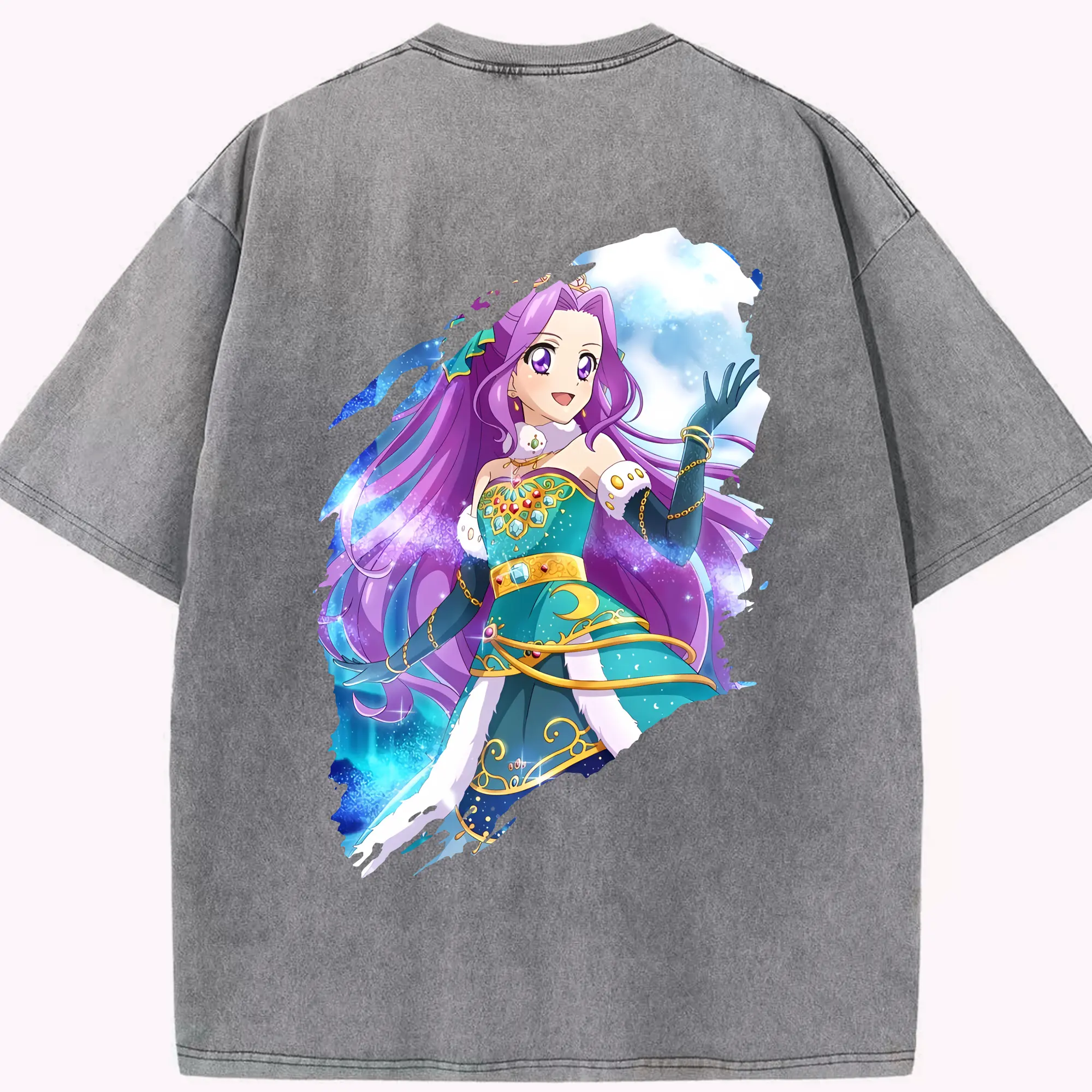 アイカツ グッズ 神崎 美月 - 綿100% ヴィンテージ風 半袖Tシャツ ・ フロントプリント ・ 柔らか肌触り ・ 通気性 快適 ・ スポーツ カジュアル 外出用