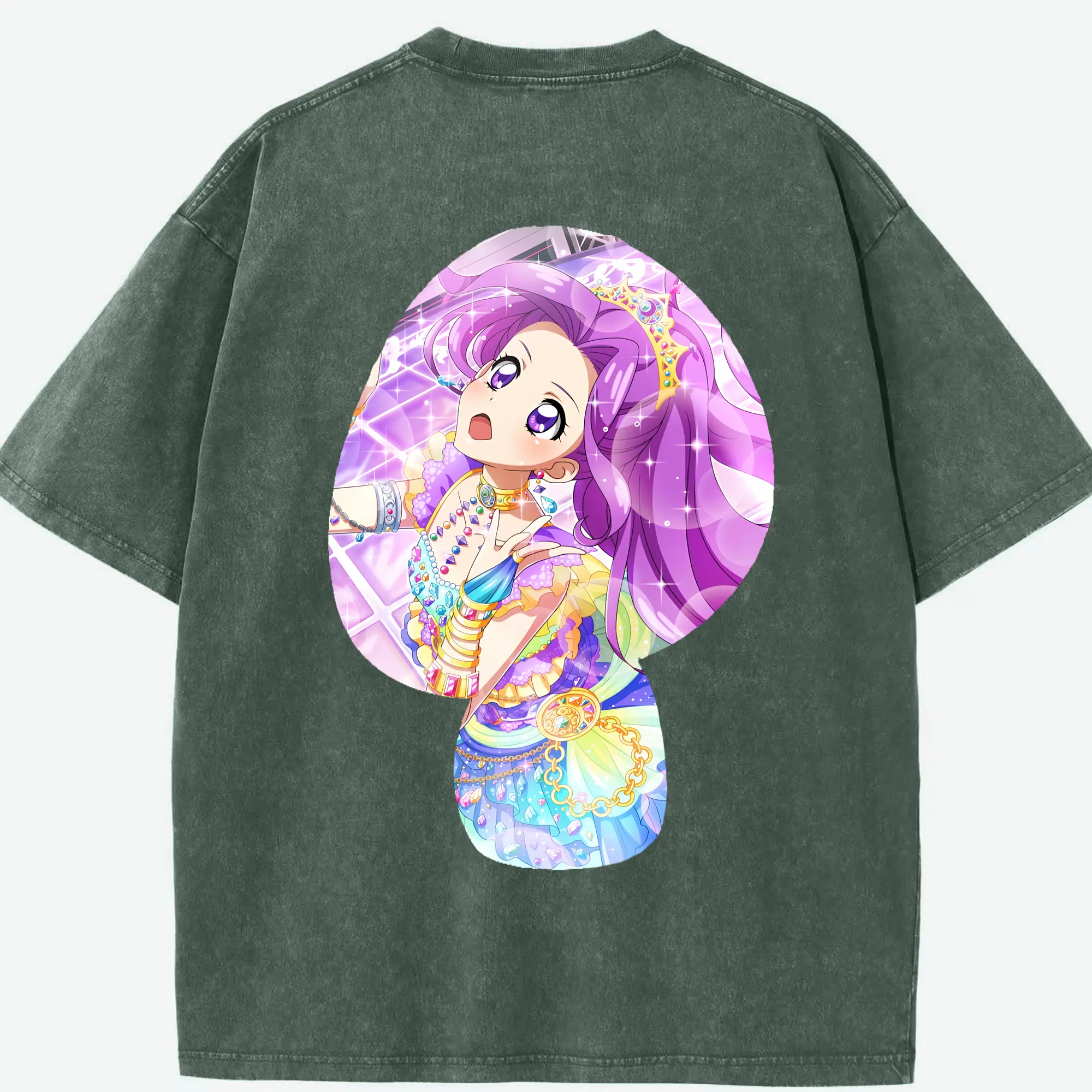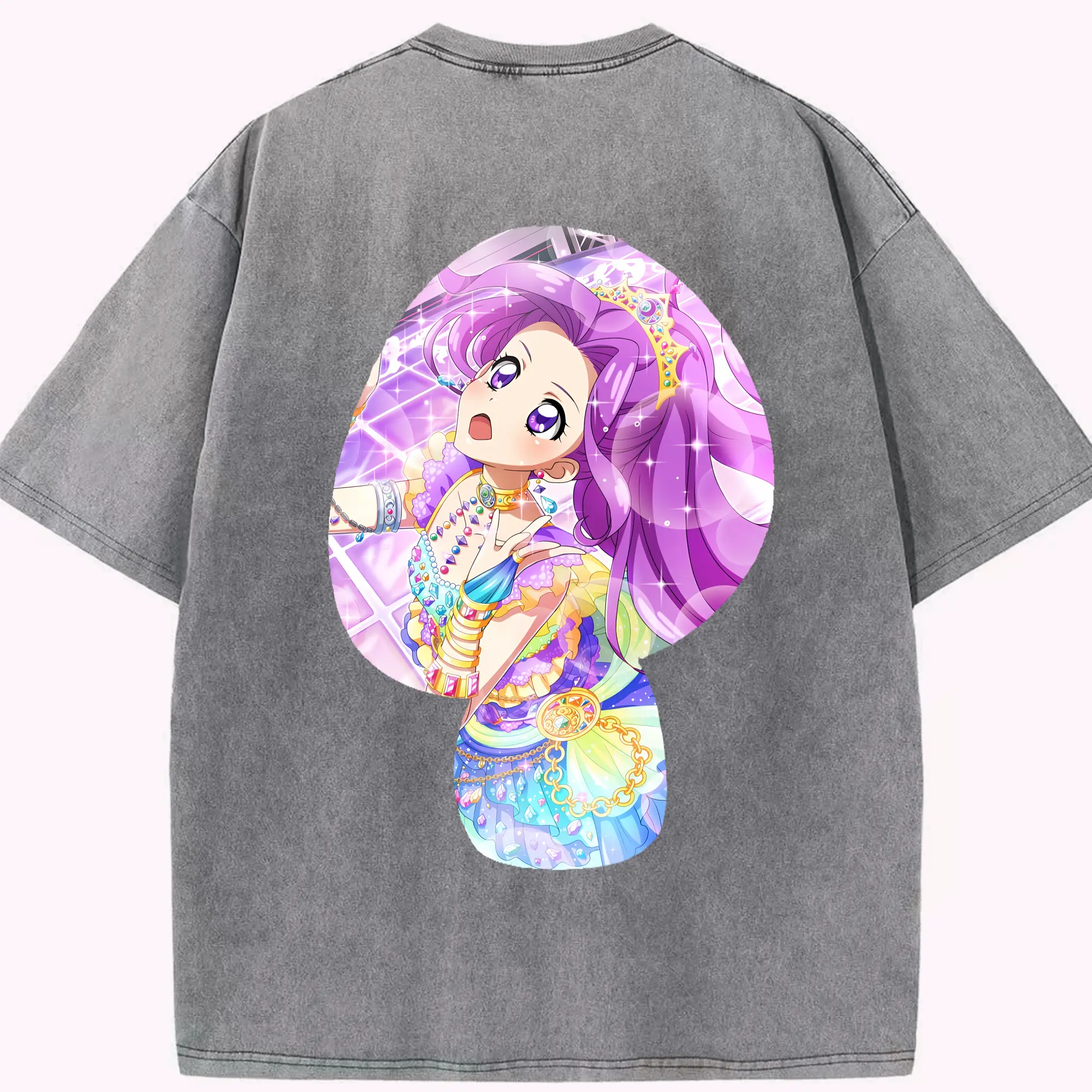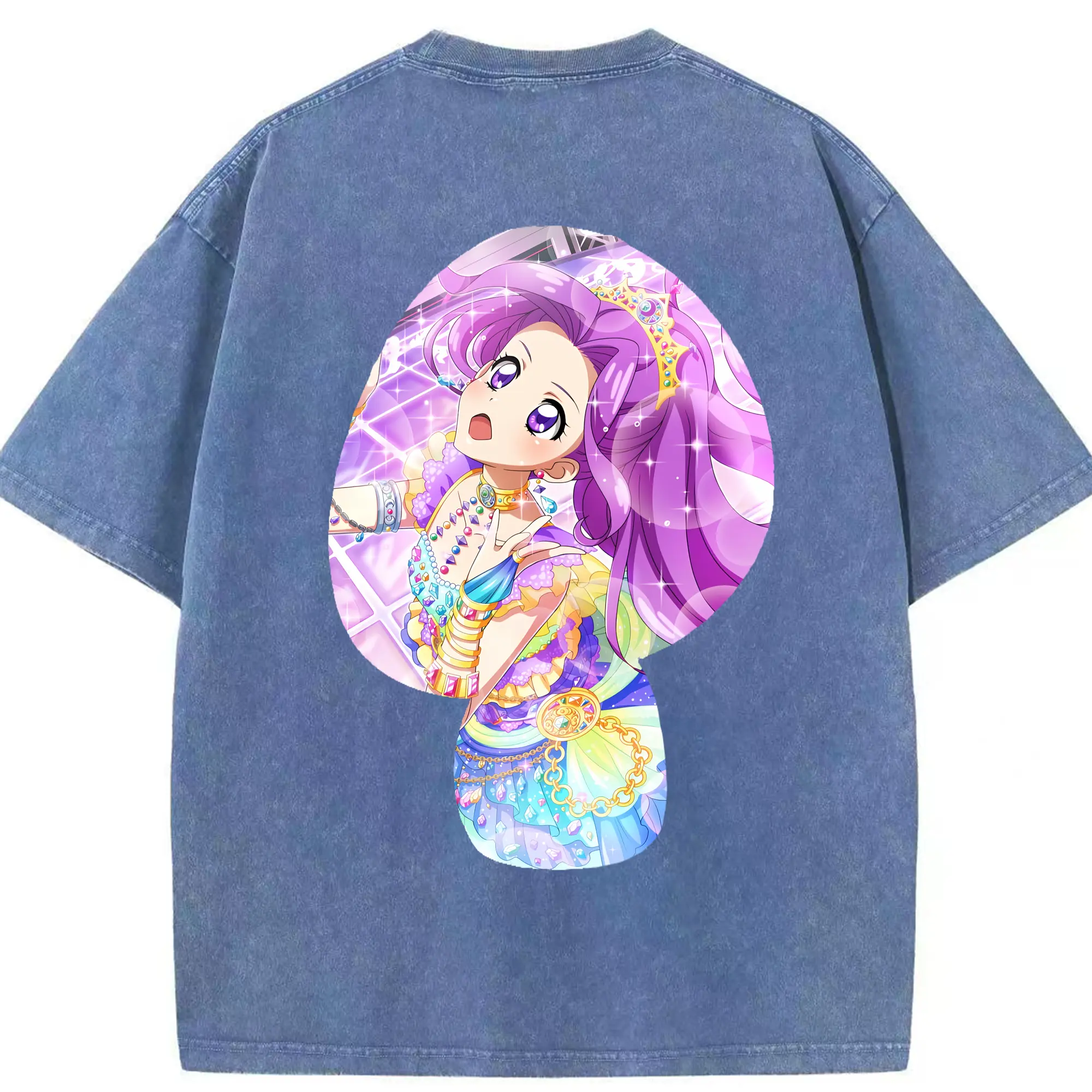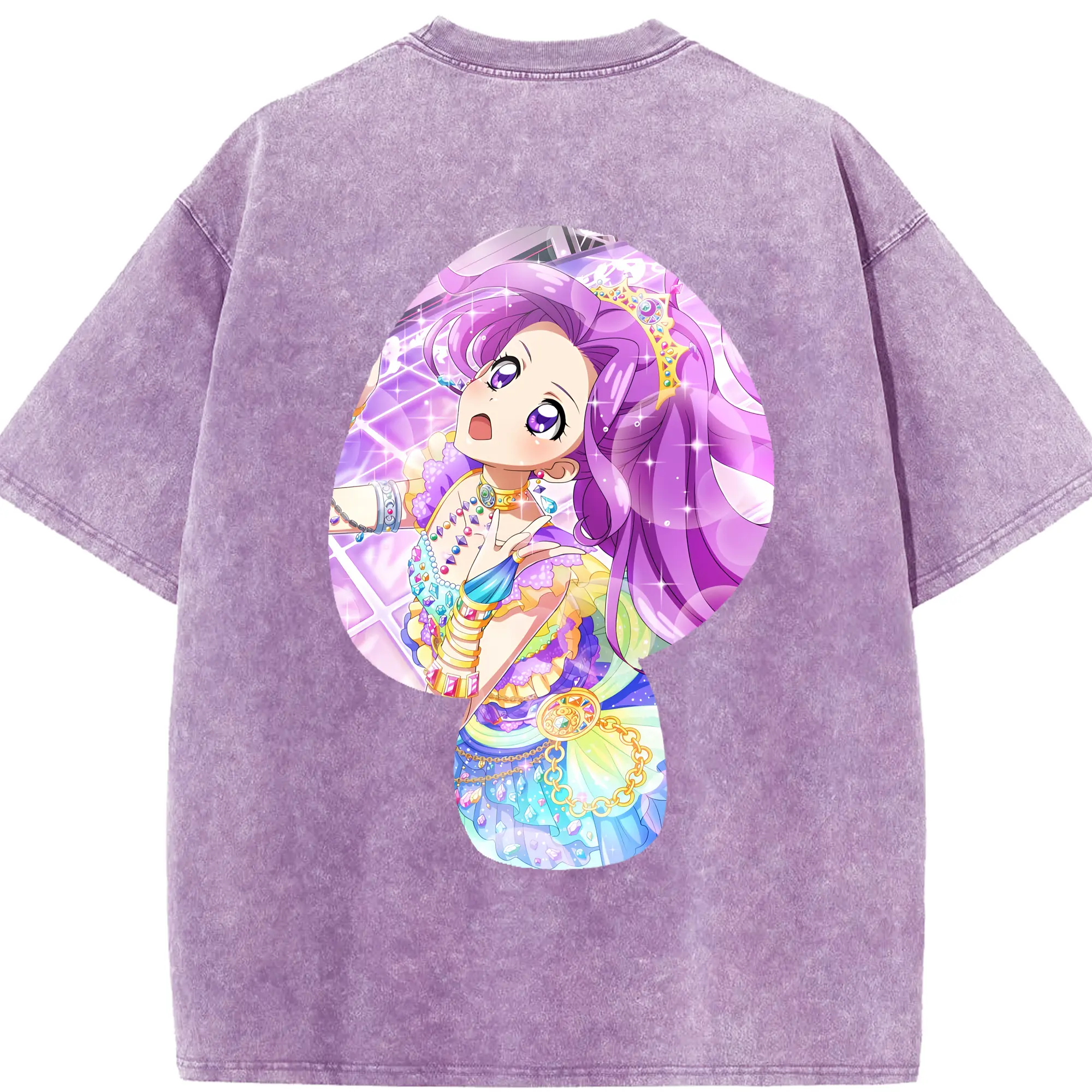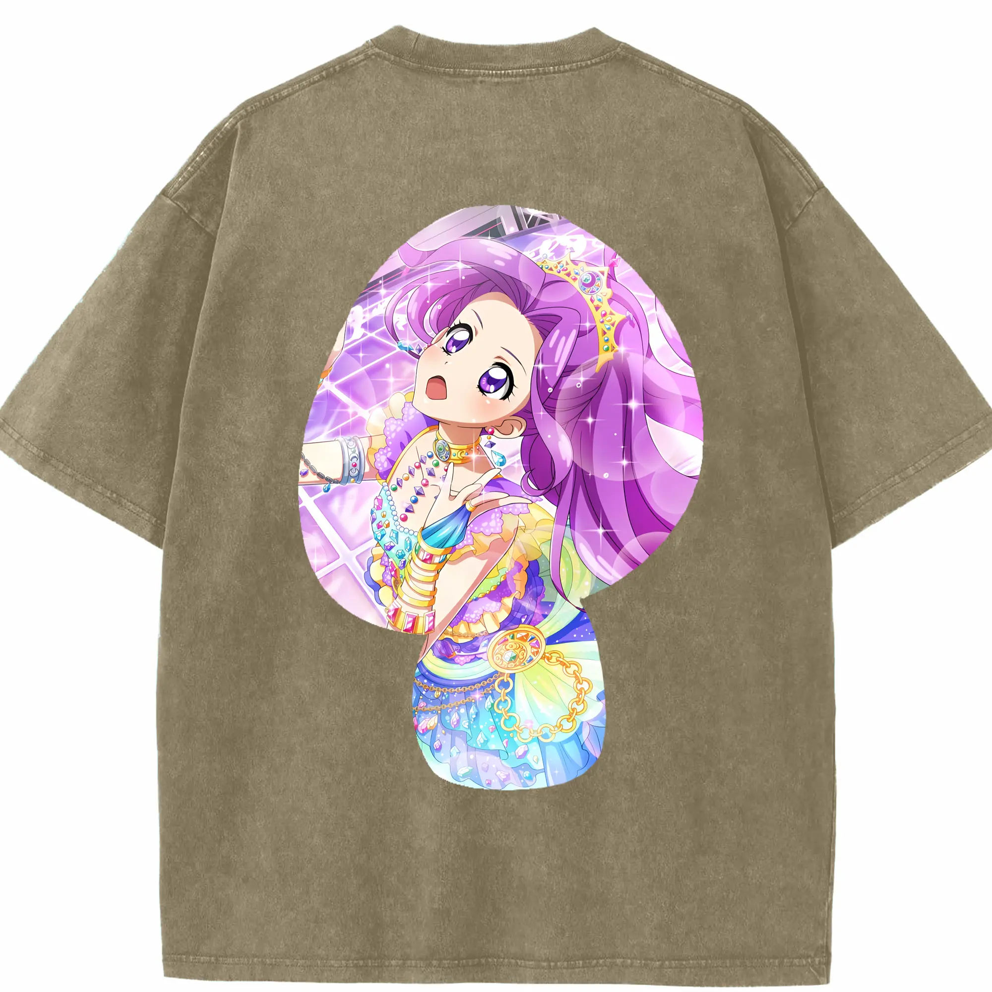 アイカツ グッズ 神崎 美月 - 綿100% ヴィンテージ風 半袖Tシャツ ・ フロントプリント ・ 柔らか肌触り ・ 通気性 快適 ・ スポーツ カジュアル 外出用