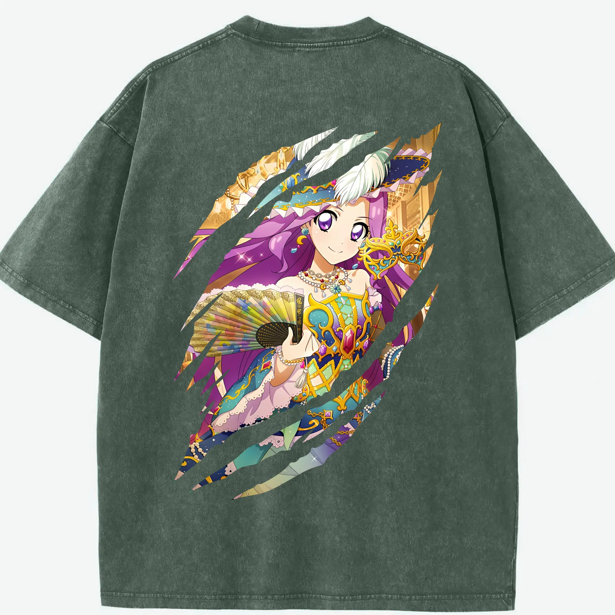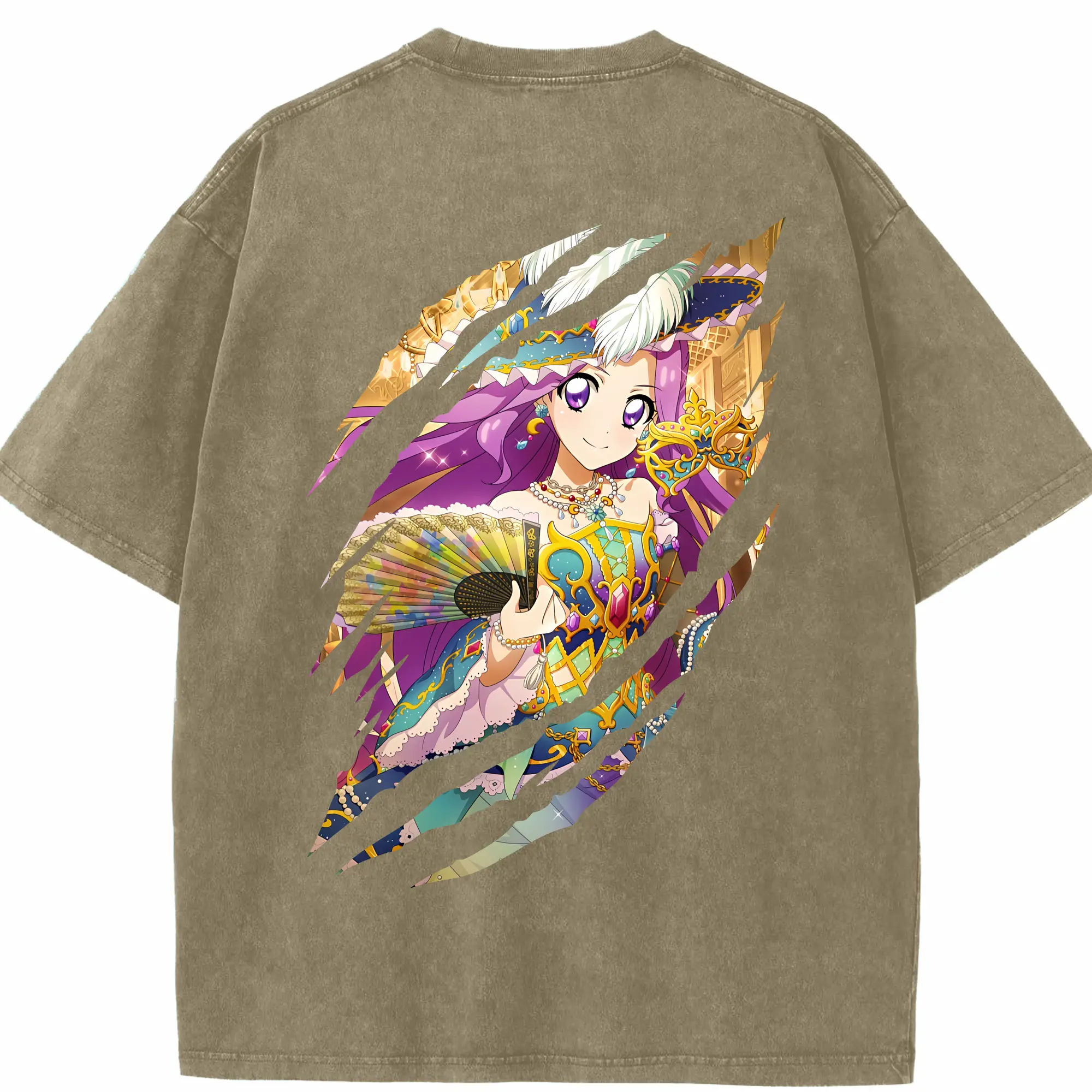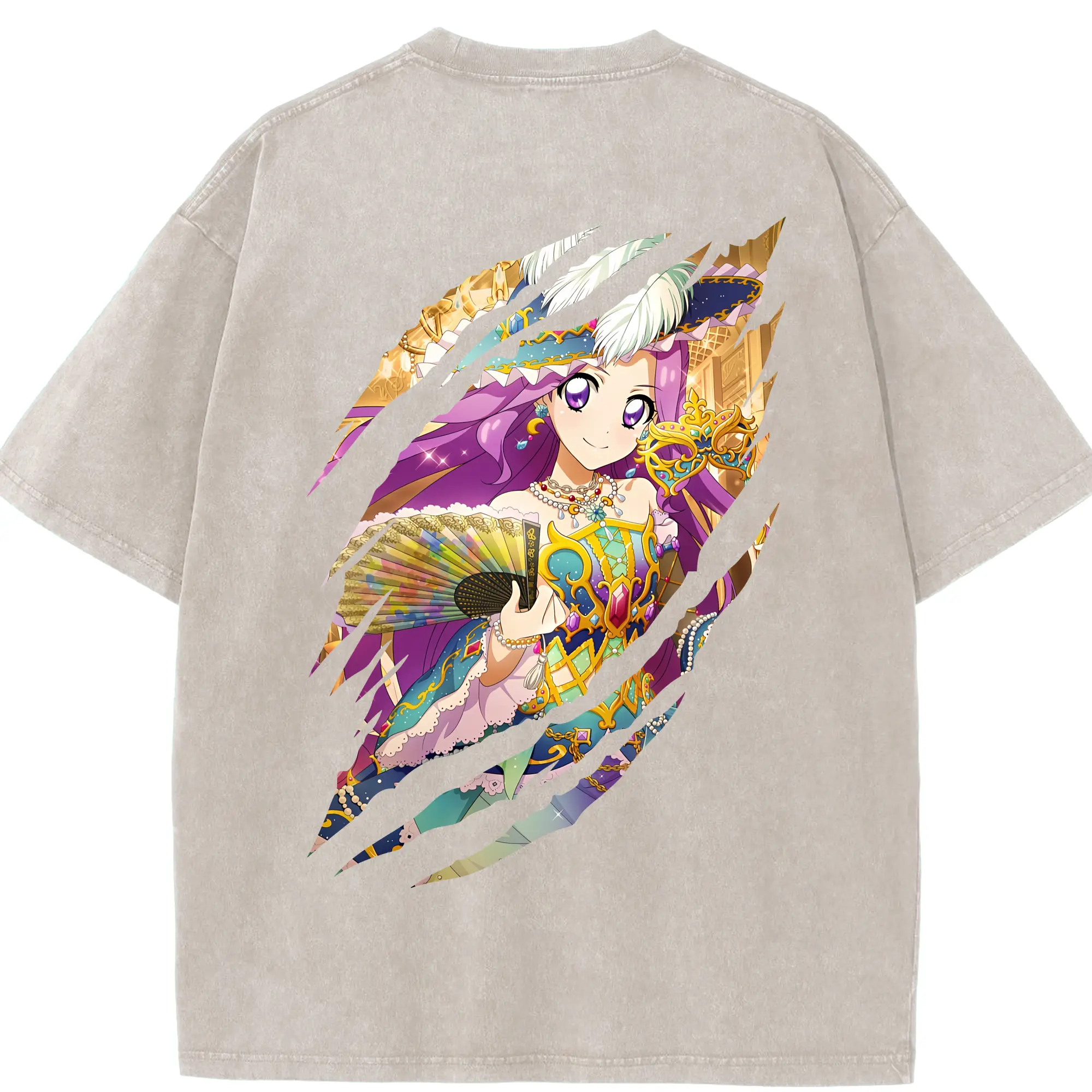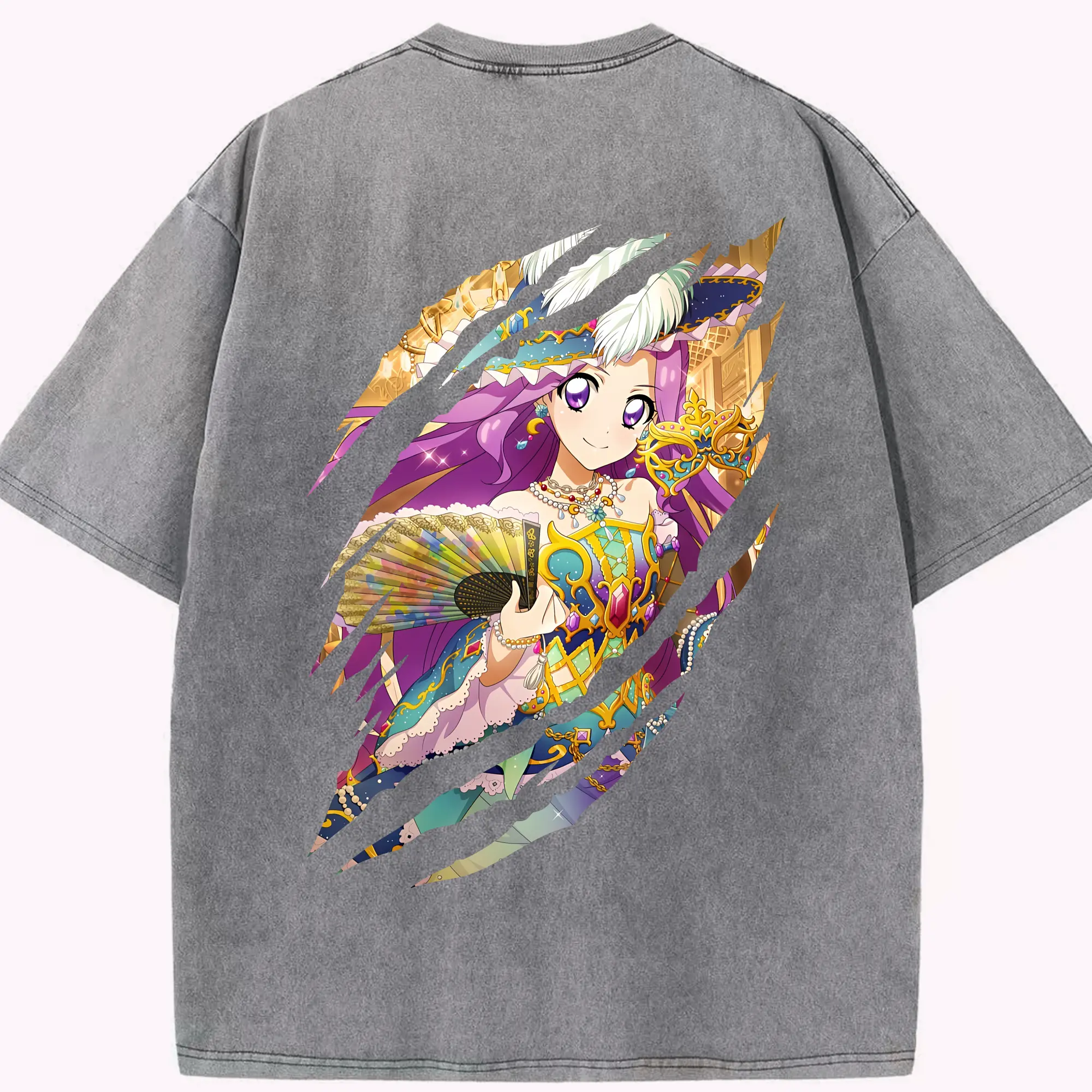 アイカツ グッズ 神崎 美月 - 綿100% ヴィンテージ風 半袖Tシャツ ・ フロントプリント ・ 柔らか肌触り ・ 通気性 快適 ・ スポーツ カジュアル 外出用
