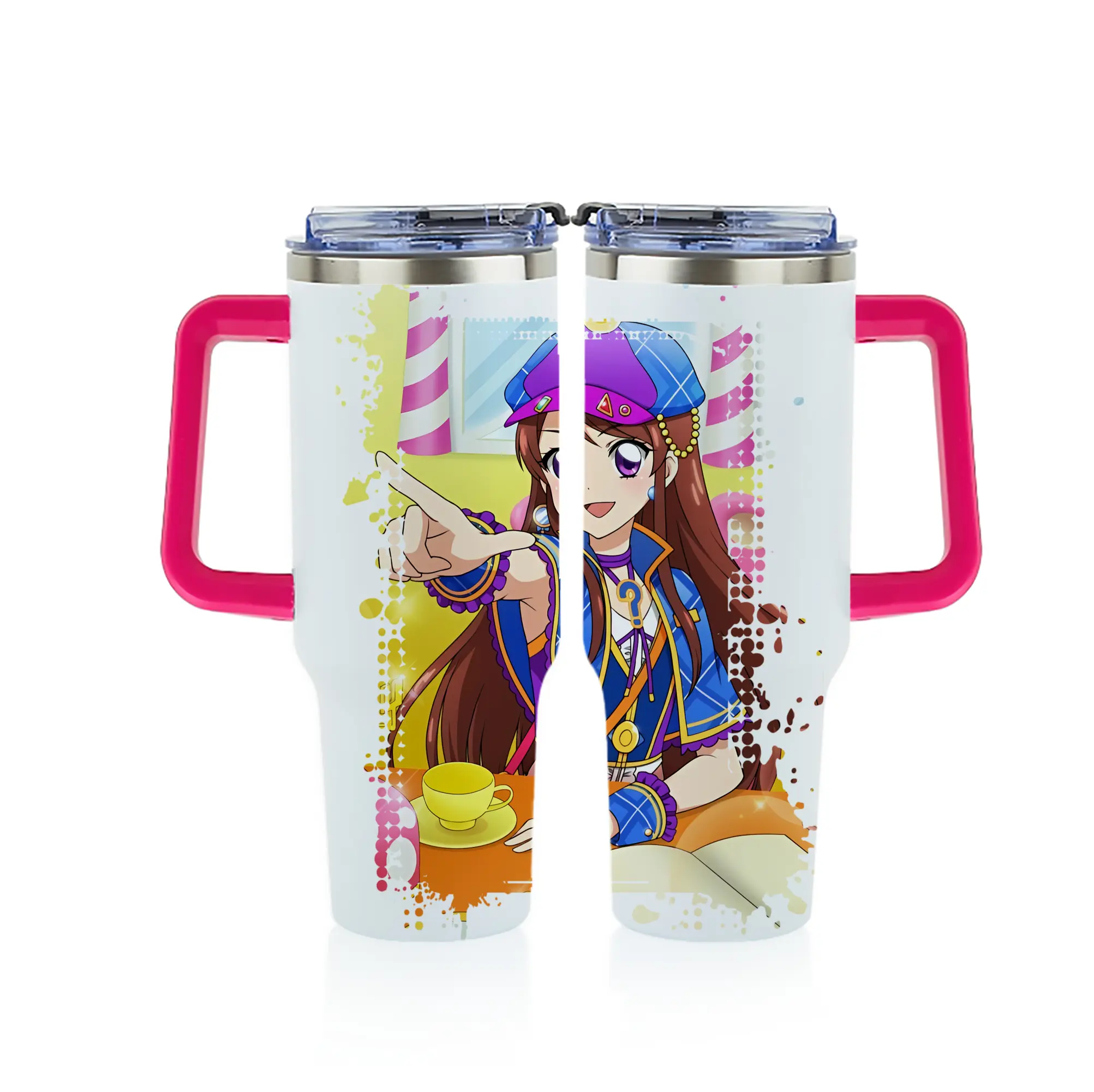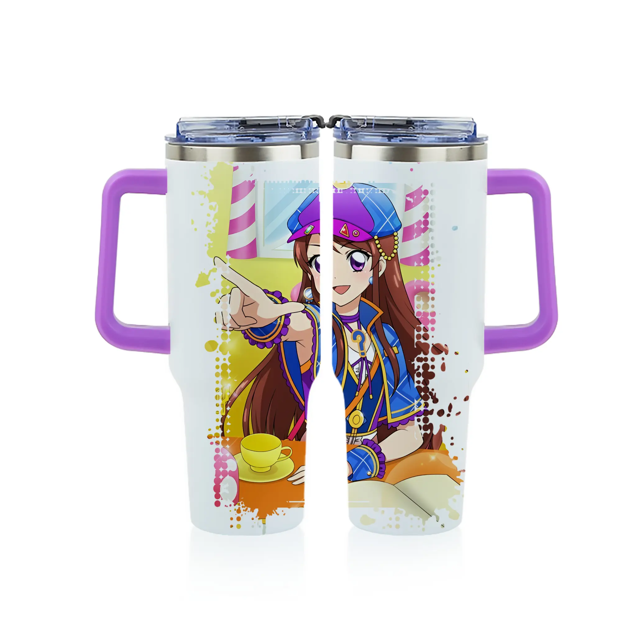 アイカツ グッズ 紫吹 蘭 - 1200mL フルプリント車用タンブラー ・ 304ステンレス 内側 ・ 201ステンレス 外側 ・ 保温 保冷 ・ 通勤 ドライブ アウトドア用