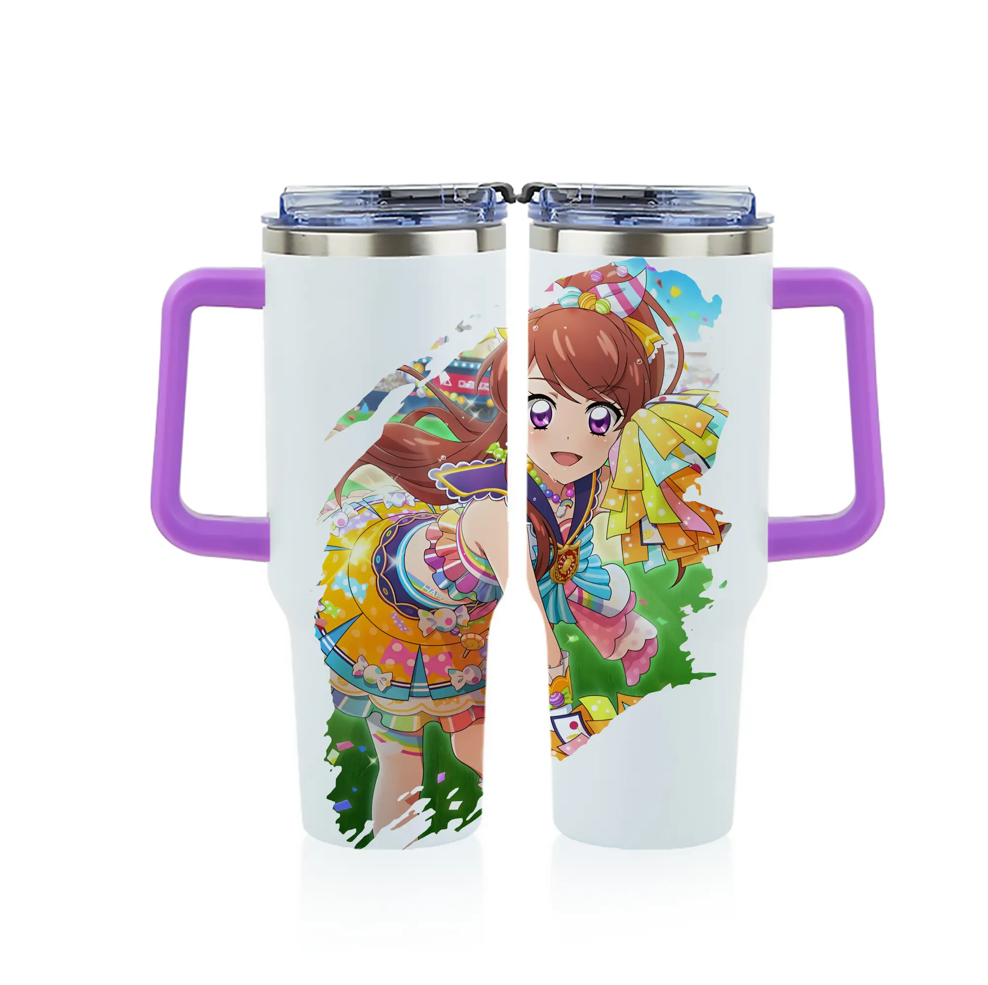 アイカツ グッズ 紫吹 蘭 - 1200mL フルプリント車用タンブラー ・ 304ステンレス 内側 ・ 201ステンレス 外側 ・ 保温 保冷 ・ 通勤 ドライブ アウトドア用