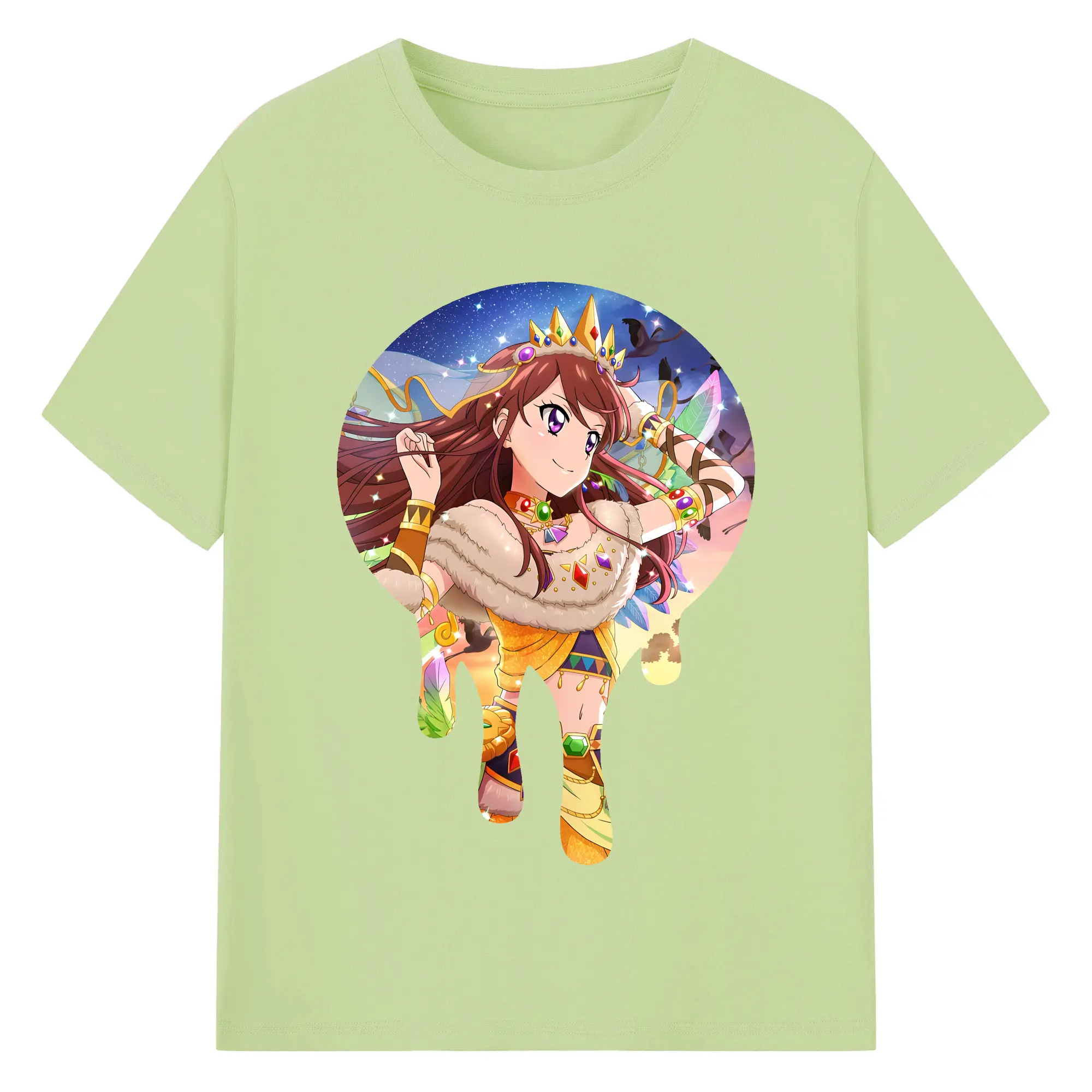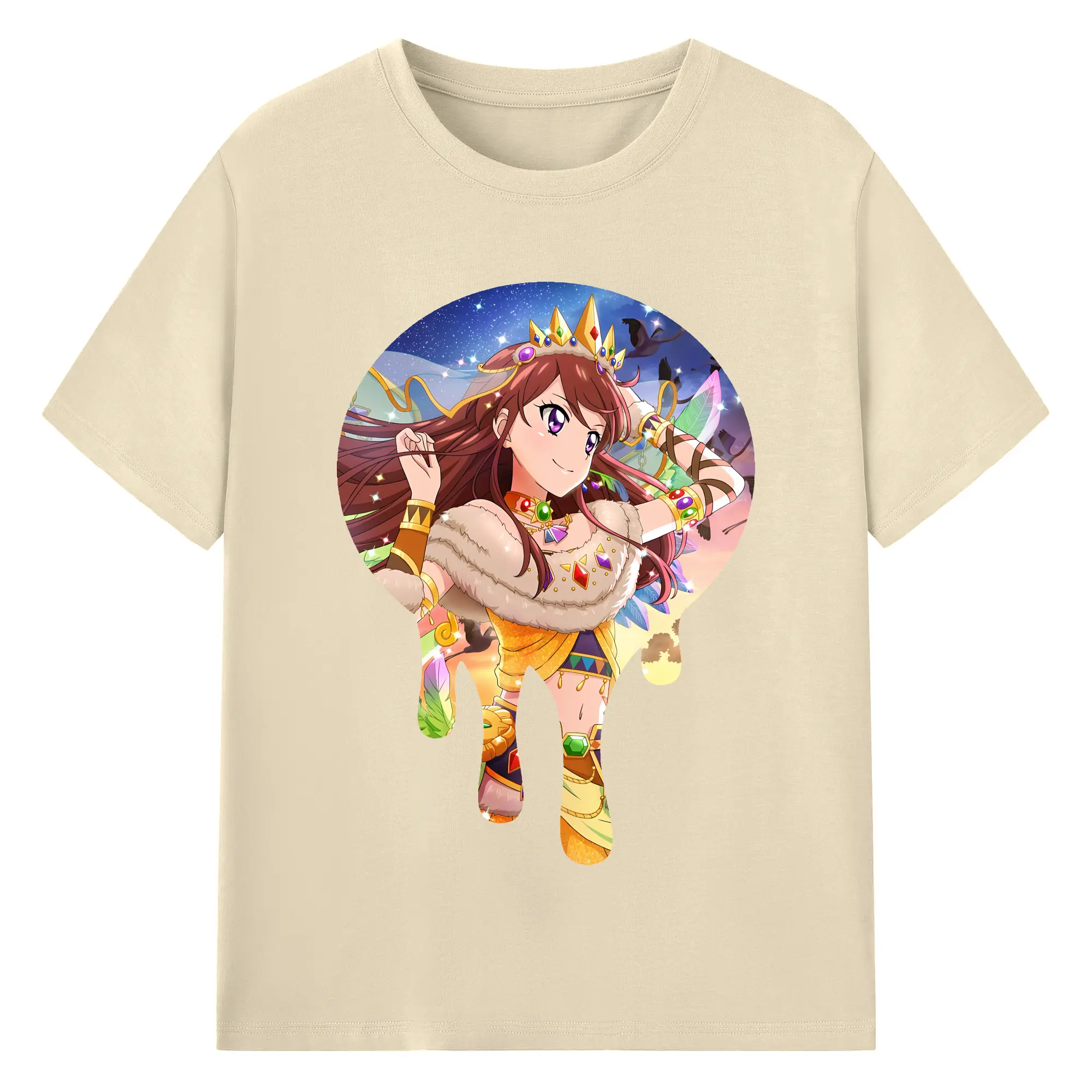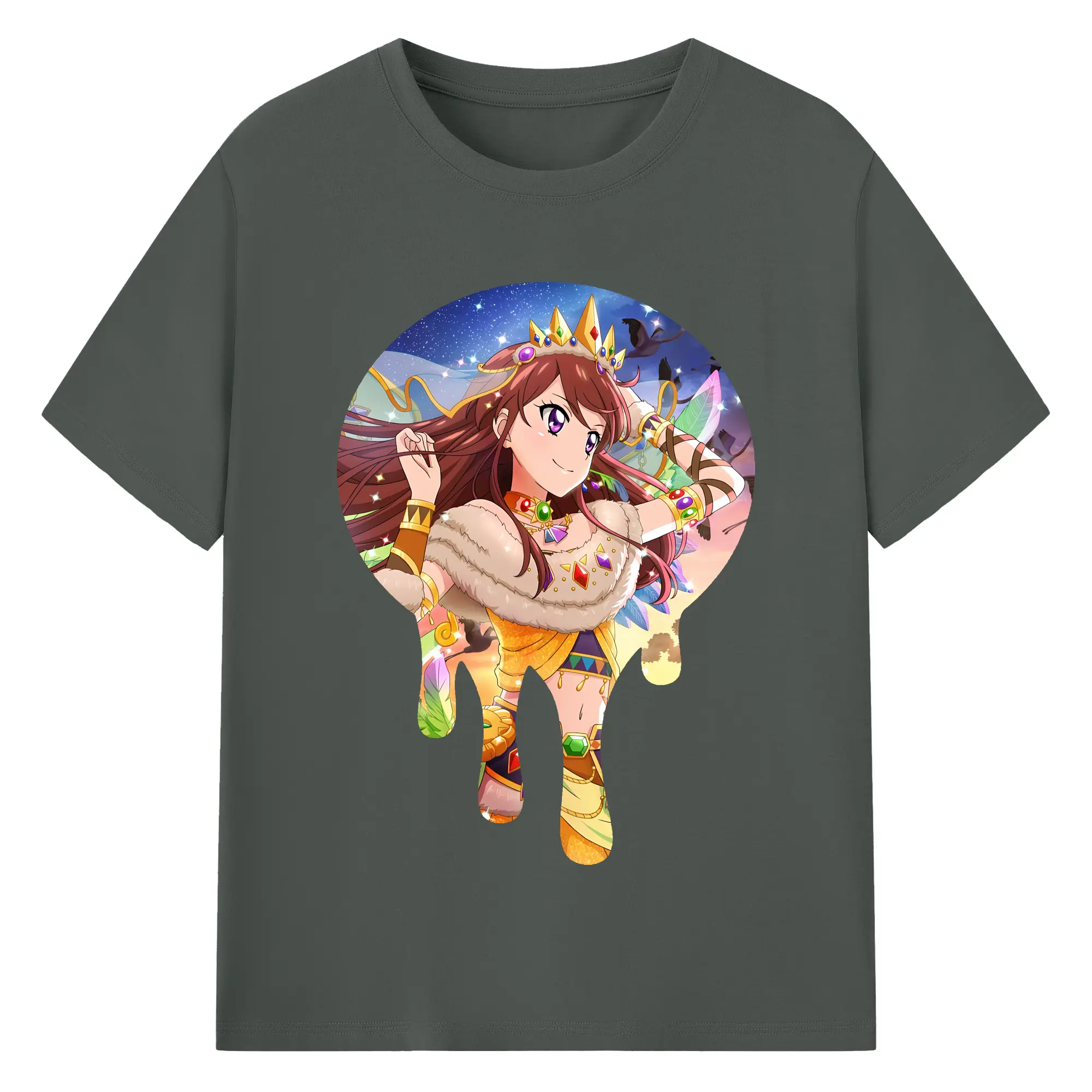 アイカツ グッズ 紫吹 蘭 - 綿100% ヴィンテージ風 半袖Tシャツ ・ フロントプリント ・ 柔らか肌触り ・ 通気性 快適 ・ スポーツ カジュアル 外出用