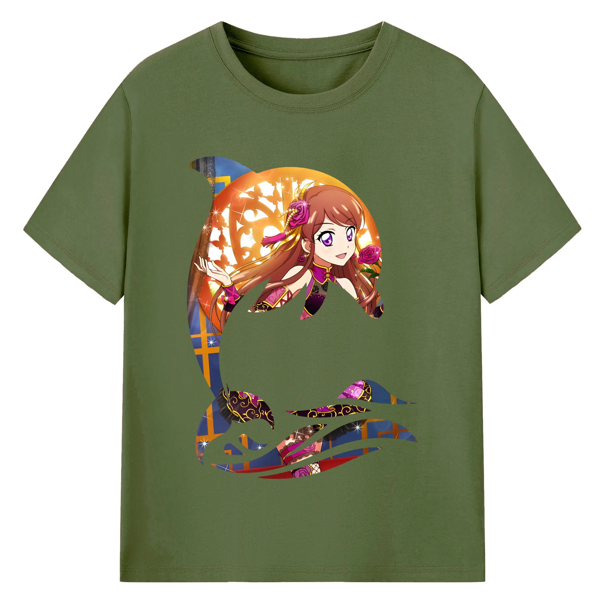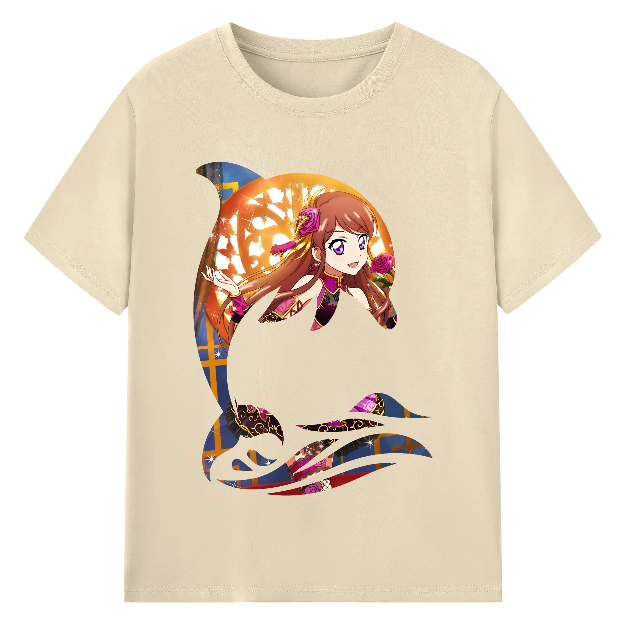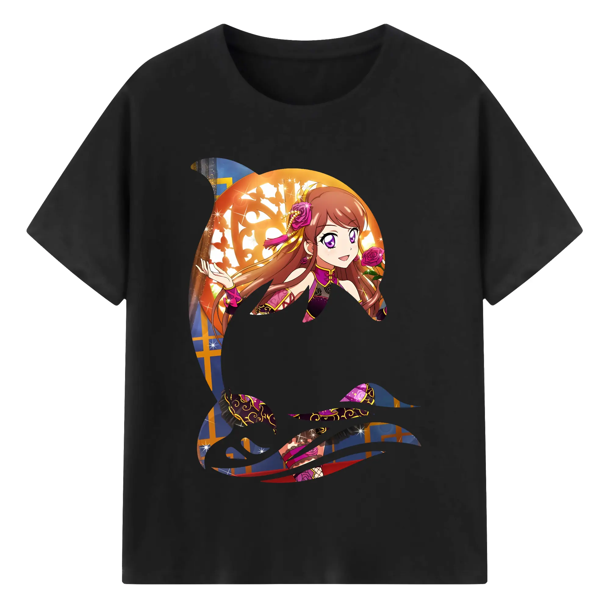 アイカツ グッズ 紫吹 蘭 - 綿100% ヴィンテージ風 半袖Tシャツ ・ 背面プリント ・ 柔らか肌触り ・ 通気性 快適 ・ スポーツ カジュアル 外出用
