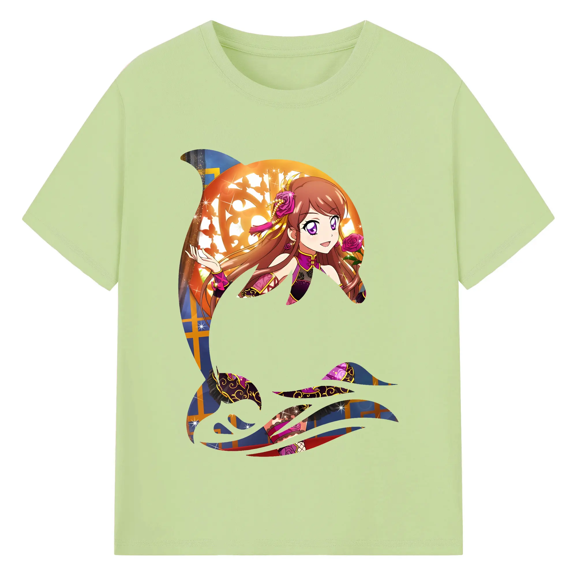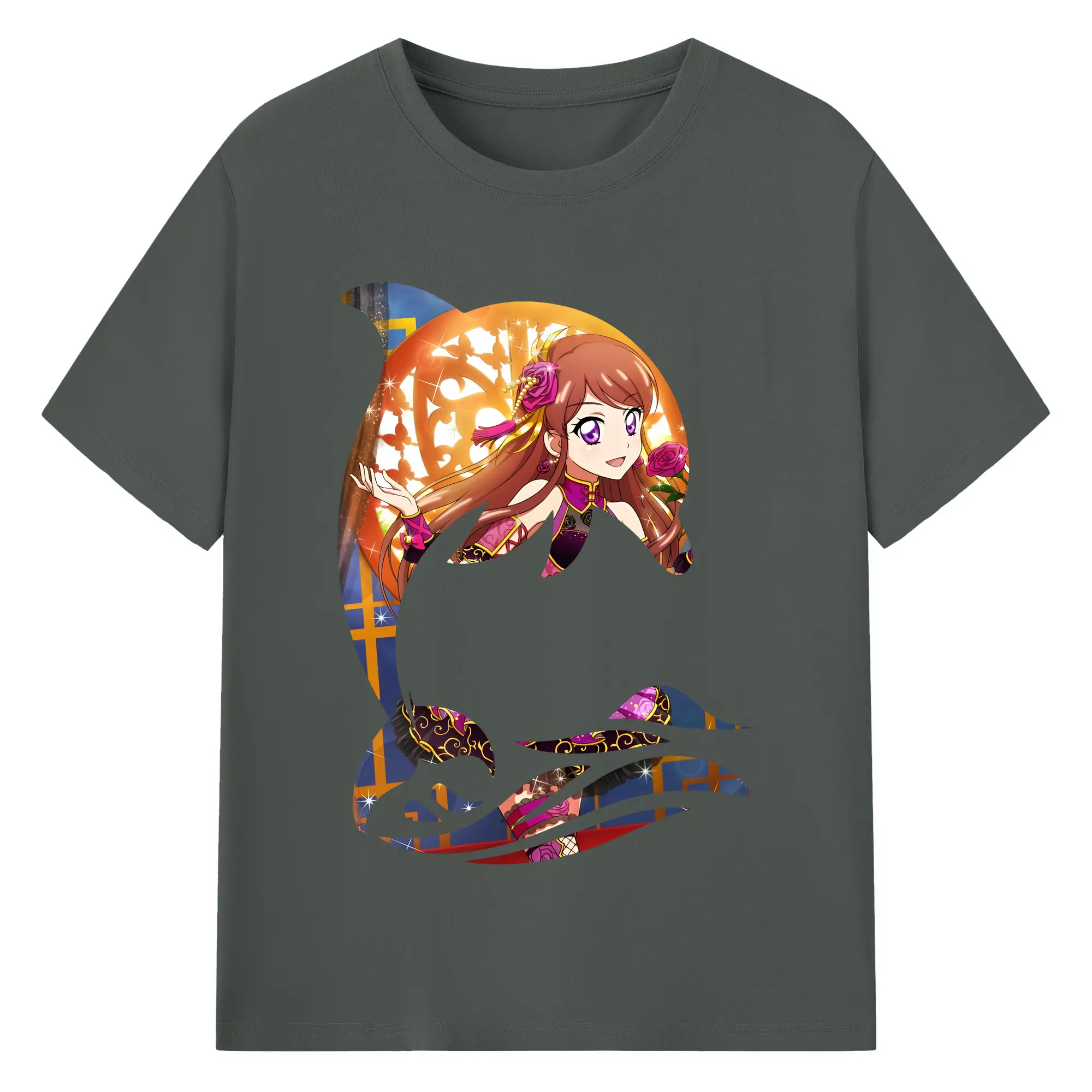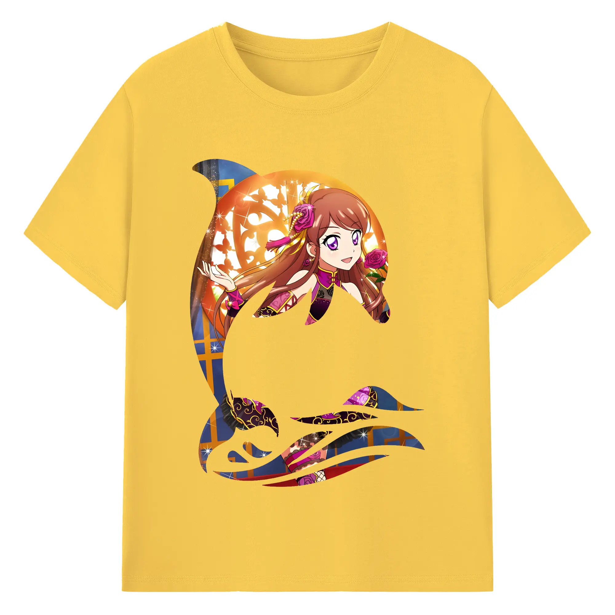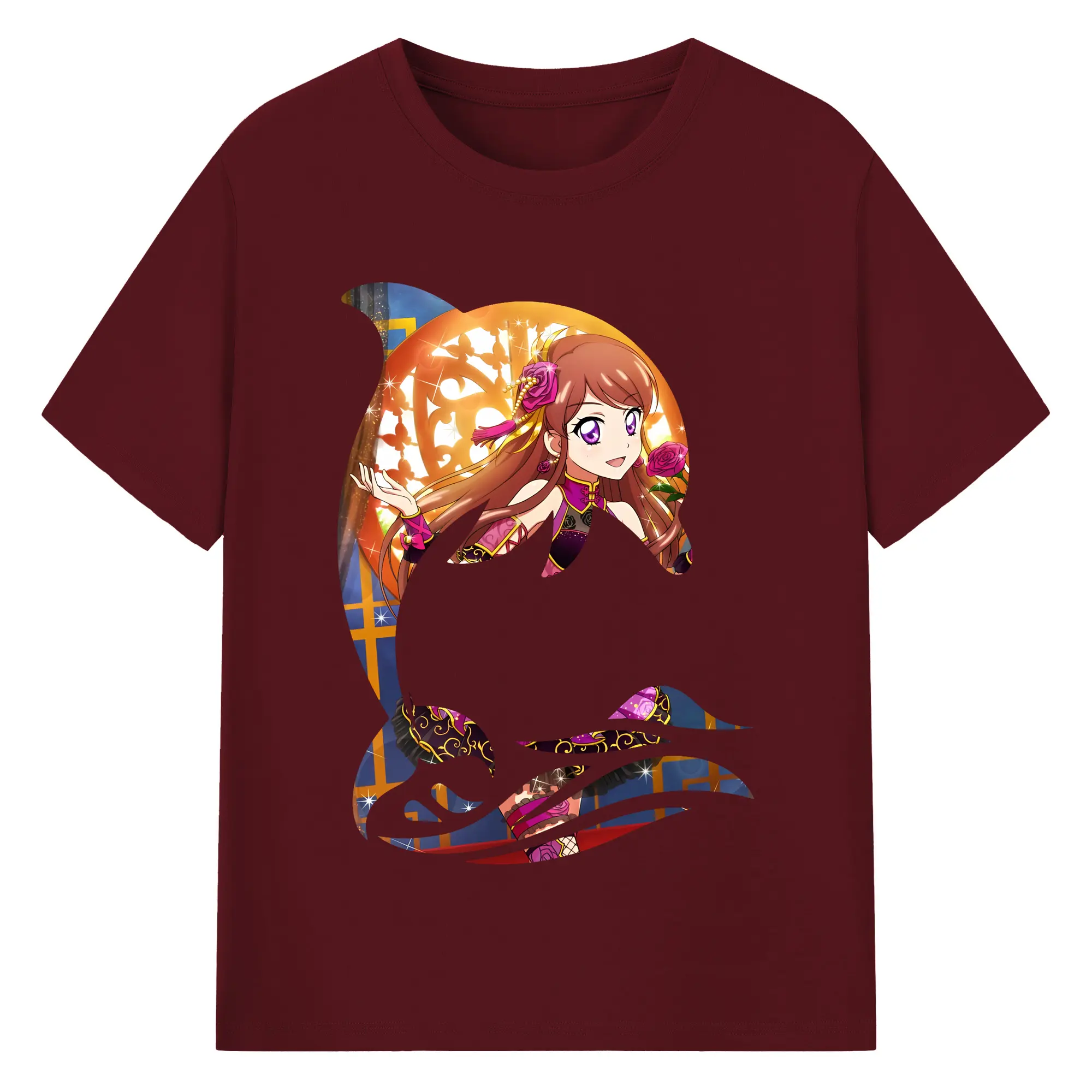 アイカツ グッズ 紫吹 蘭 - 綿100% ヴィンテージ風 半袖Tシャツ ・ フロントプリント ・ 柔らか肌触り ・ 通気性 快適 ・ スポーツ カジュアル 外出用