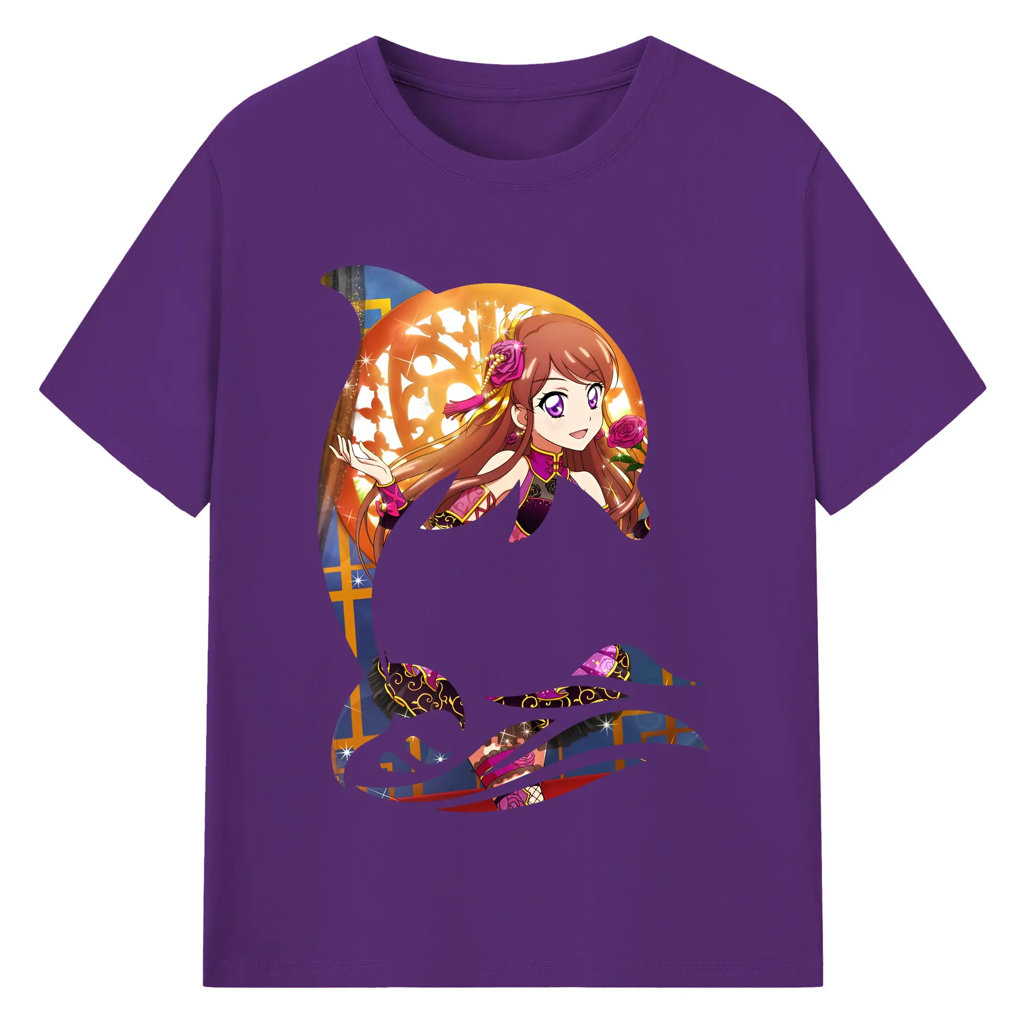 アイカツ グッズ 紫吹 蘭 - 綿100% 半袖Tシャツ ・ バックプリント ・ 快適 通気性 ・ 日常使い 散歩 スポーツ用