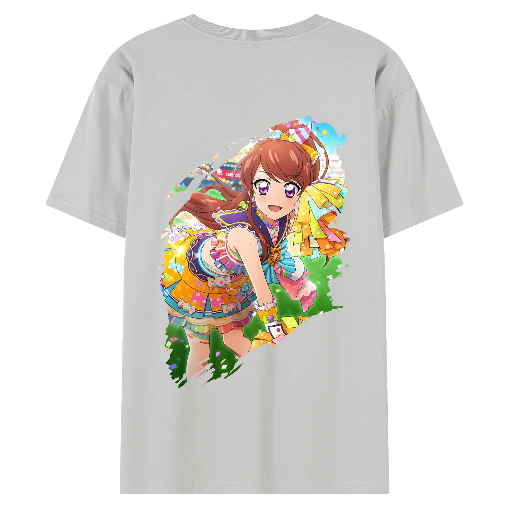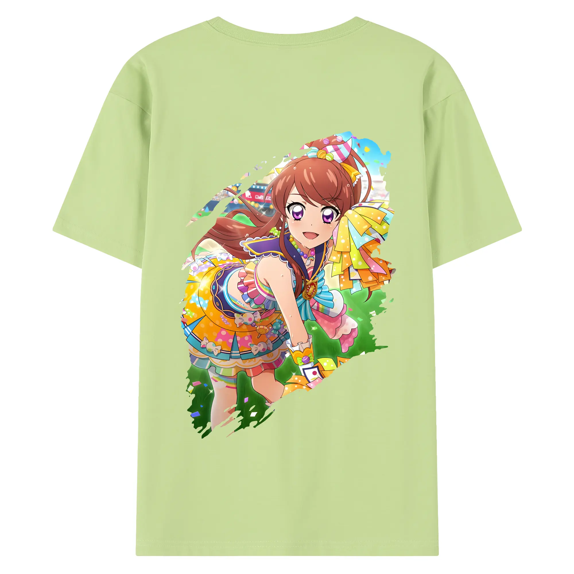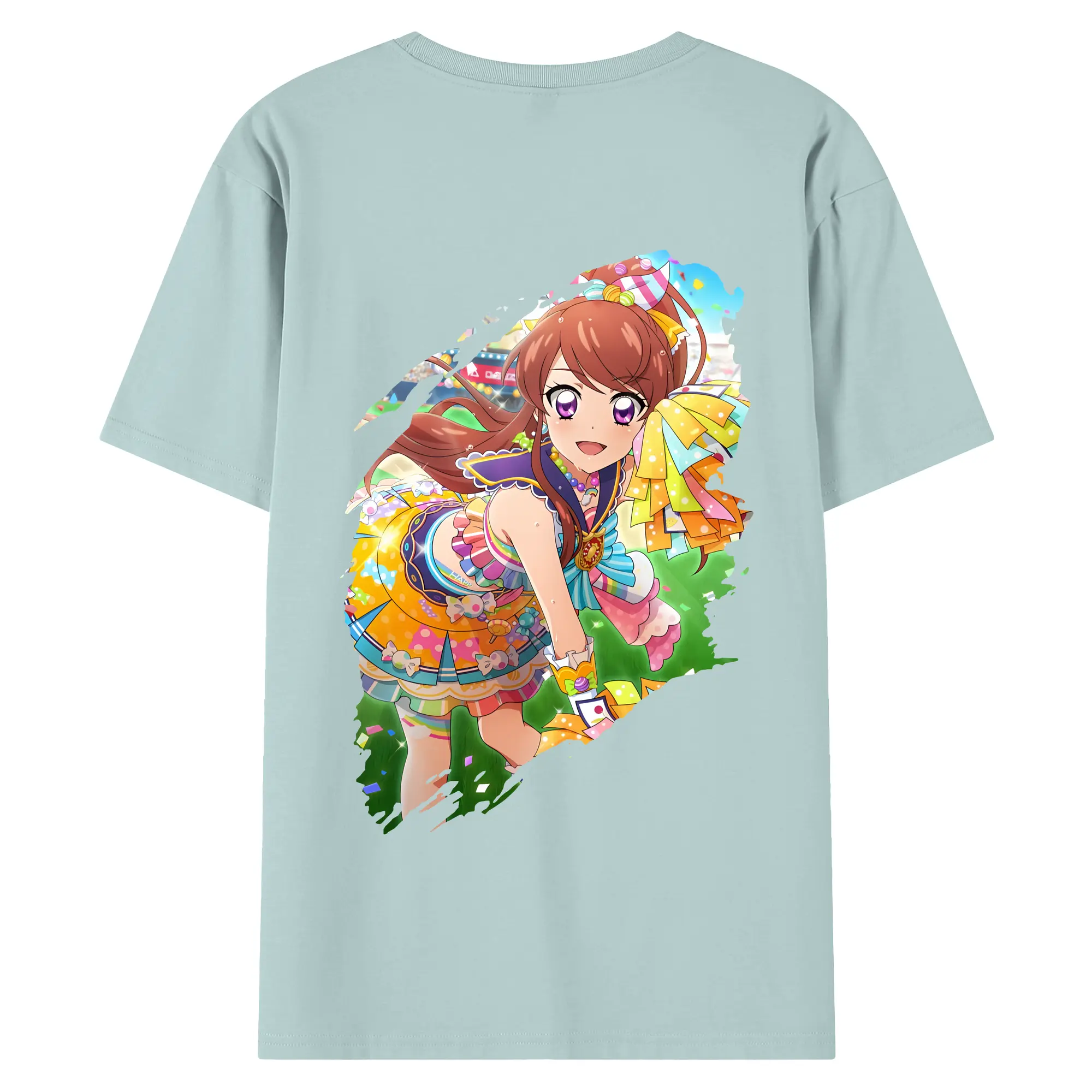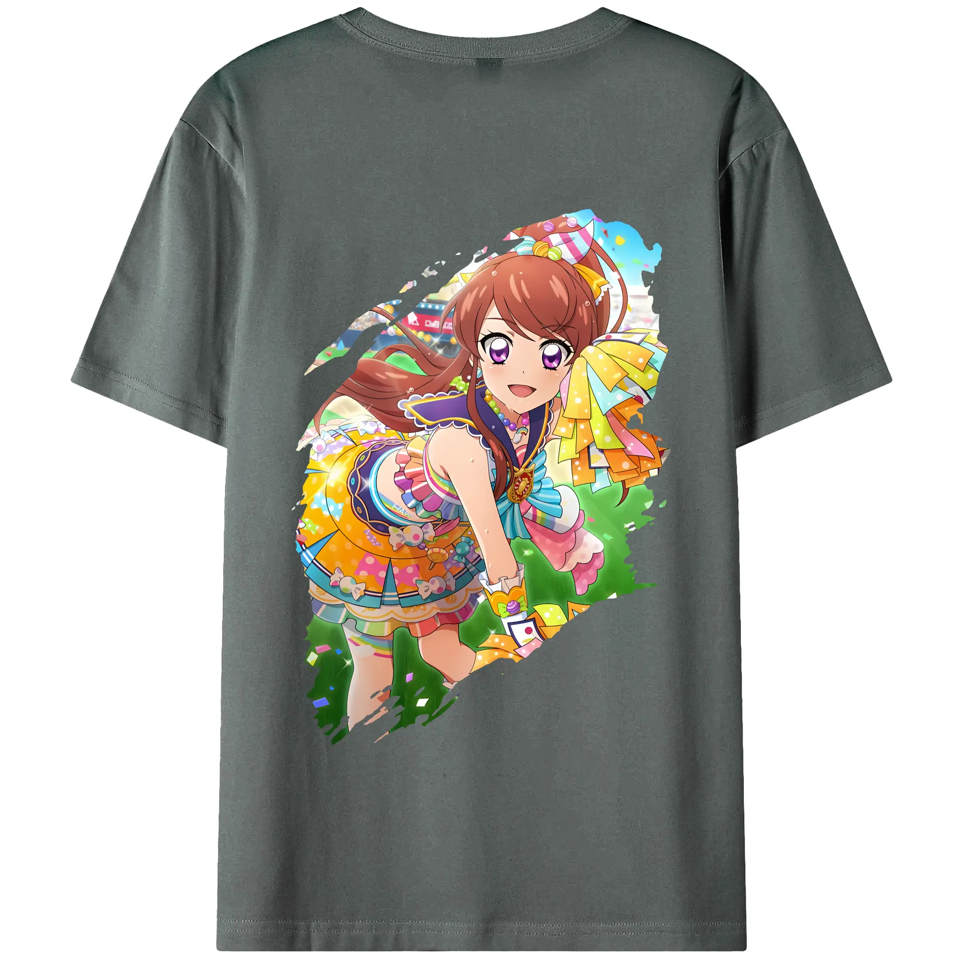 アイカツ グッズ 紫吹 蘭 - 綿100% ヴィンテージ風 半袖Tシャツ ・ 背面プリント ・ 柔らか肌触り ・ 通気性 快適 ・ スポーツ カジュアル 外出用
