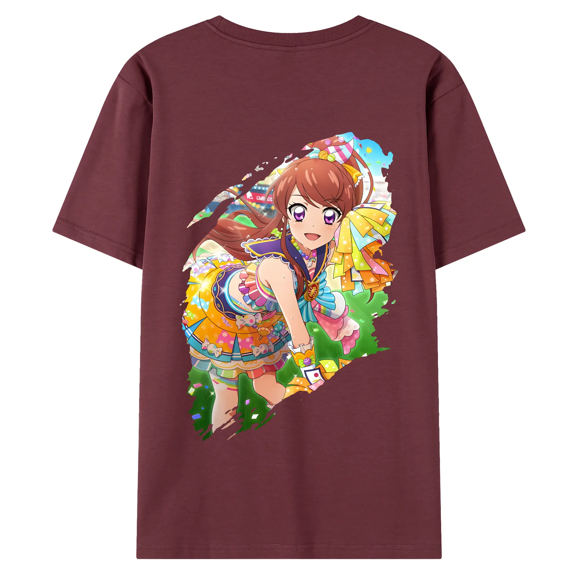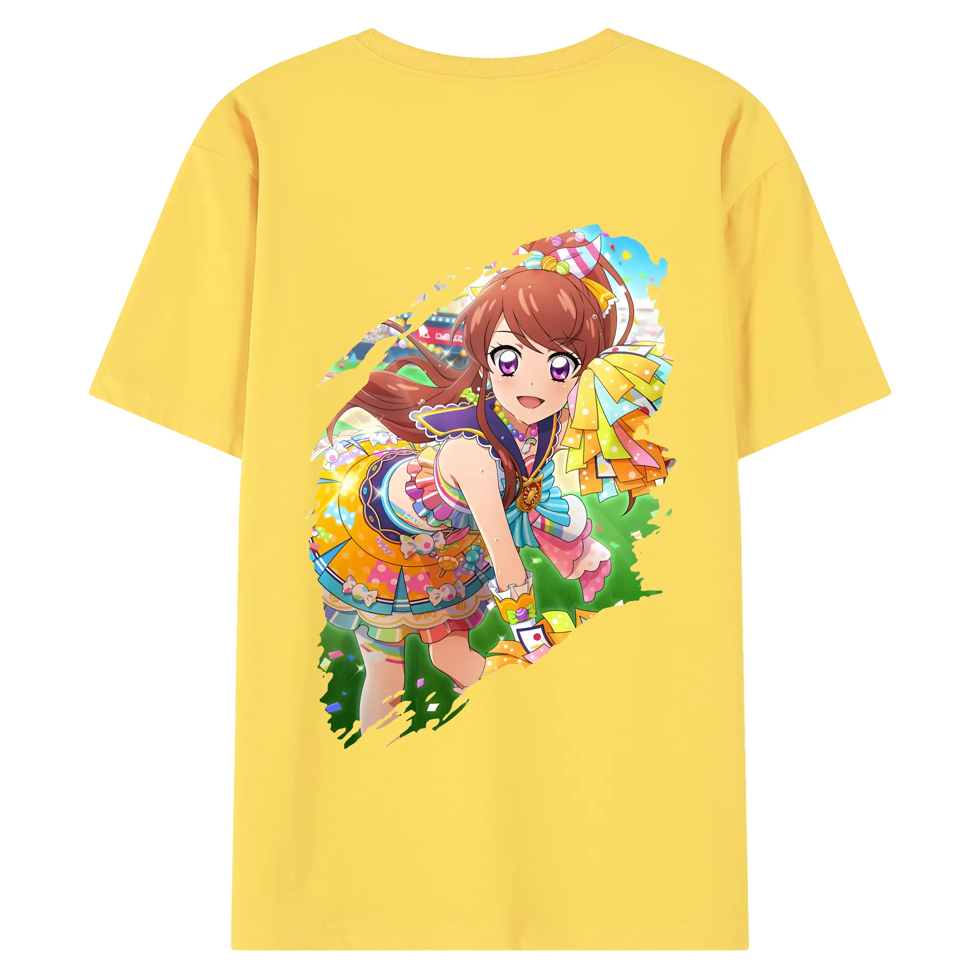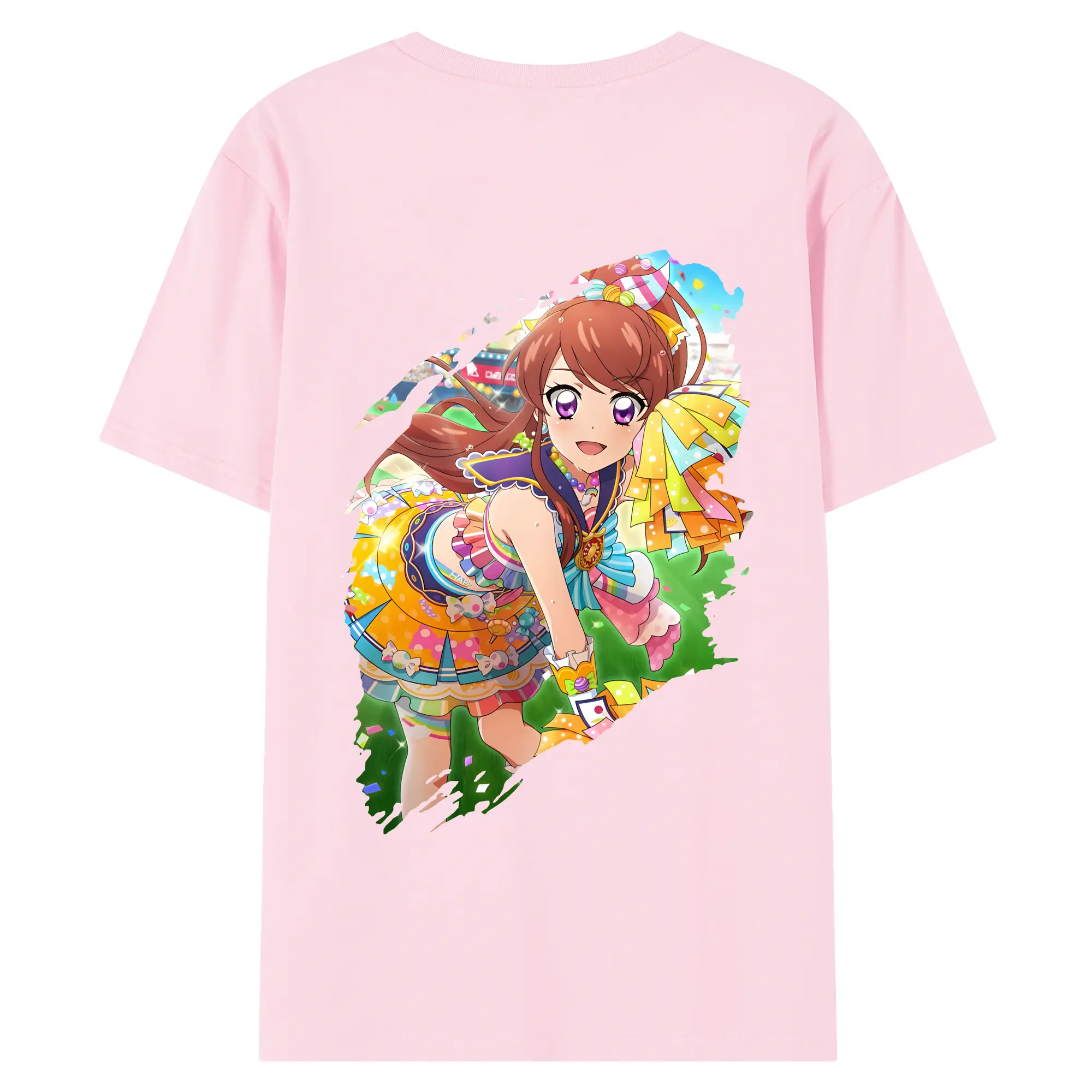 アイカツ グッズ 紫吹 蘭 - 綿100% ヴィンテージ風 半袖Tシャツ ・ 背面プリント ・ 柔らか肌触り ・ 通気性 快適 ・ スポーツ カジュアル 外出用