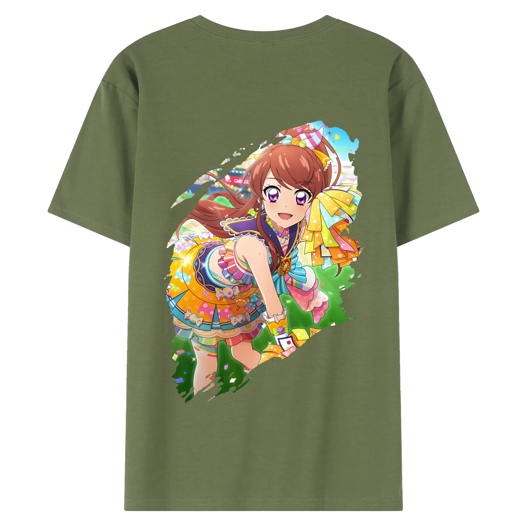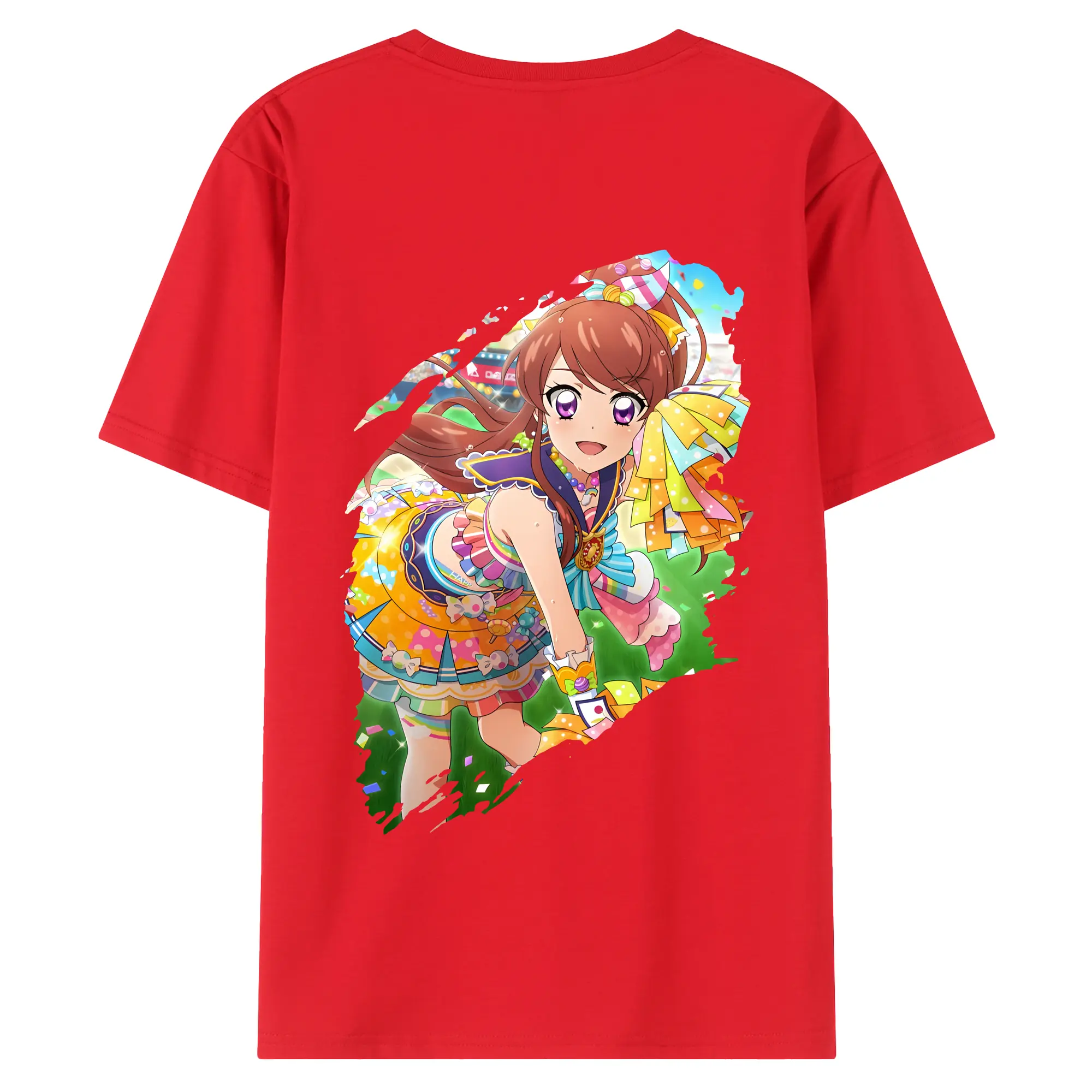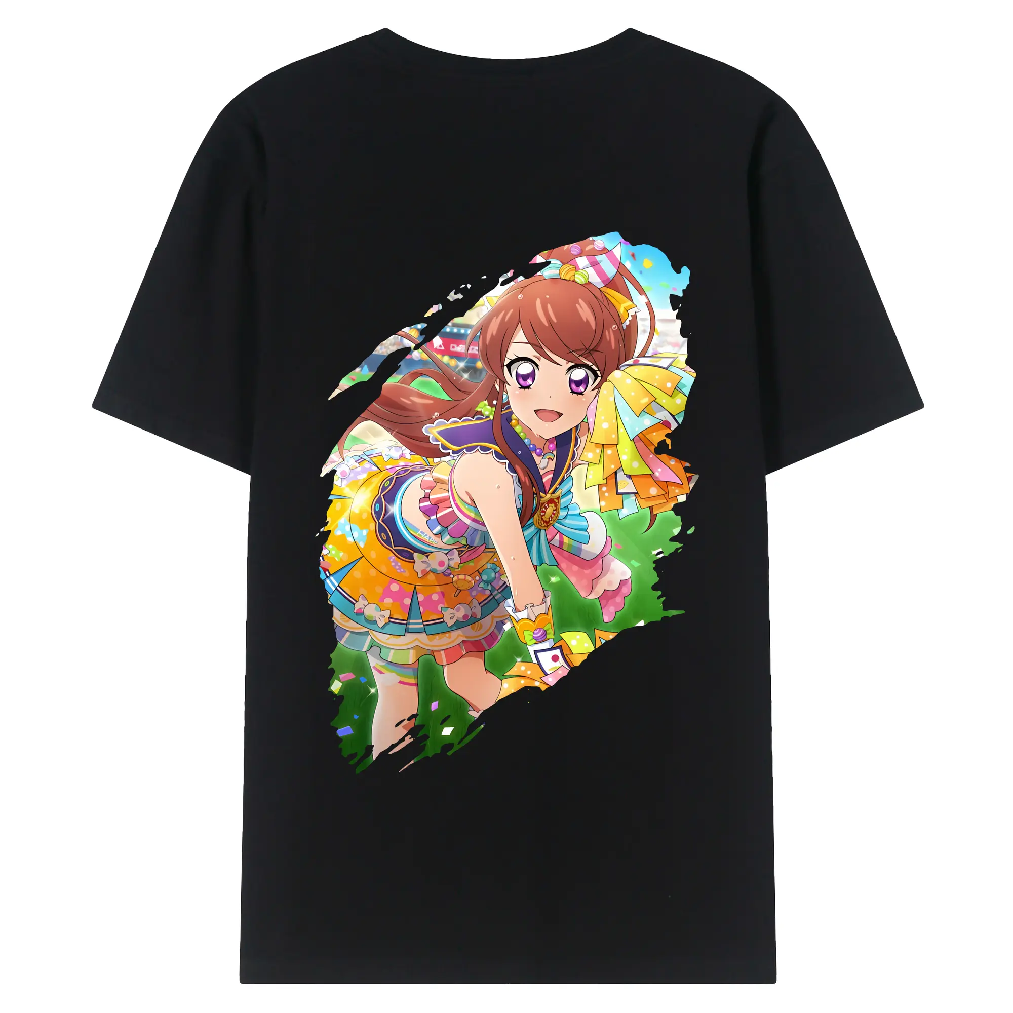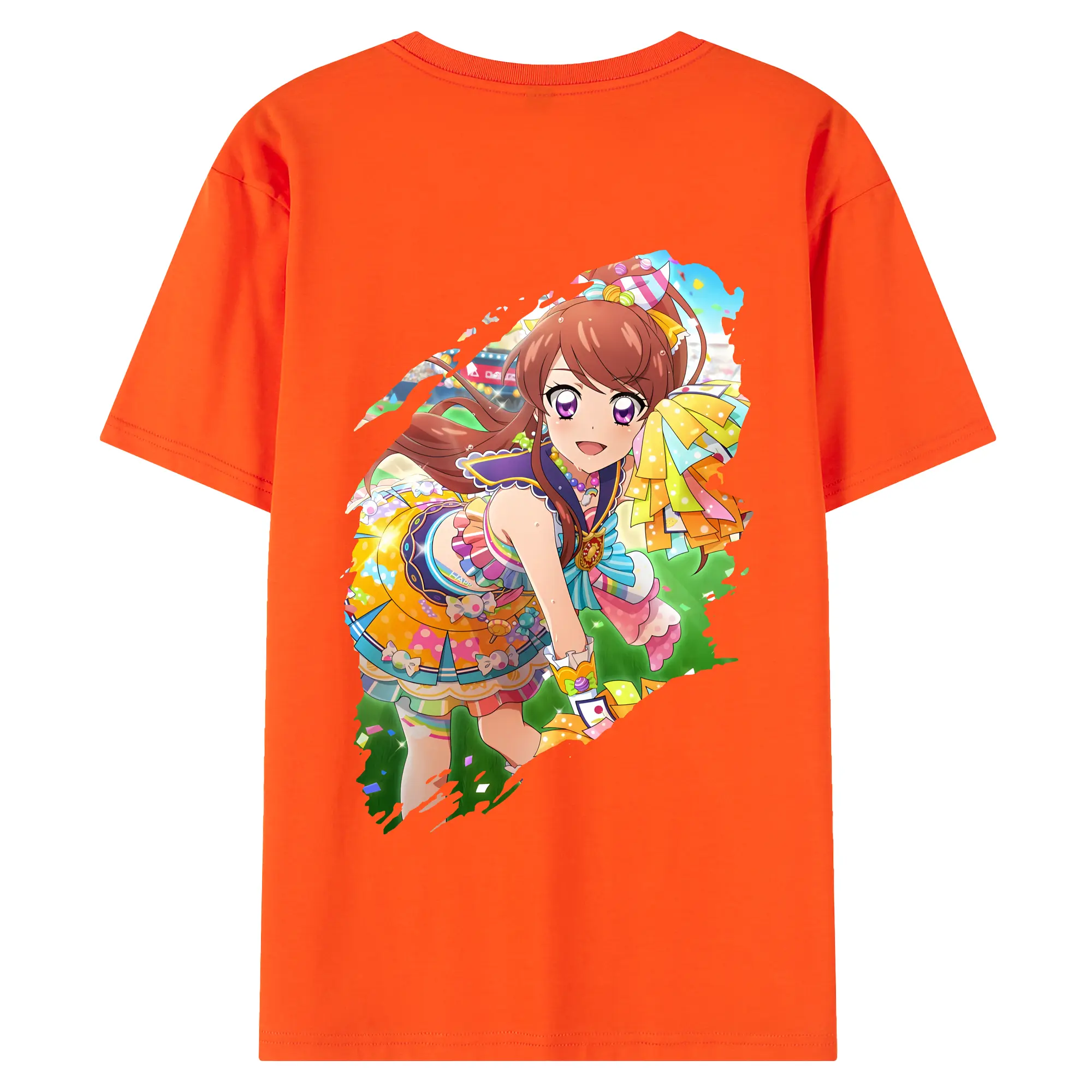 アイカツ グッズ 紫吹 蘭 - 綿100% ヴィンテージ風 半袖Tシャツ ・ 背面プリント ・ 柔らか肌触り ・ 通気性 快適 ・ スポーツ カジュアル 外出用