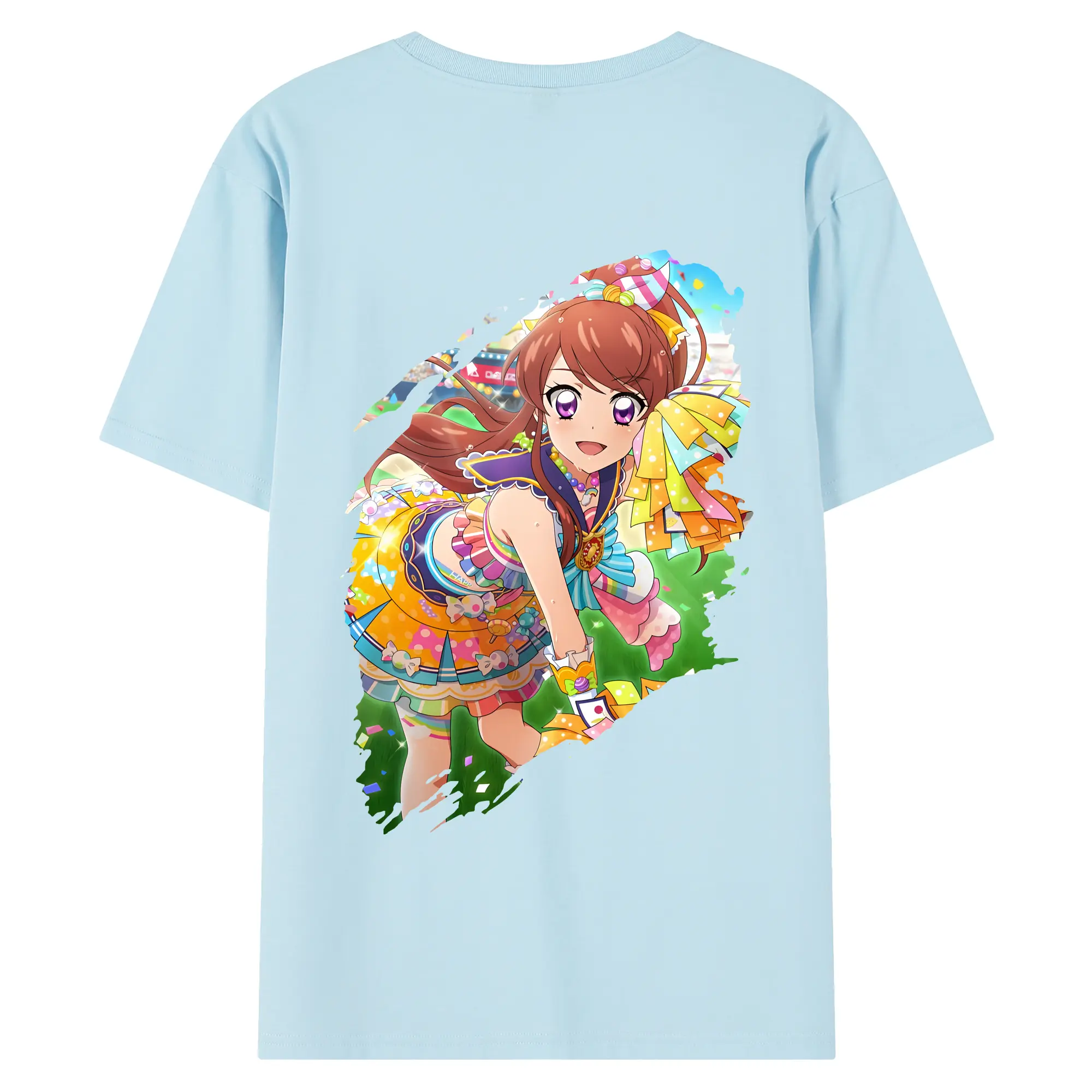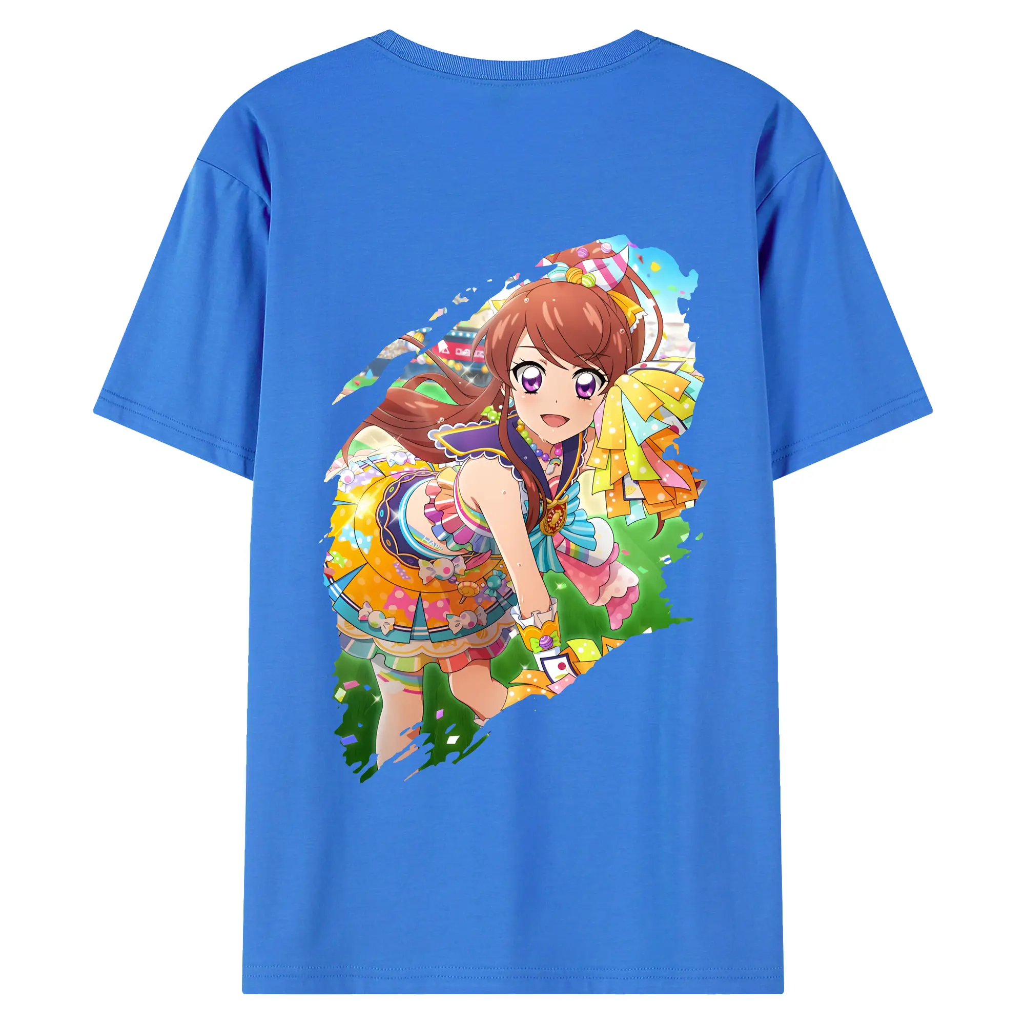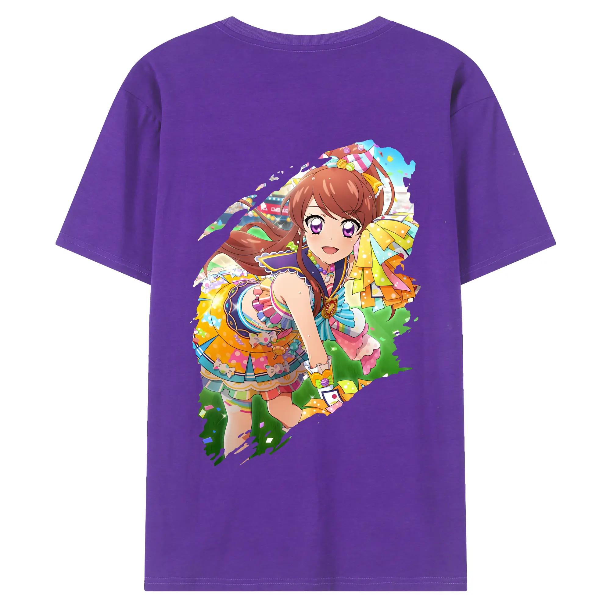 アイカツ グッズ 紫吹 蘭 - 綿100% 半袖Tシャツ ・ フロントプリント ・ 快適 通気性 ・ 日常使い 散歩 スポーツ用