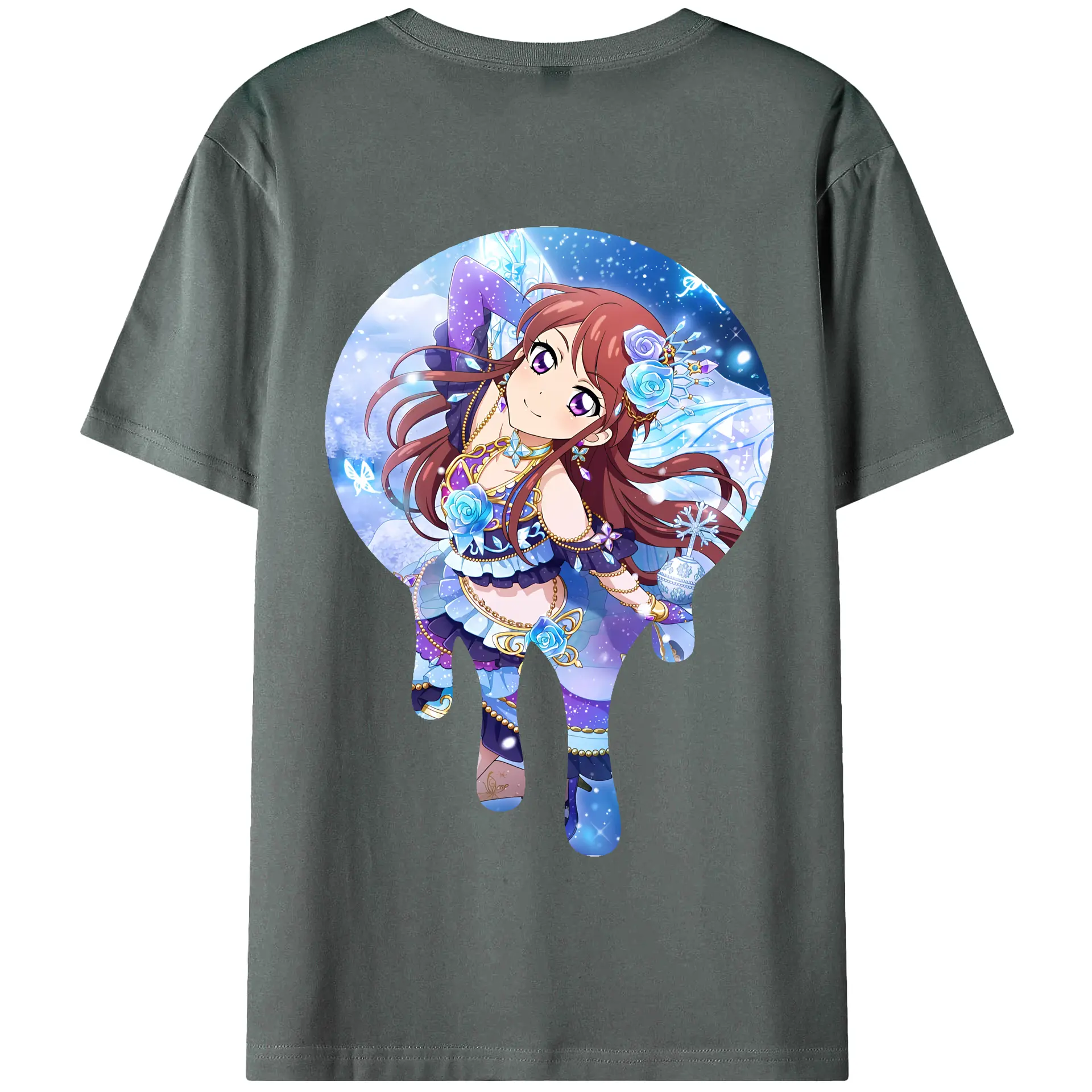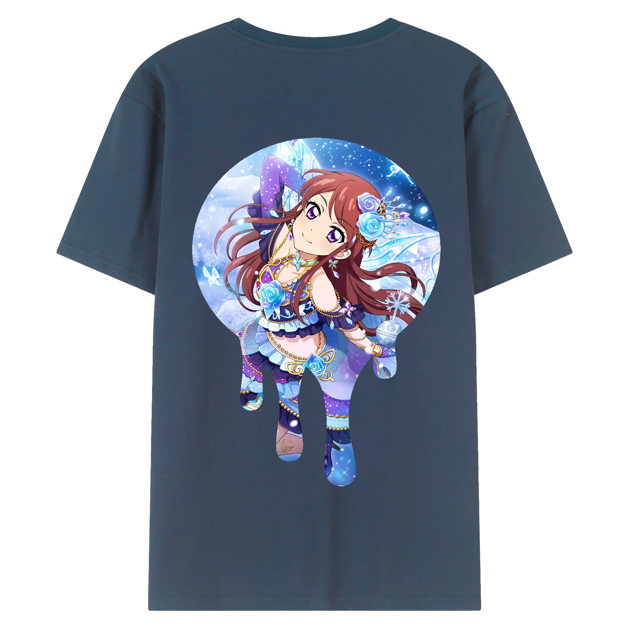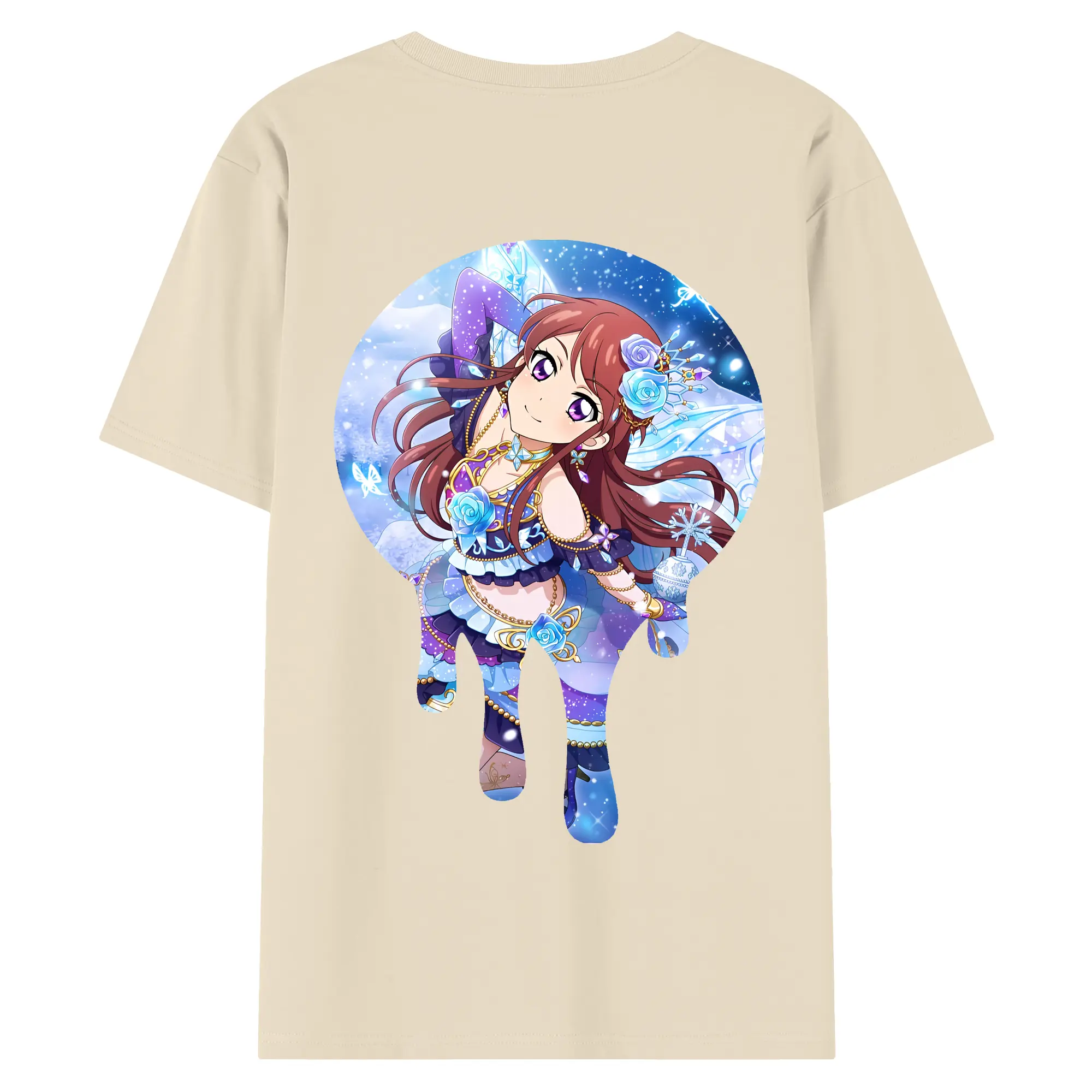アイカツ グッズ 紫吹 蘭 - 綿100% ヴィンテージ風 半袖Tシャツ ・ フロントプリント ・ 柔らか肌触り ・ 通気性 快適 ・ スポーツ カジュアル 外出用