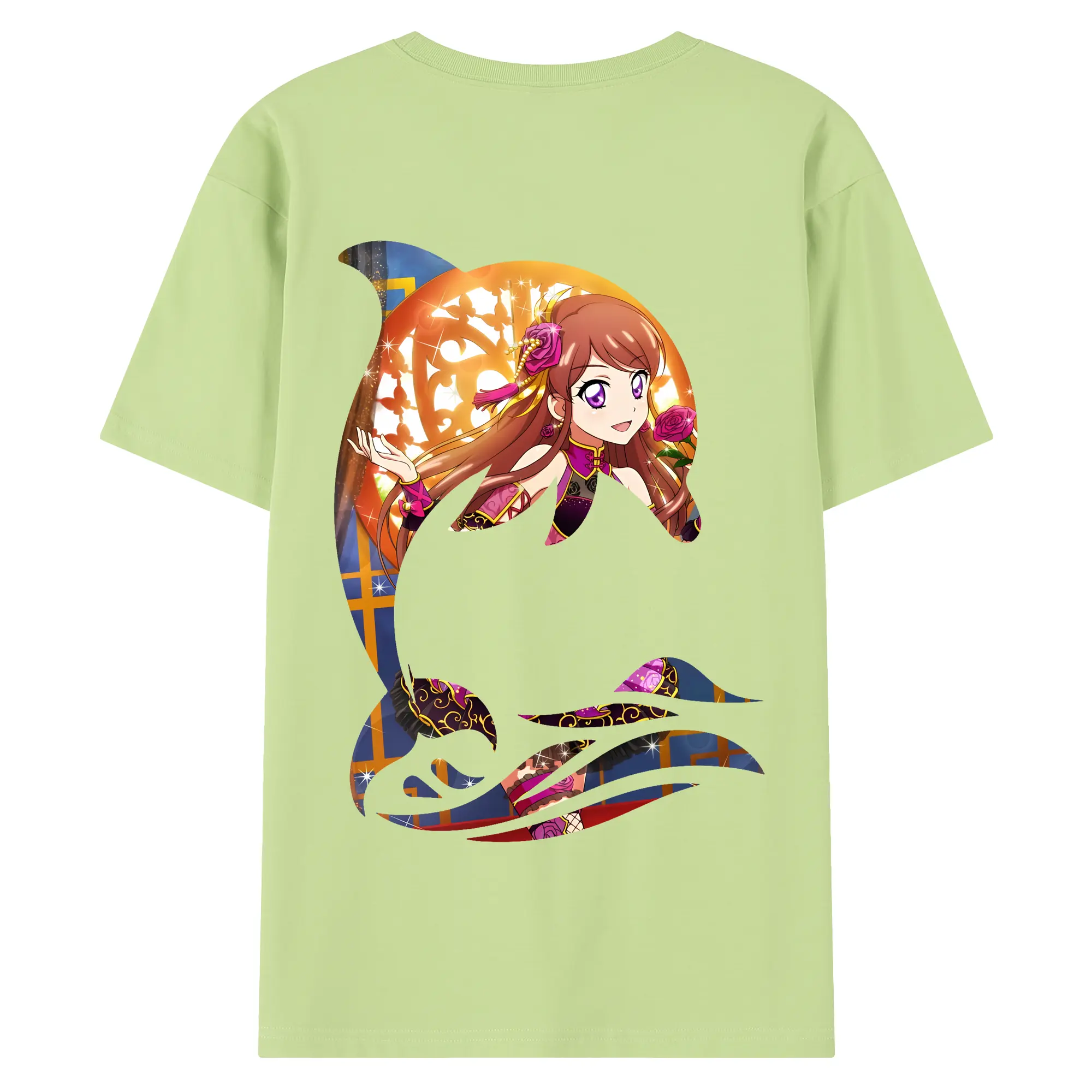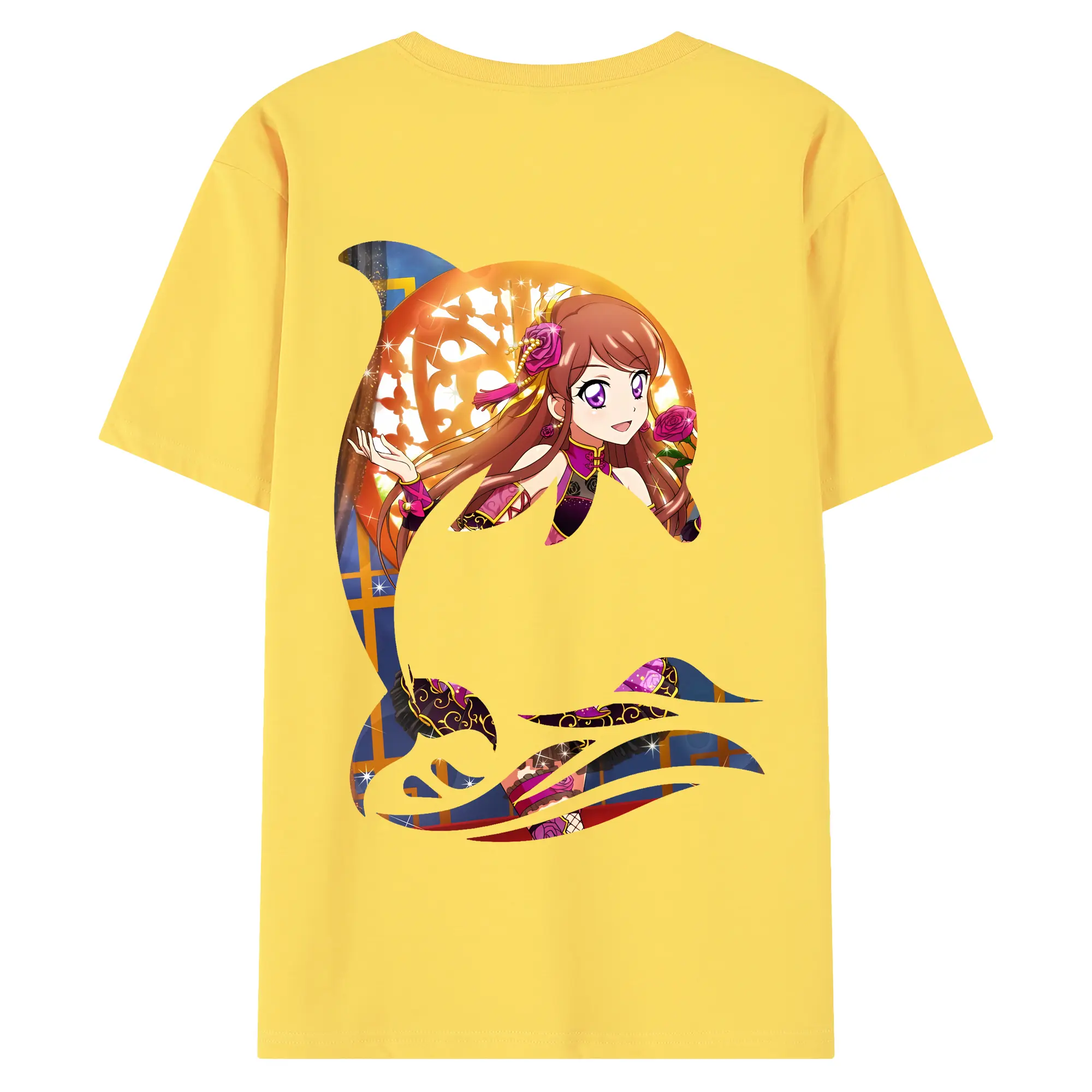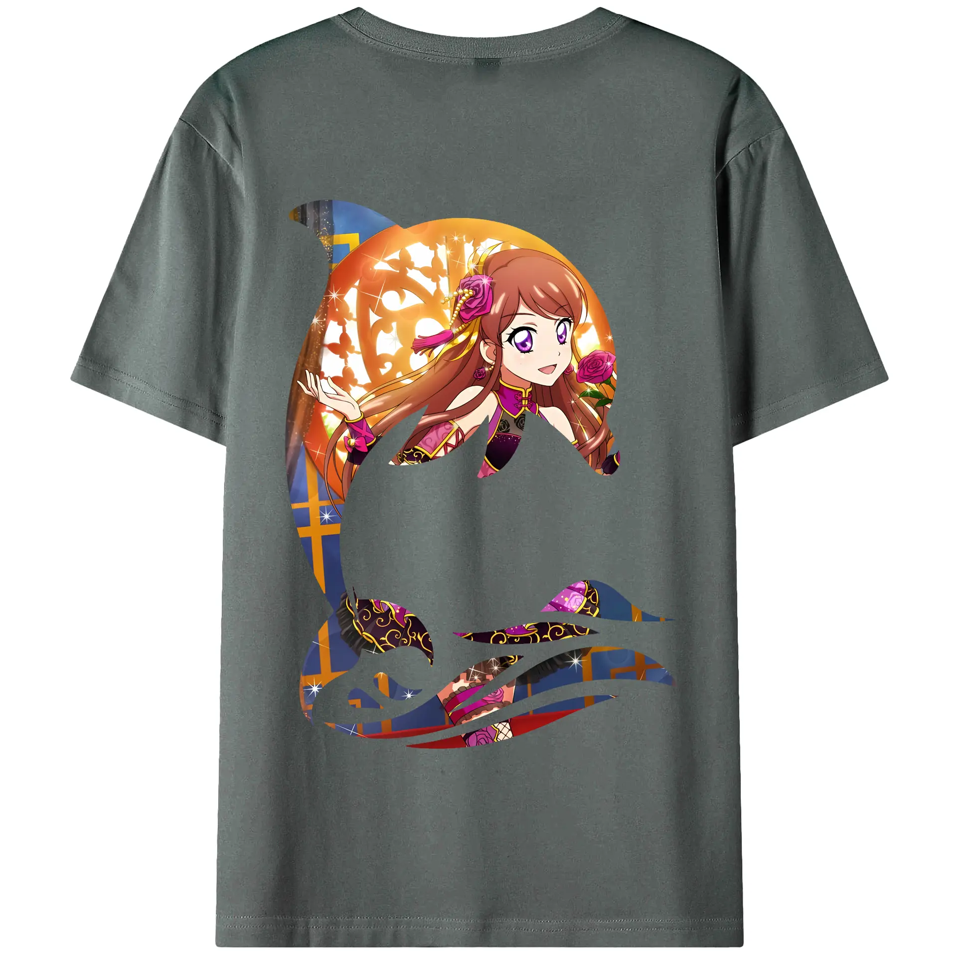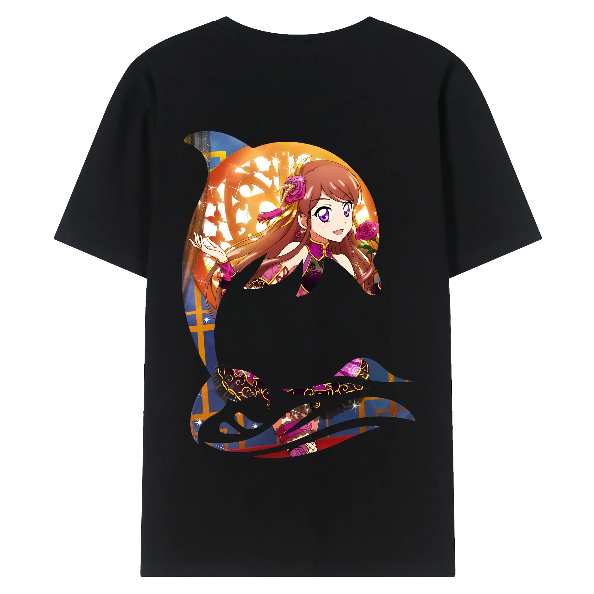 アイカツ グッズ 紫吹 蘭 - 綿100% ヴィンテージ風 半袖Tシャツ ・ 背面プリント ・ 柔らか肌触り ・ 通気性 快適 ・ スポーツ カジュアル 外出用