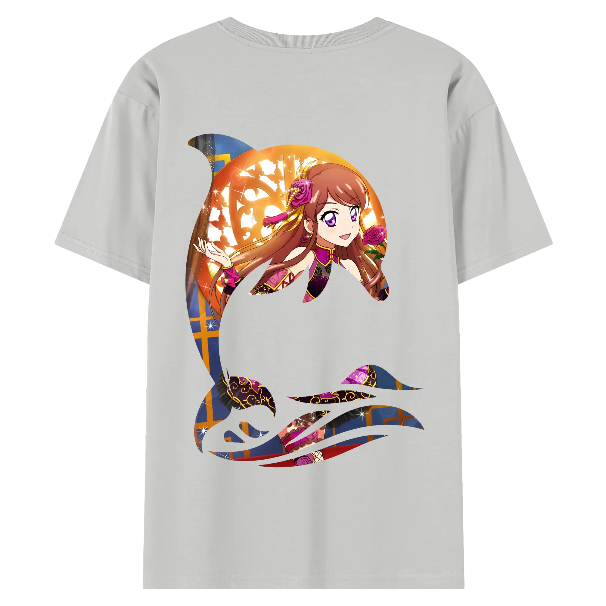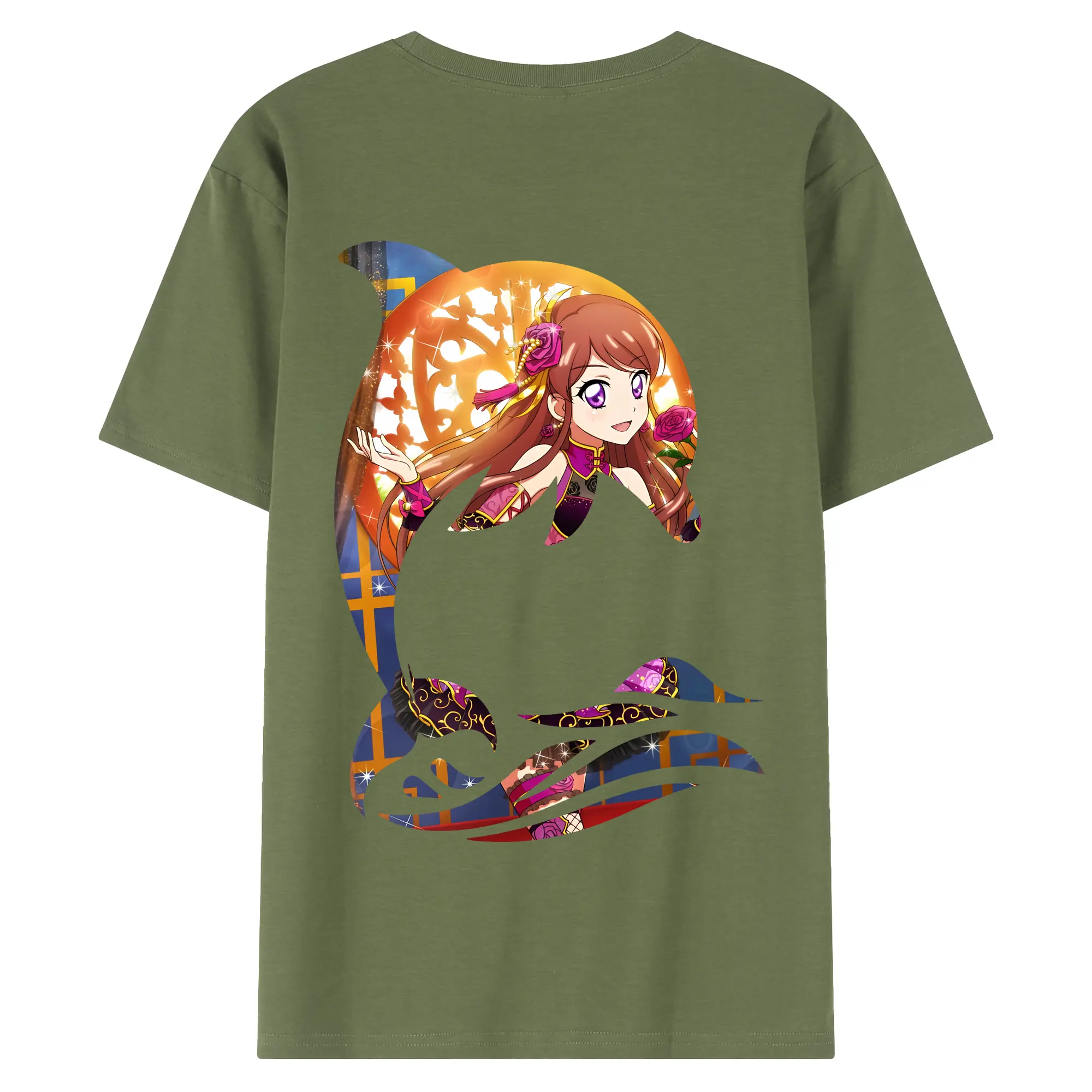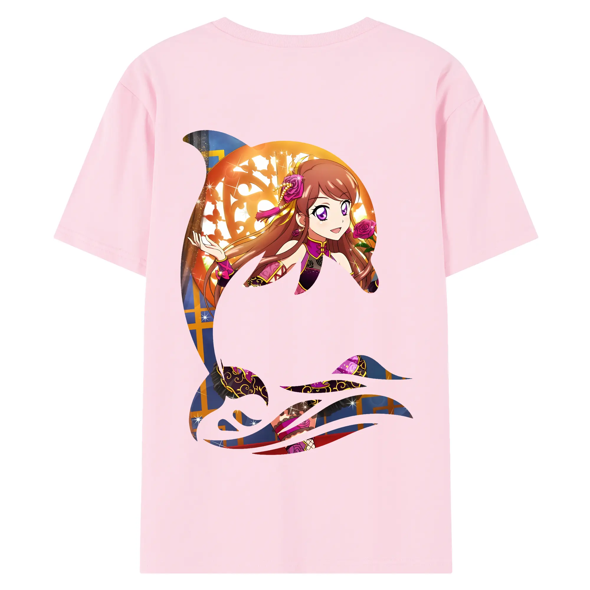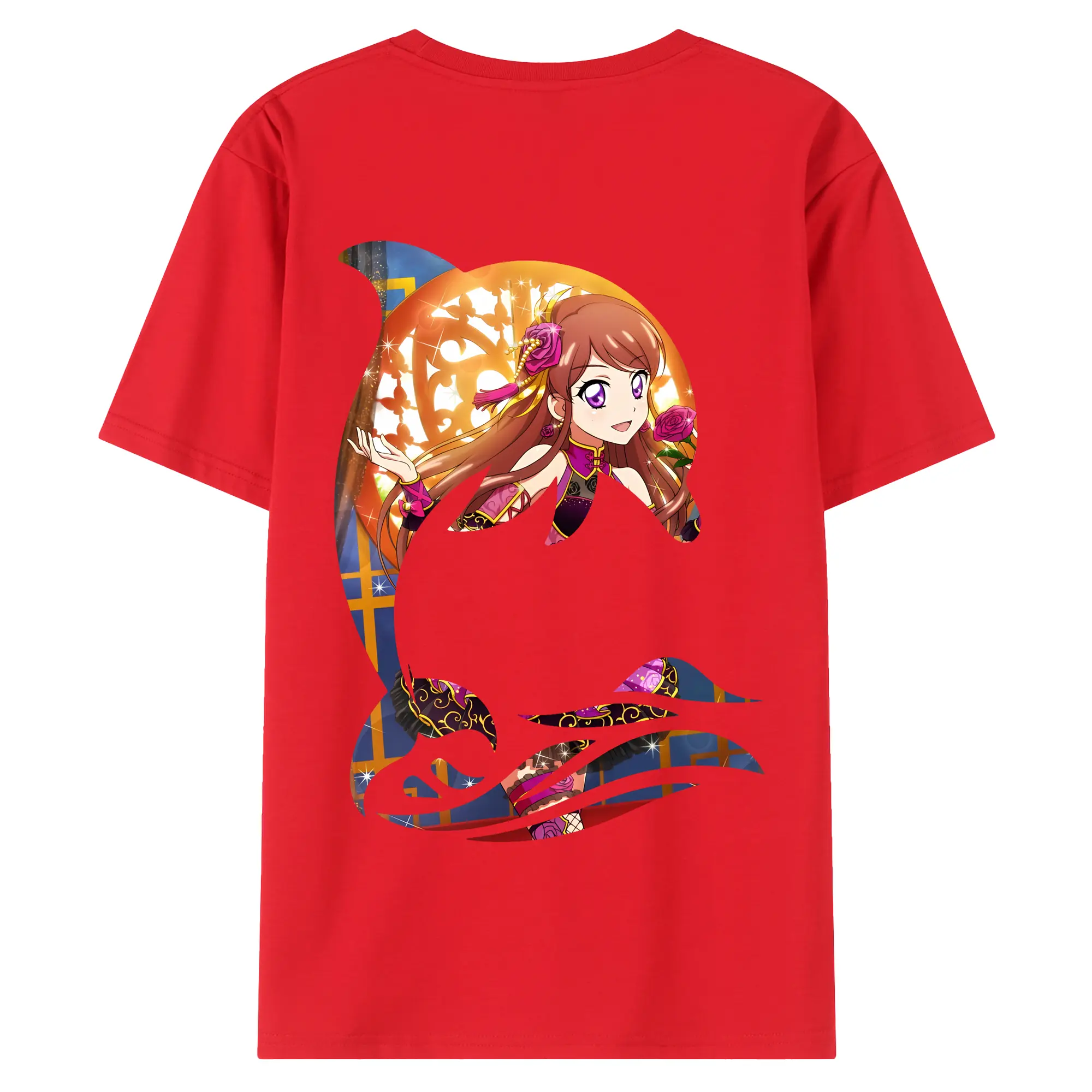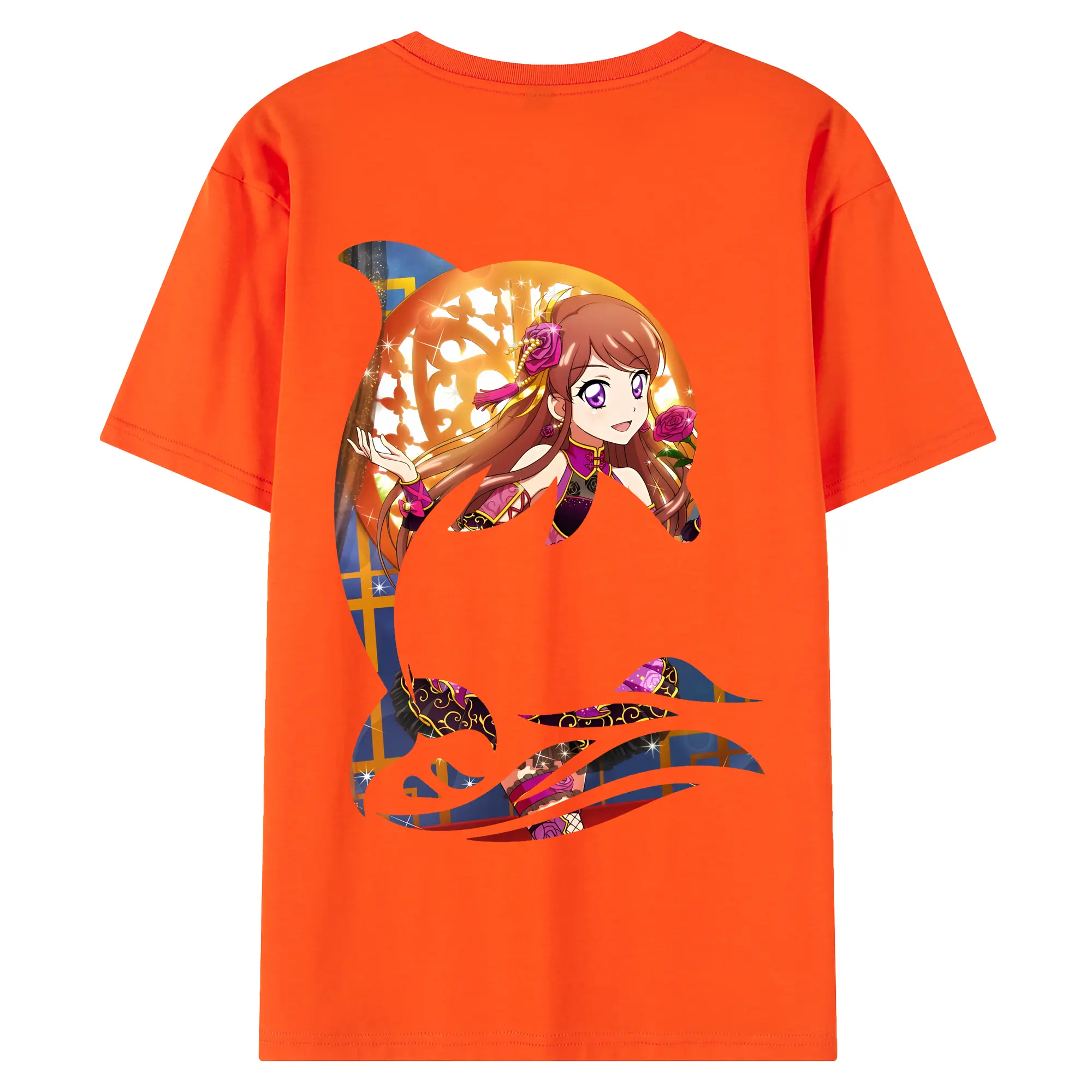 アイカツ グッズ 紫吹 蘭 - 綿100% ヴィンテージ風 半袖Tシャツ ・ 背面プリント ・ 柔らか肌触り ・ 通気性 快適 ・ スポーツ カジュアル 外出用
