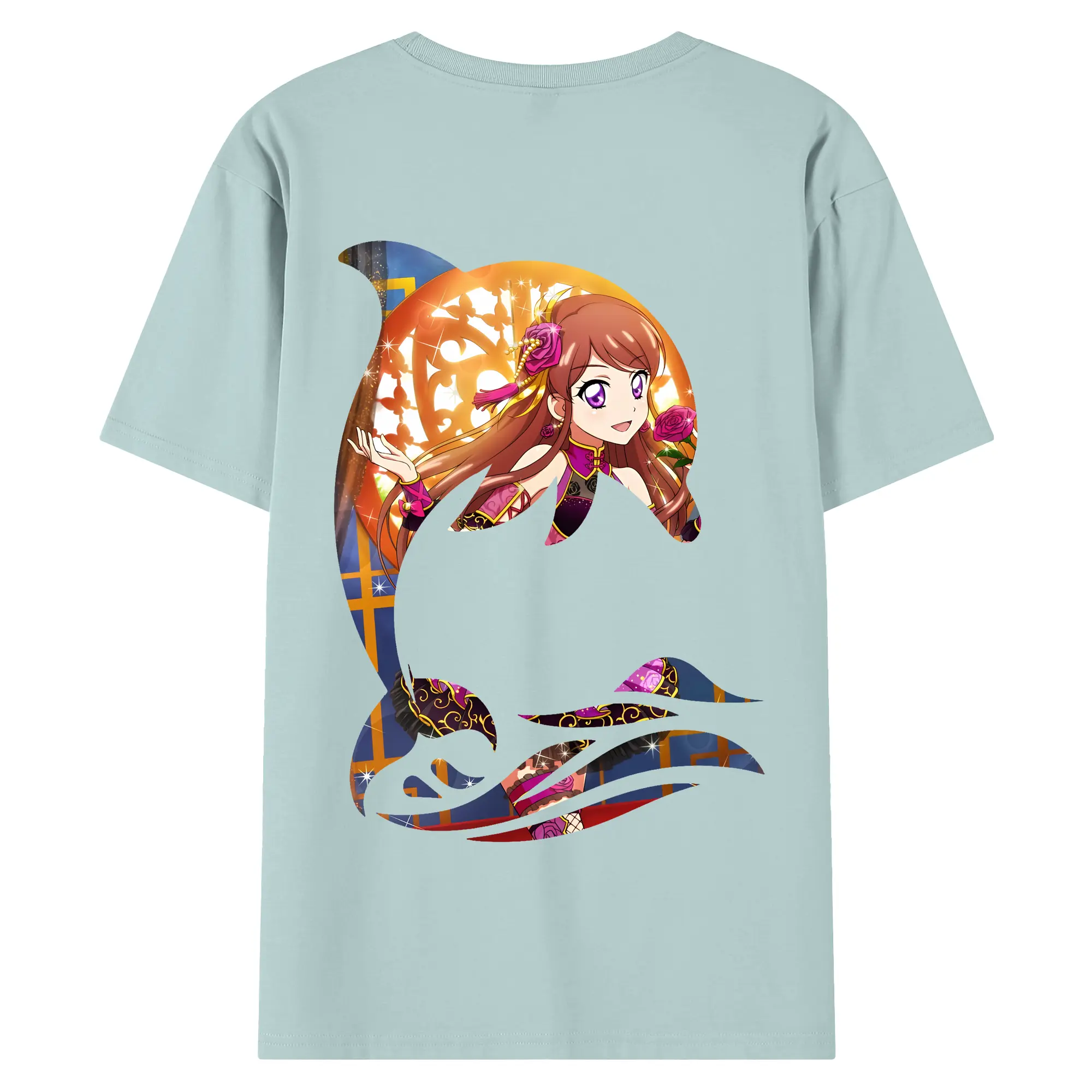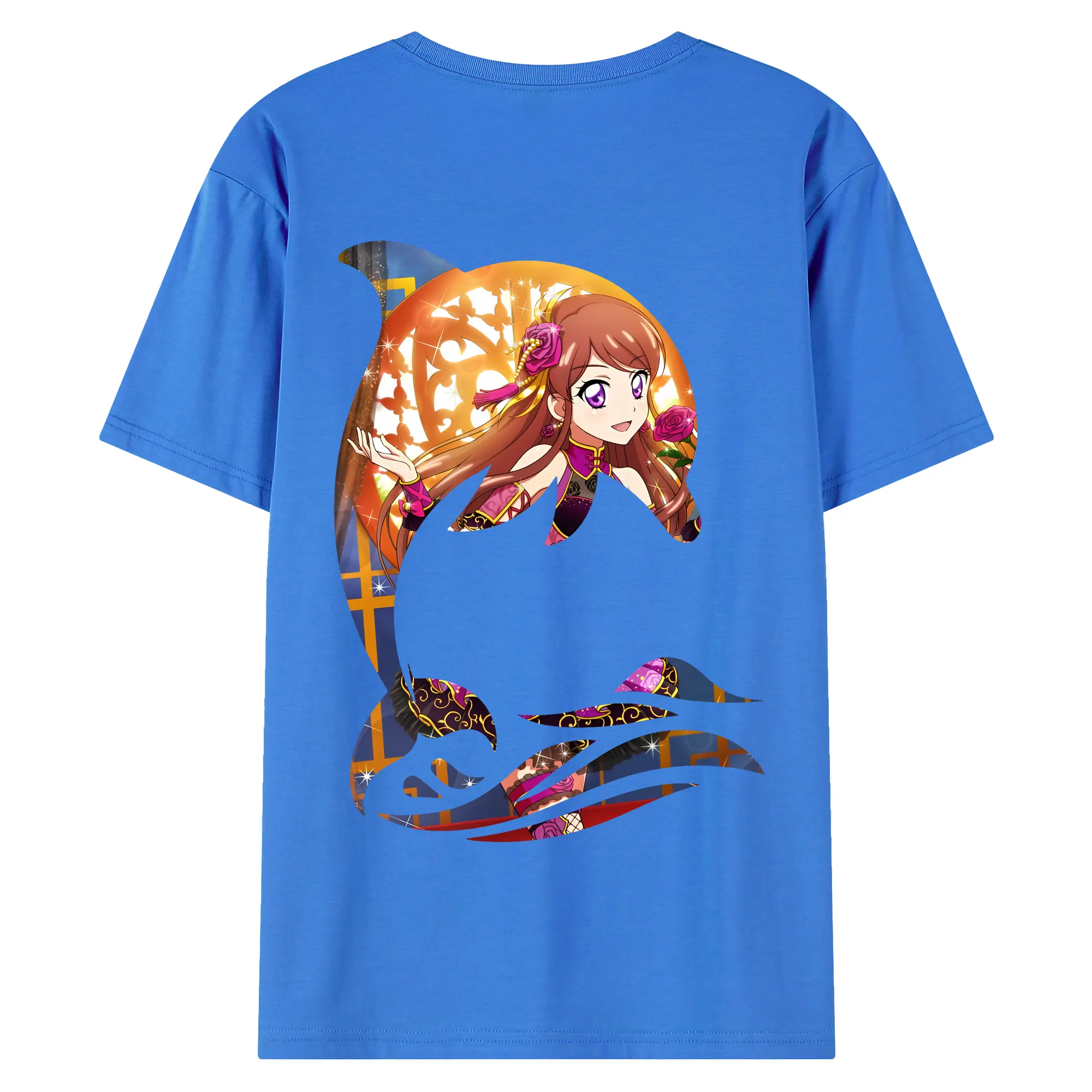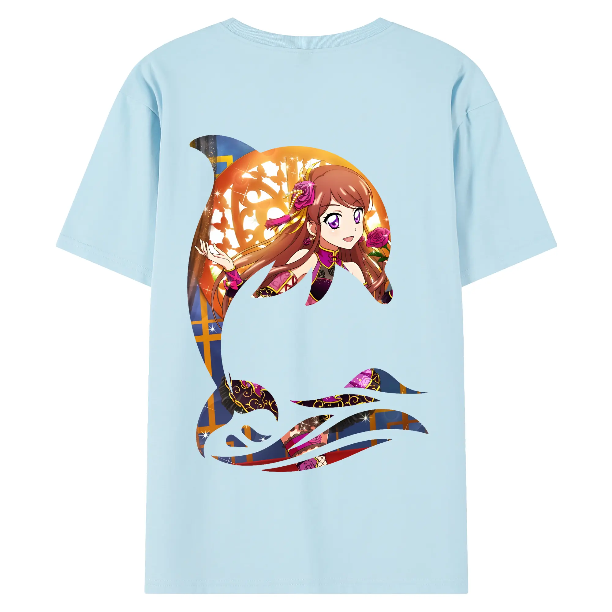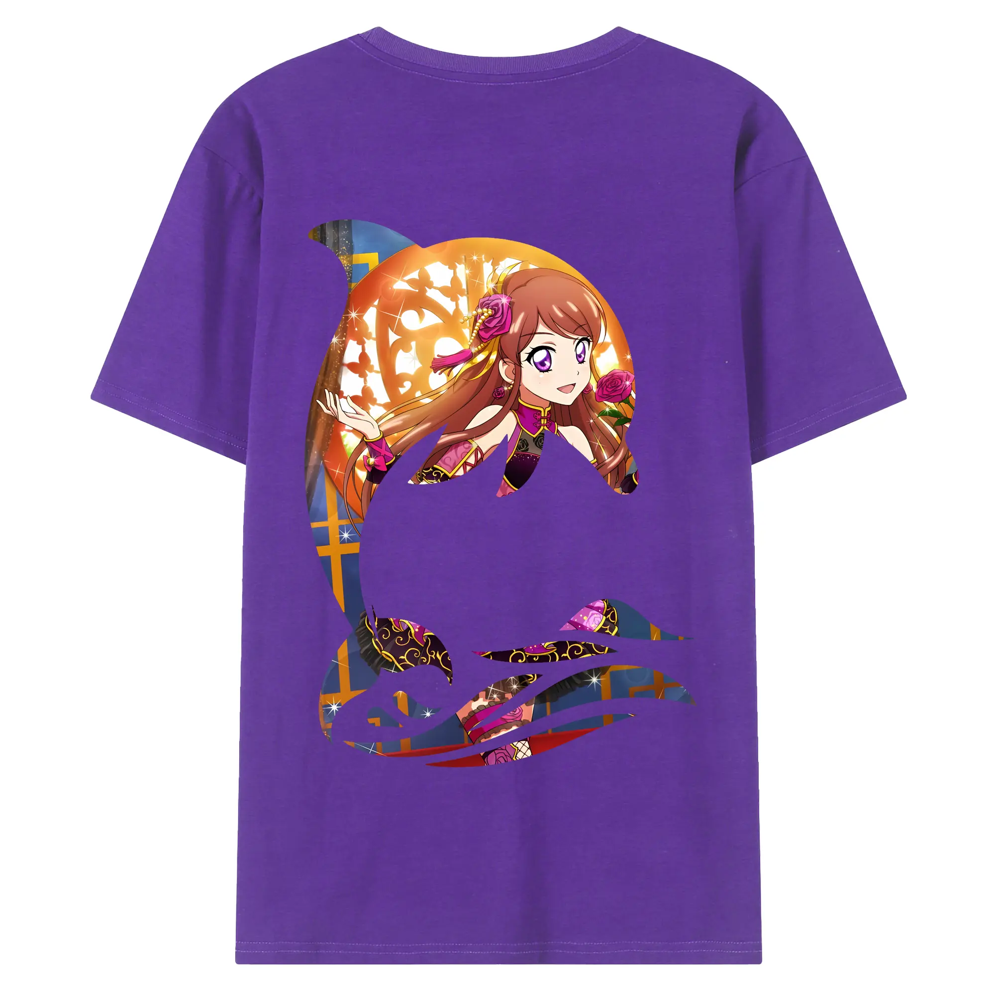 アイカツ グッズ 紫吹 蘭 - 綿100% 半袖Tシャツ ・ フロントプリント ・ 快適 通気性 ・ 日常使い 散歩 スポーツ用