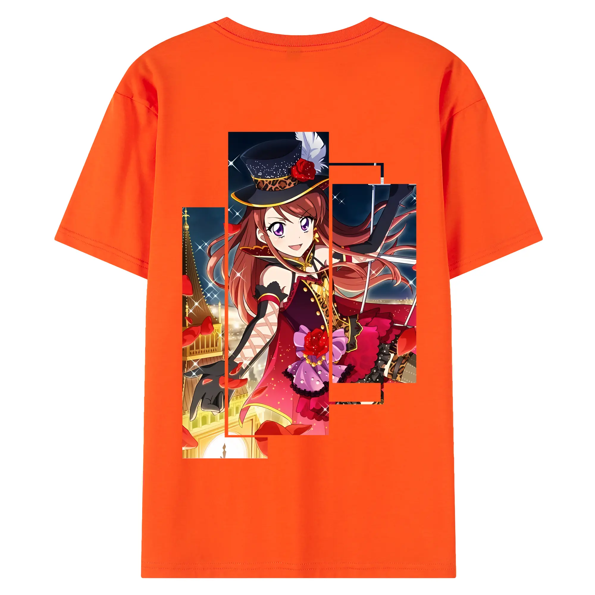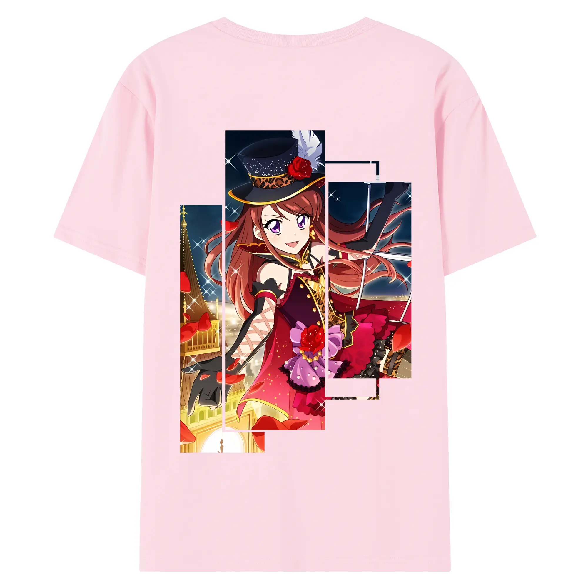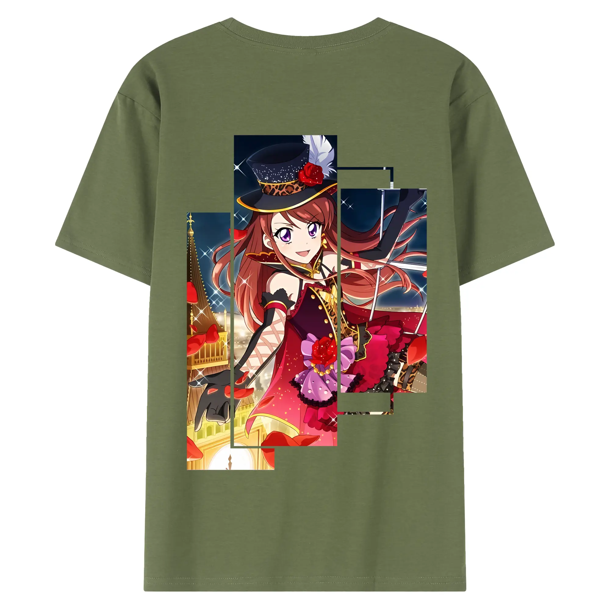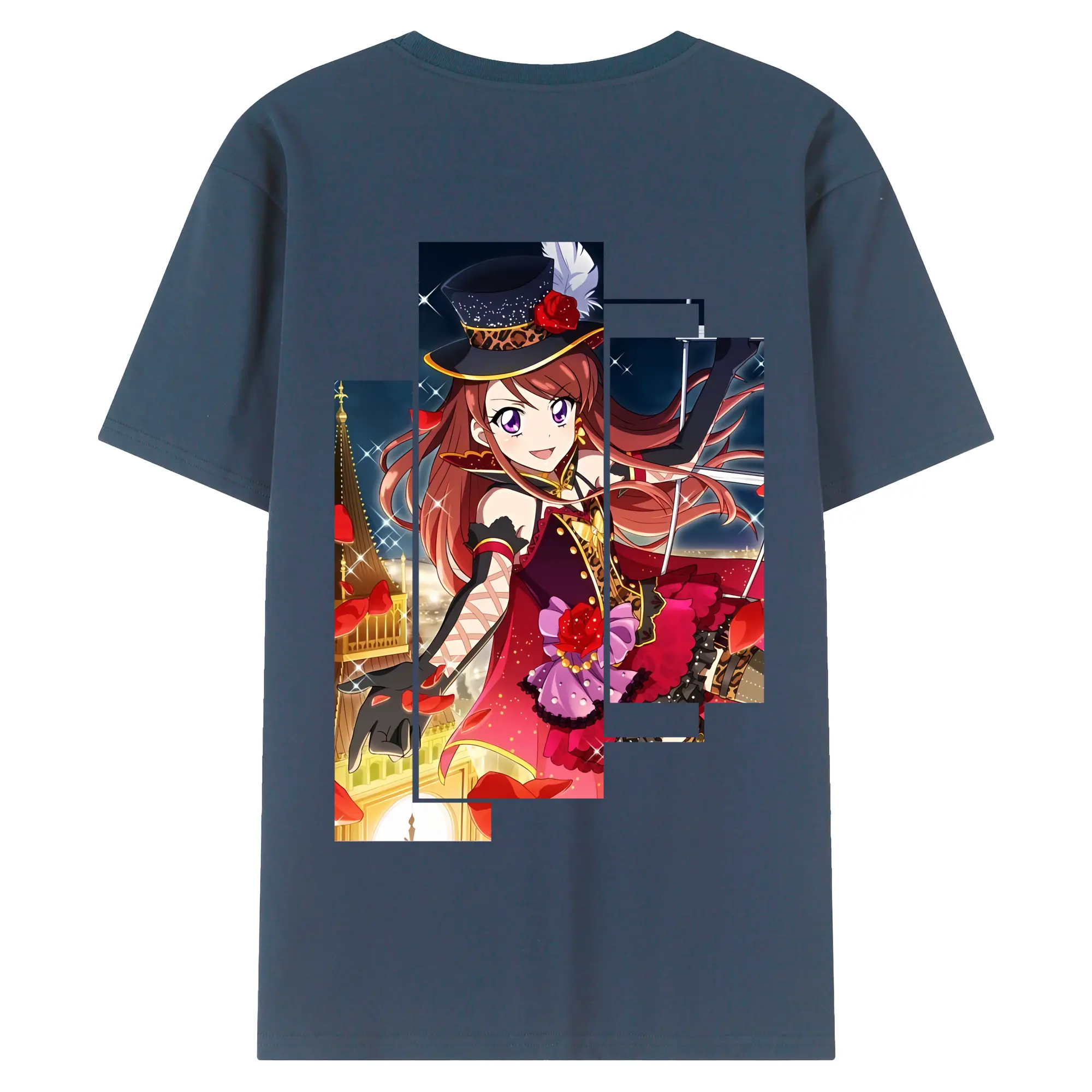 アイカツ グッズ 紫吹 蘭 - 綿100% ヴィンテージ風 半袖Tシャツ ・ 背面プリント ・ 柔らか肌触り ・ 通気性 快適 ・ スポーツ カジュアル 外出用