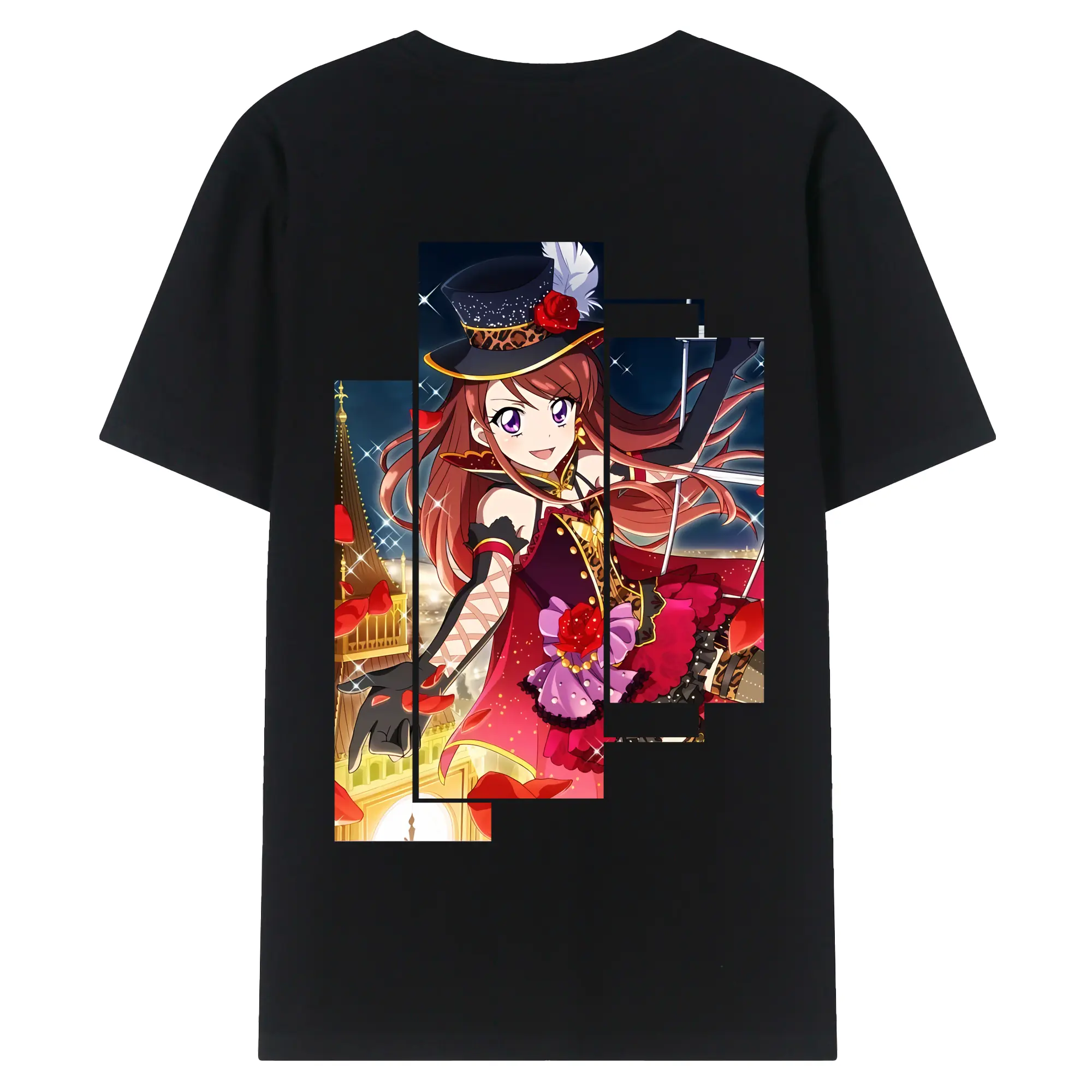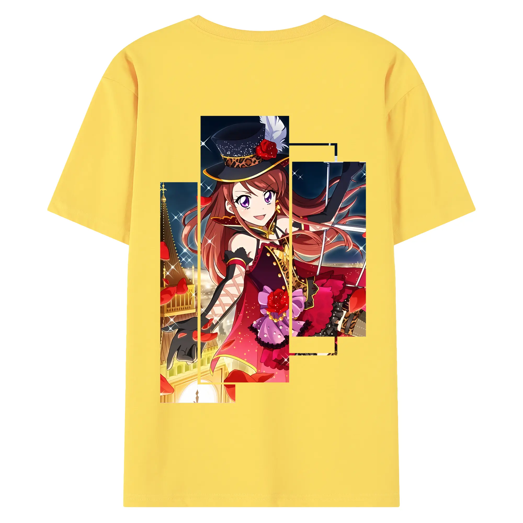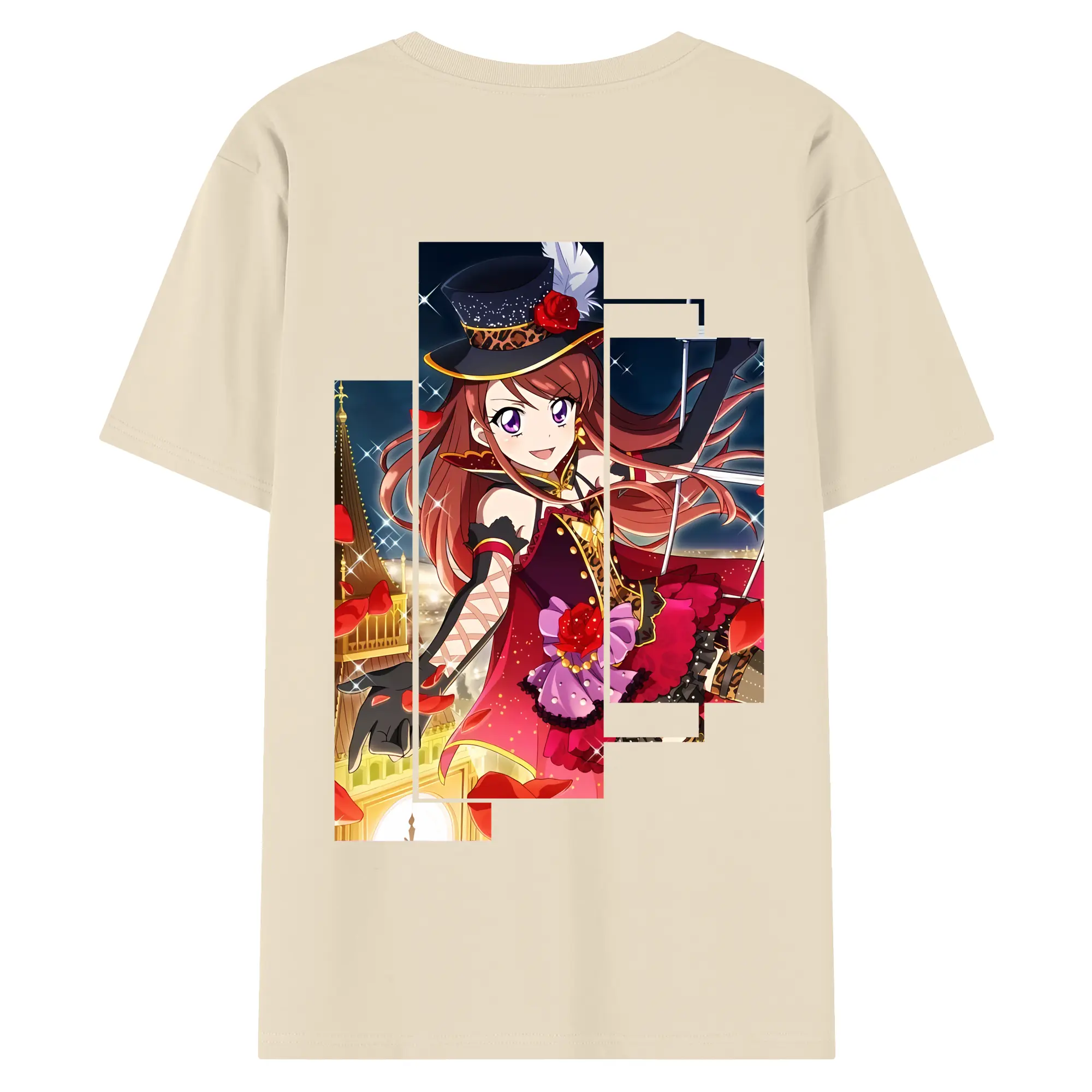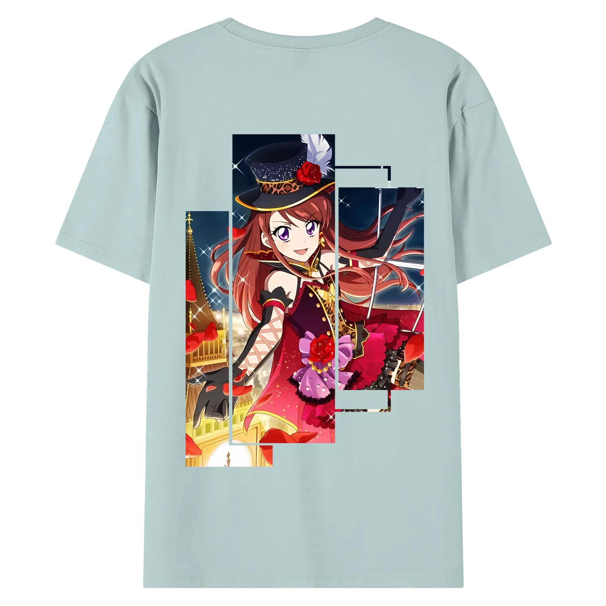 アイカツ グッズ 紫吹 蘭 - 綿100% ヴィンテージ風 半袖Tシャツ ・ 背面プリント ・ 柔らか肌触り ・ 通気性 快適 ・ スポーツ カジュアル 外出用