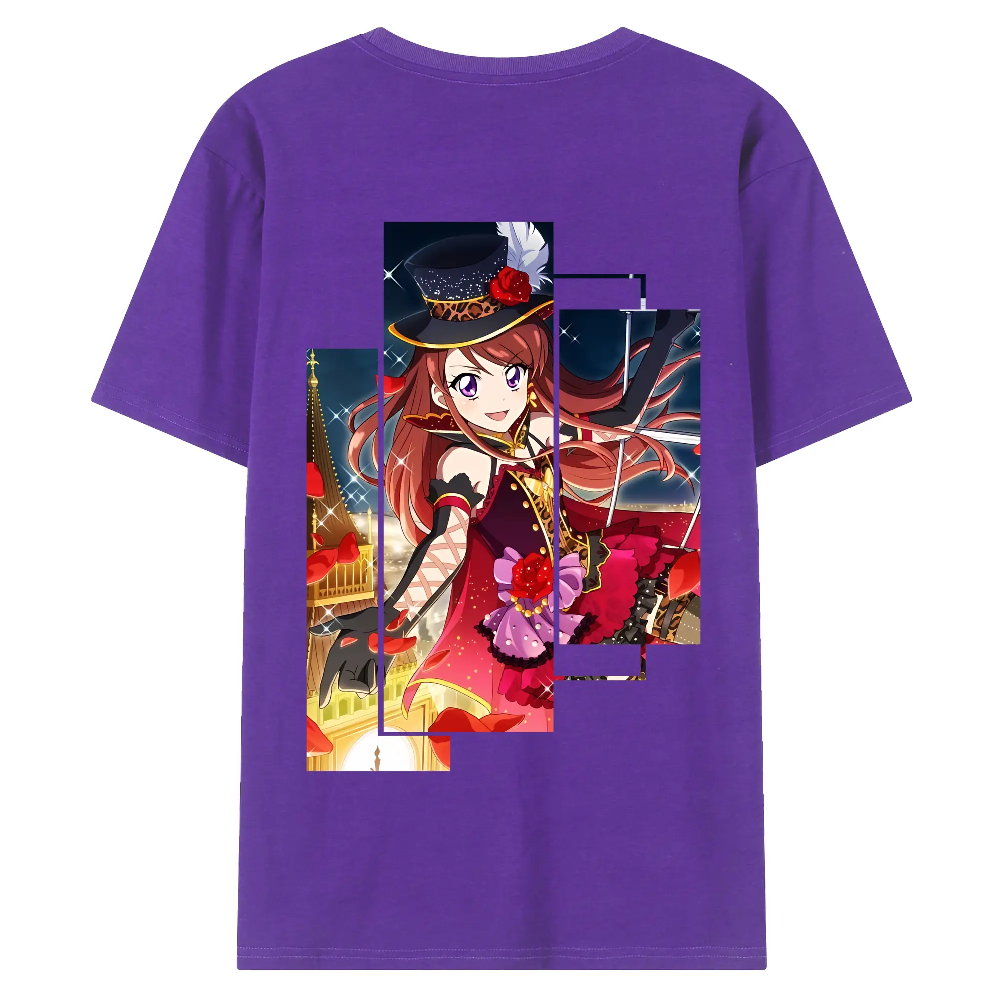 アイカツ グッズ 紫吹 蘭 - 綿100% 半袖Tシャツ ・ フロントプリント ・ 快適 通気性 ・ 日常使い 散歩 スポーツ用