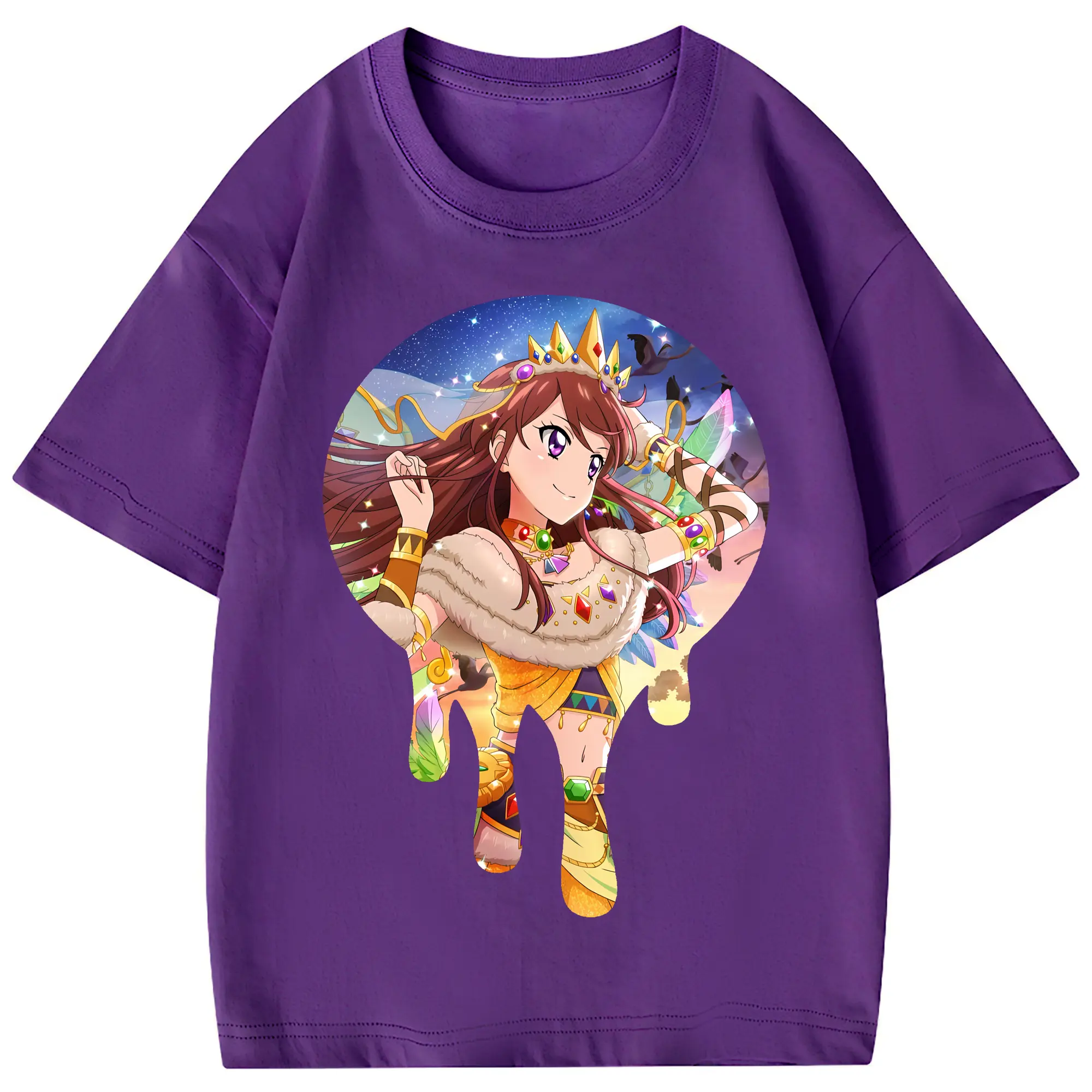 アイカツ グッズ 紫吹 蘭 - 綿100% 半袖Tシャツ ・ フロントプリント ・ 快適 通気性 ・ 日常使い 散歩 スポーツ用