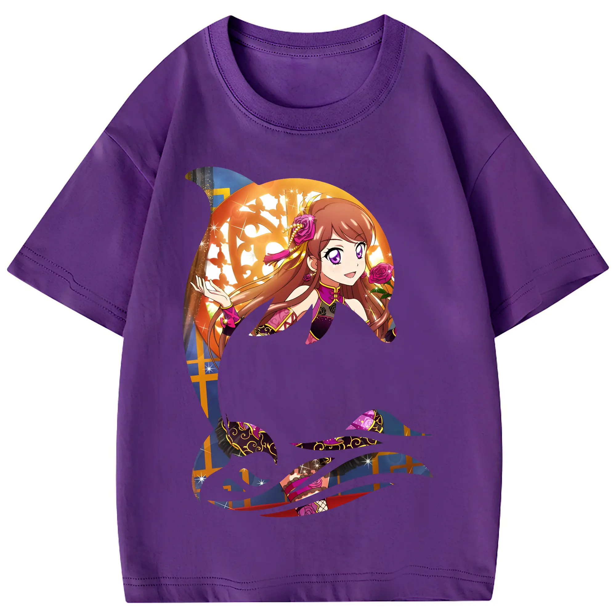 アイカツ グッズ 紫吹 蘭 - 綿100% 半袖Tシャツ ・ フロントプリント ・ 快適 通気性 ・ 日常使い 散歩 スポーツ用