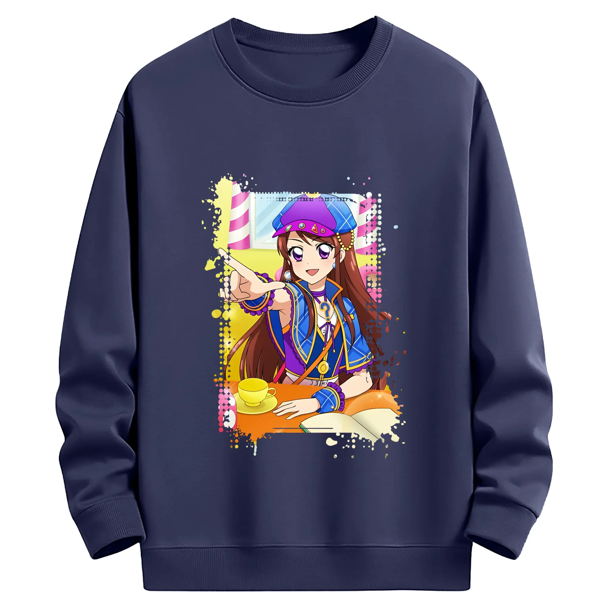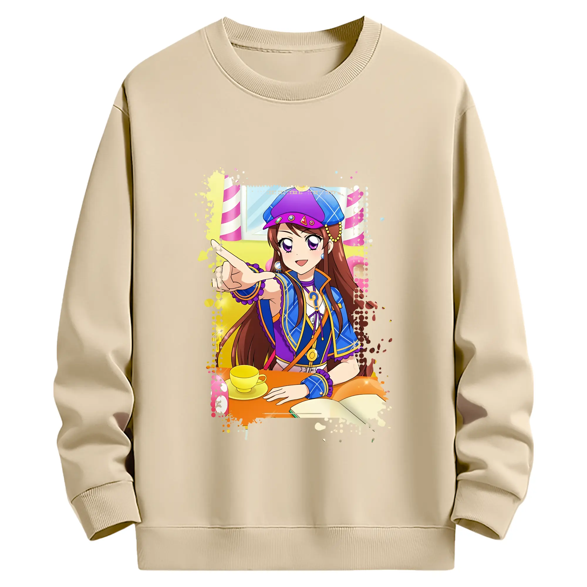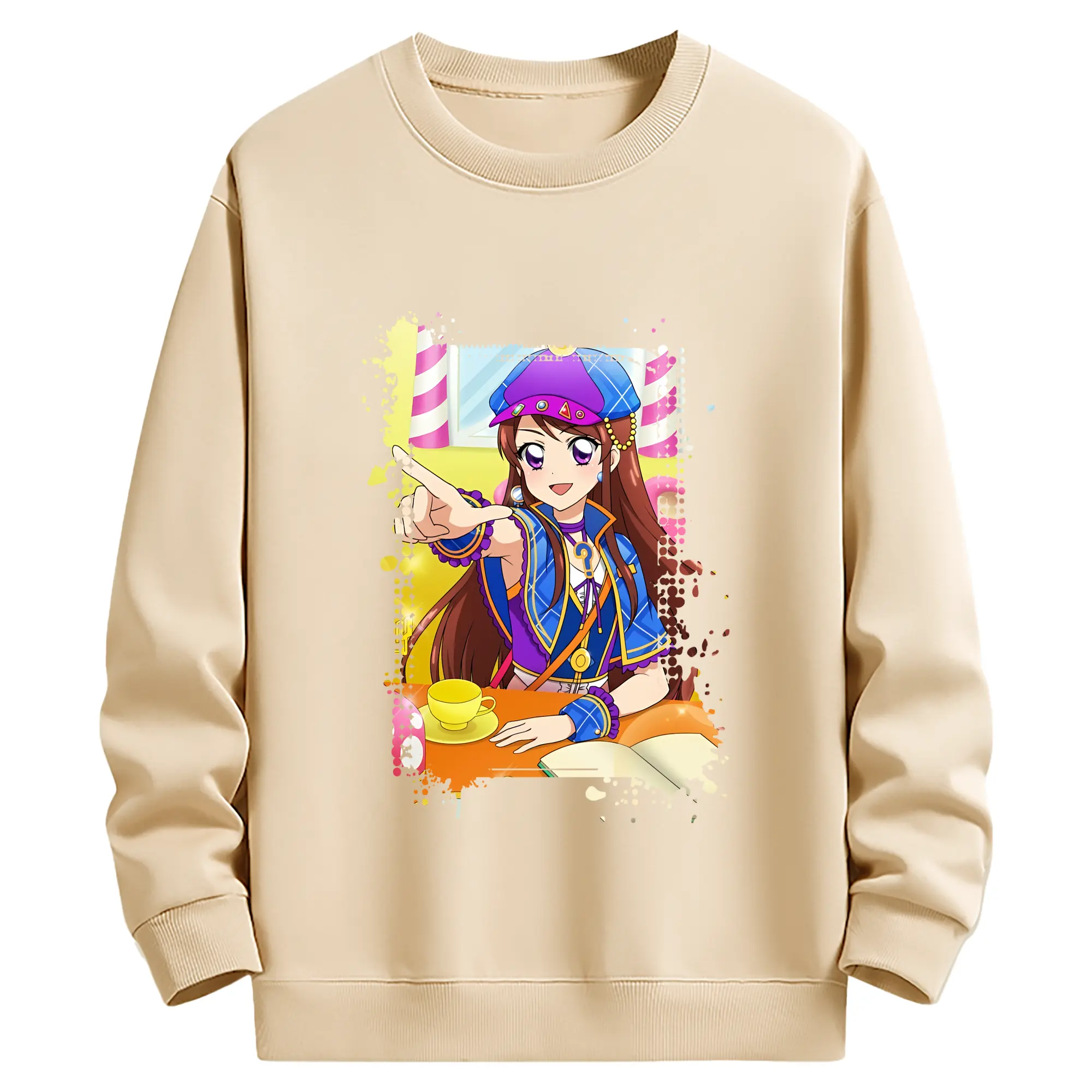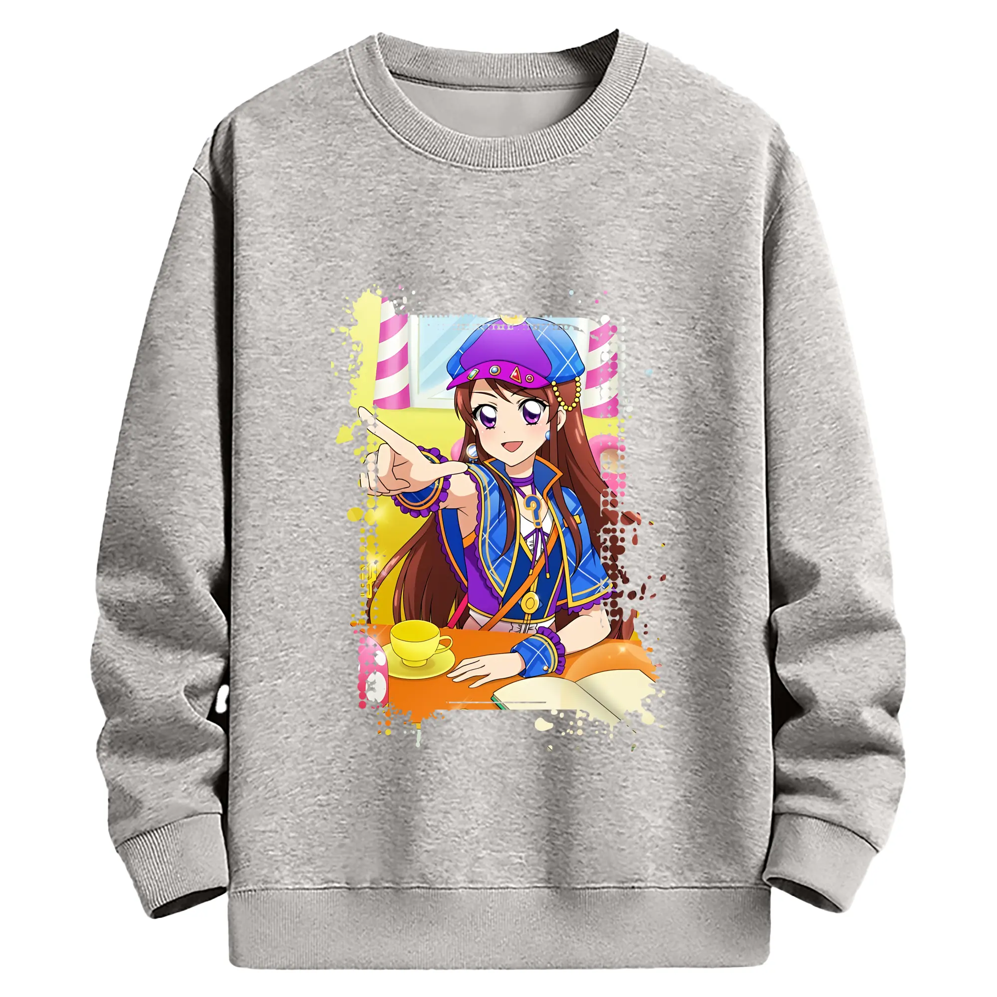アイカツ グッズ 紫吹 蘭 - 薄手 クルーネック スウェット 裏毛260g · ポリエステル 春秋向け カジュアル 男女兼用 · トレーナー デイリー スポーツ 散歩に最適