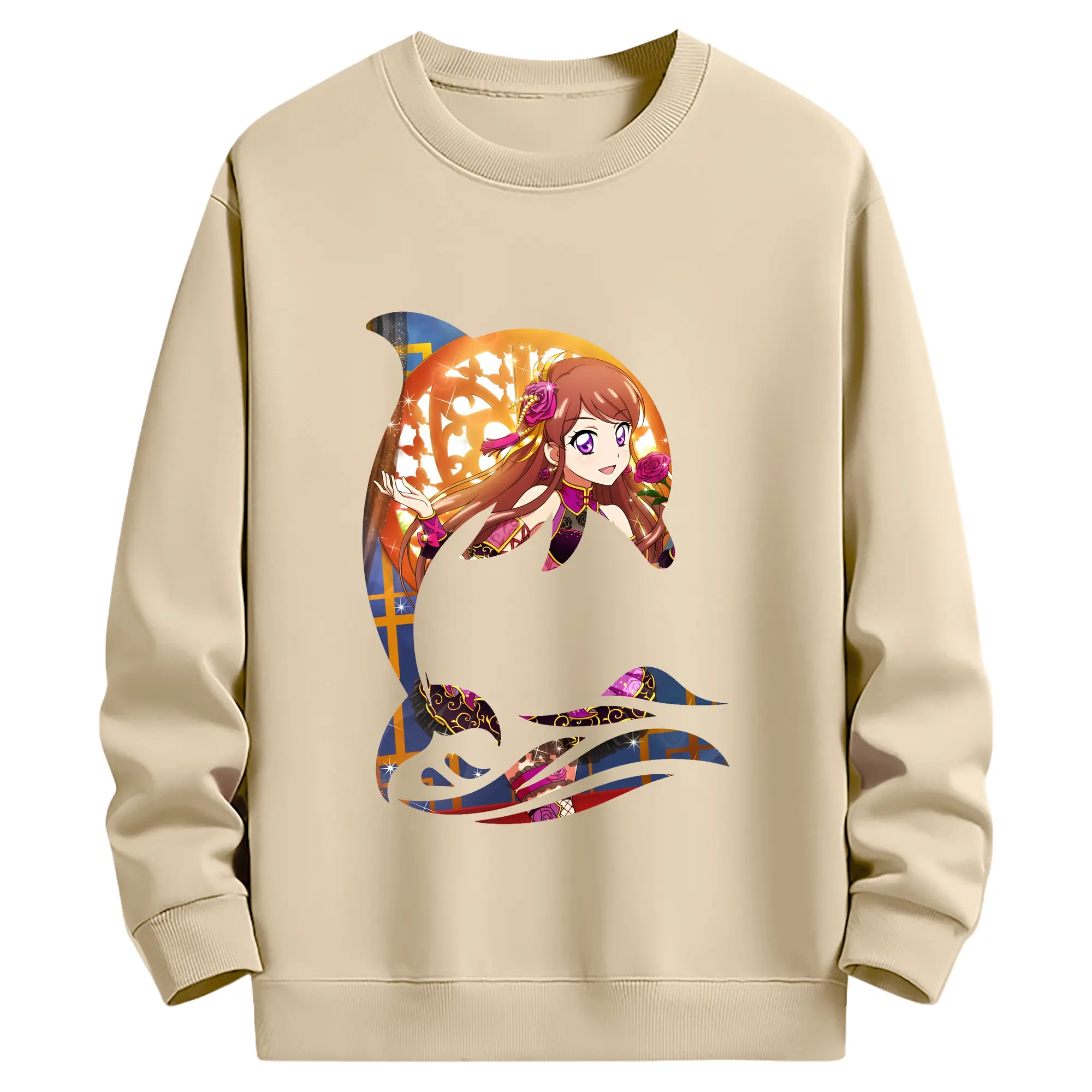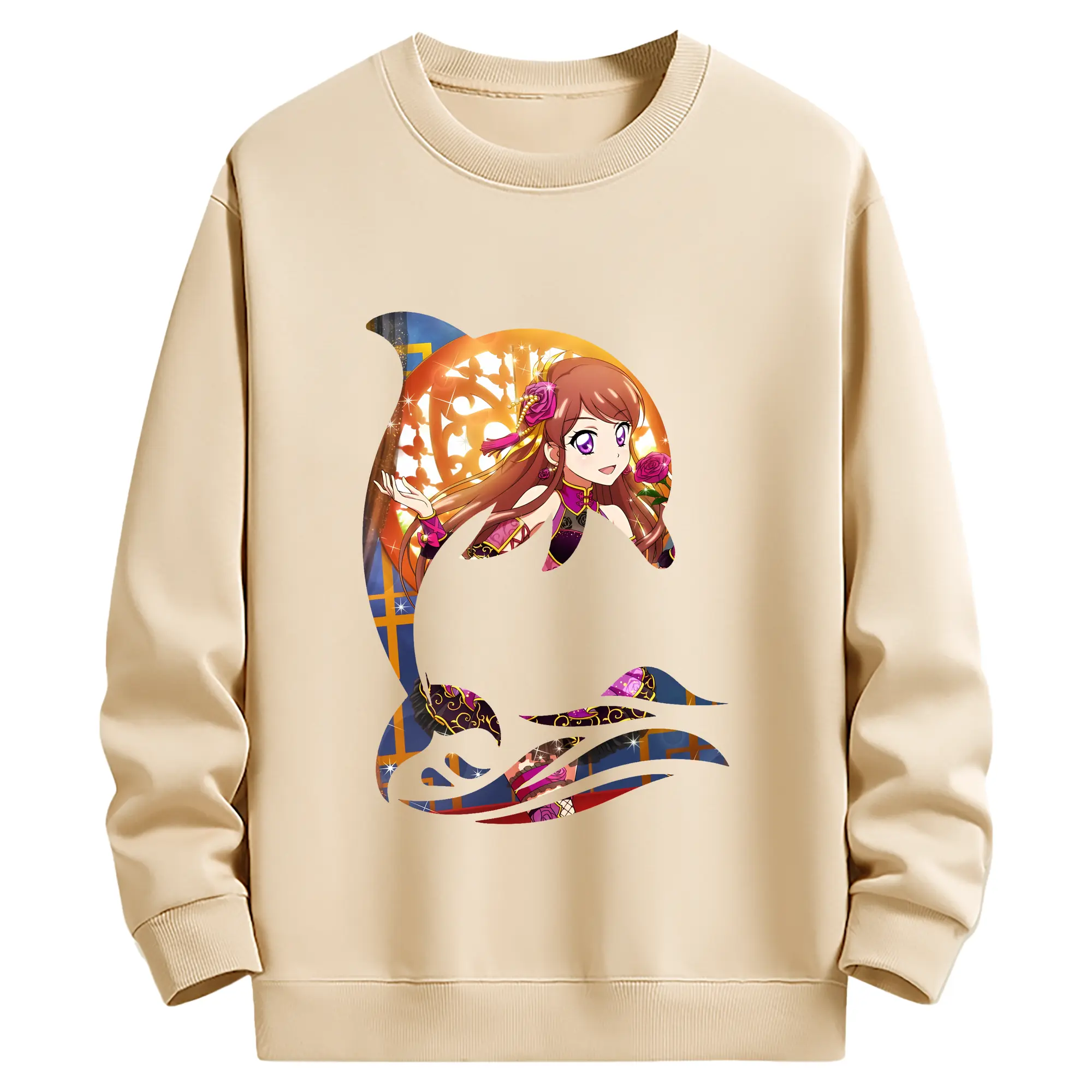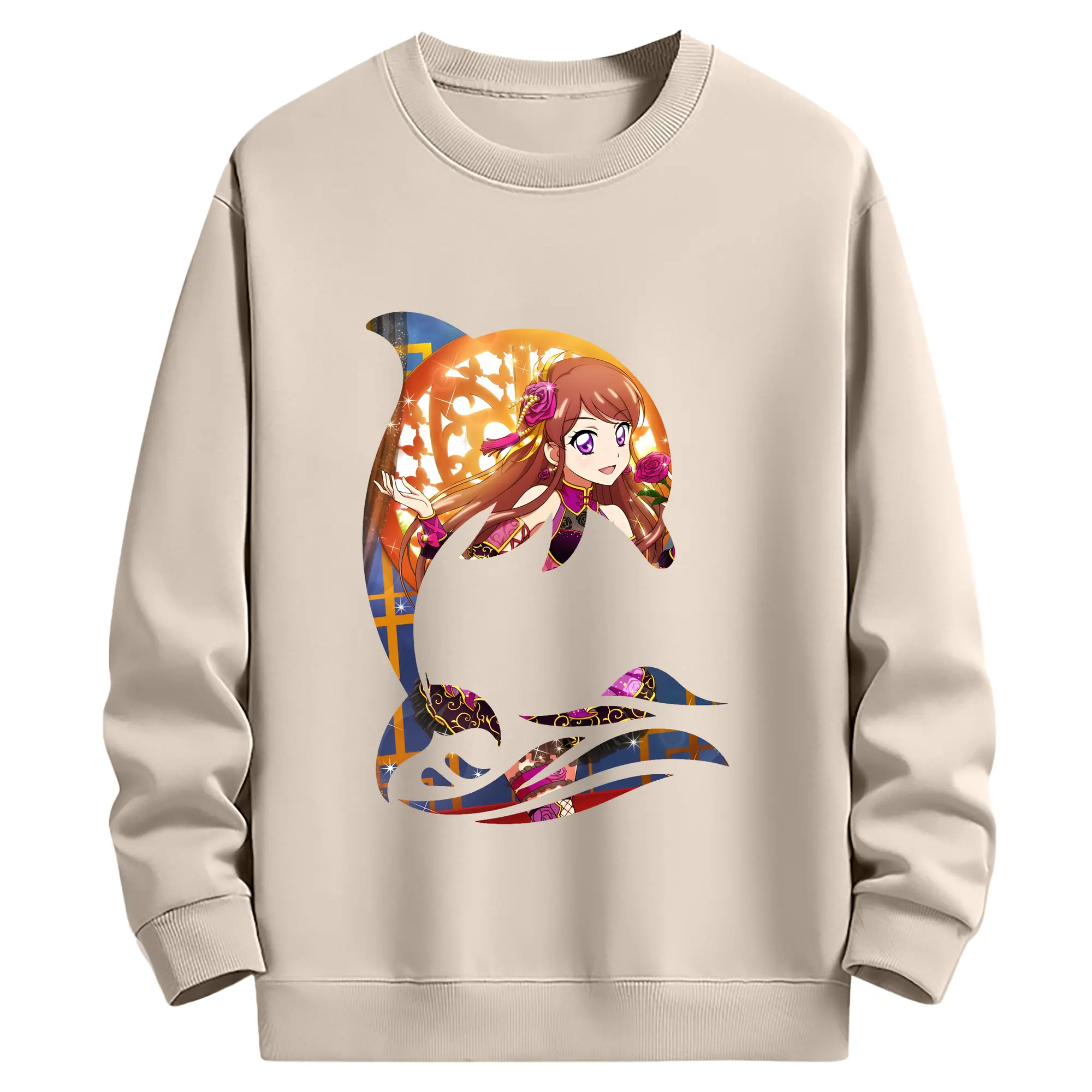 アイカツ グッズ 紫吹 蘭 - 薄手 クルーネック スウェット 裏毛260g · ポリエステル 春秋向け カジュアル 男女兼用 · トレーナー デイリー スポーツ 散歩に最適