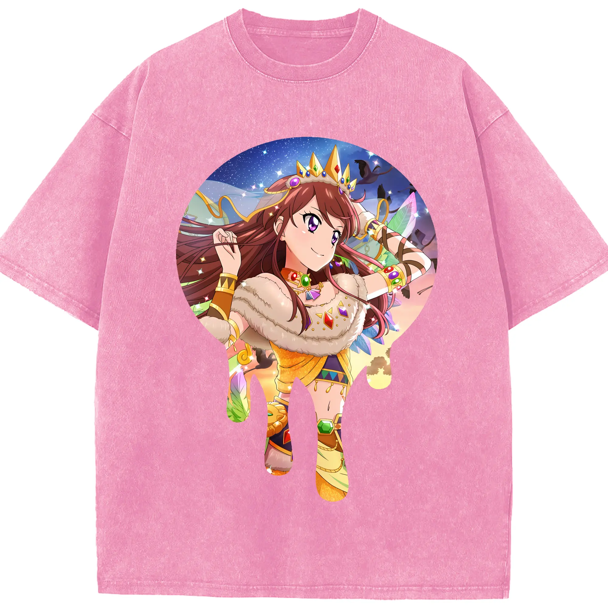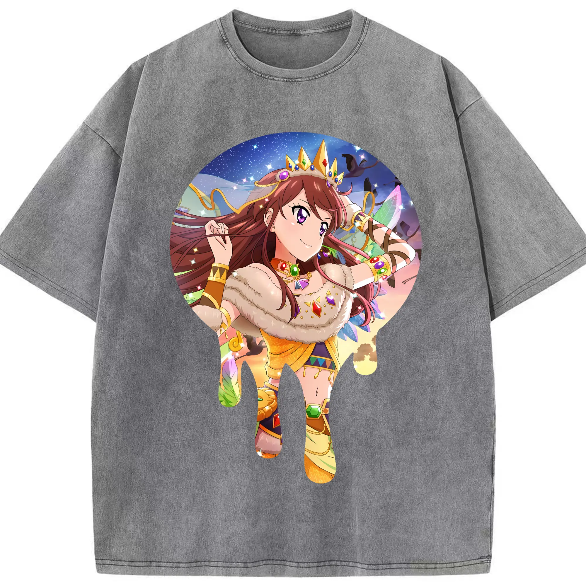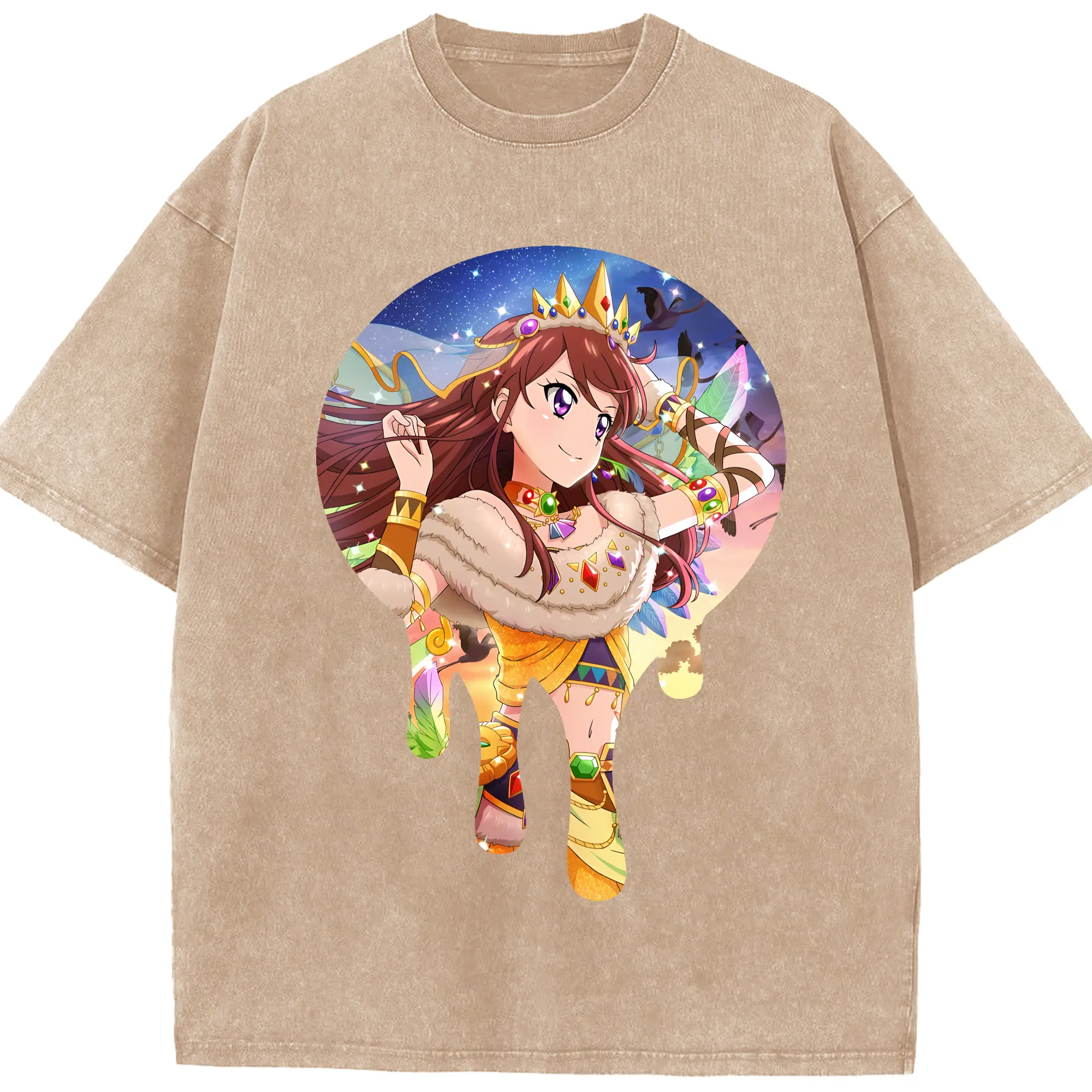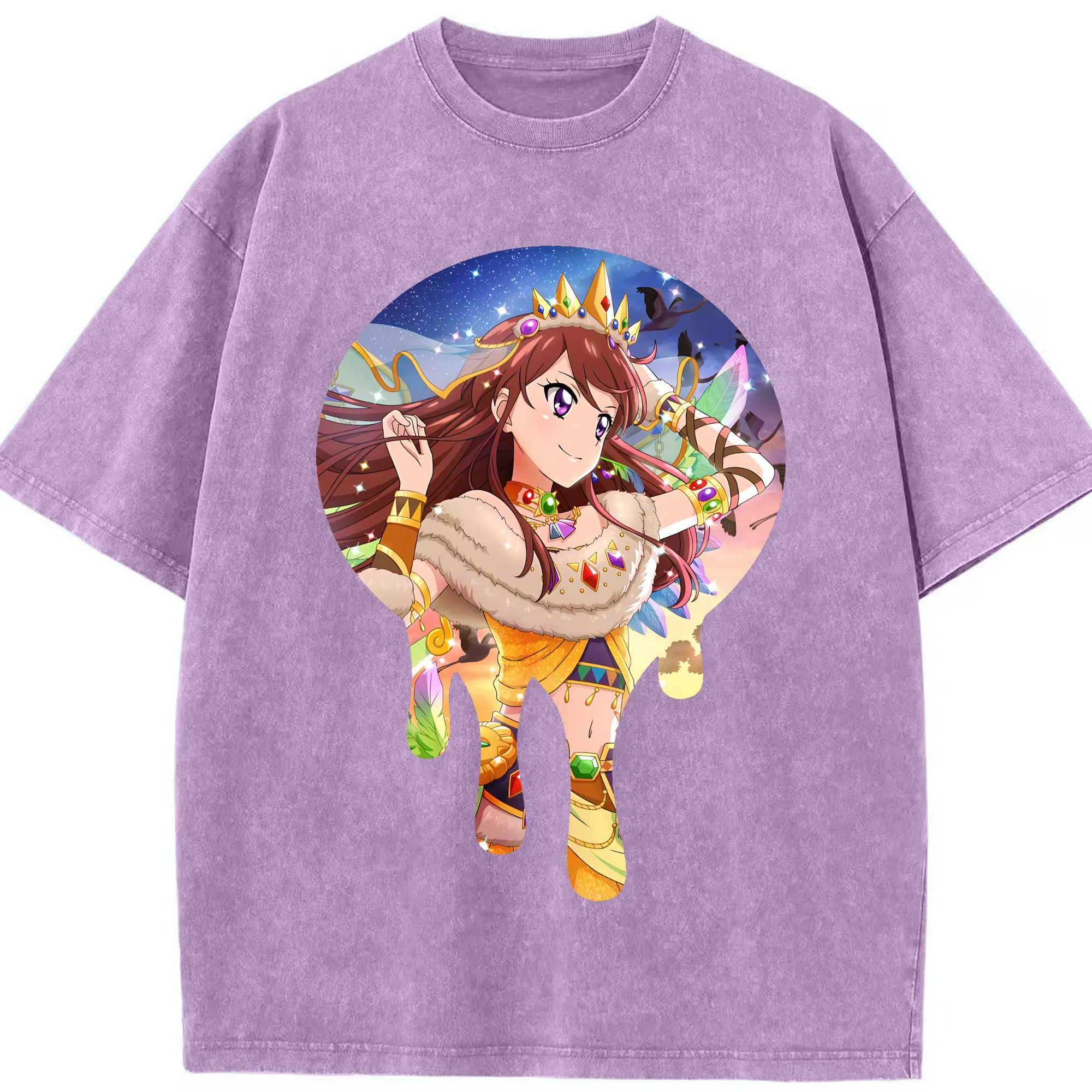アイカツ グッズ 紫吹 蘭 - 綿100% ヴィンテージ風 半袖Tシャツ ・ 背面プリント ・ 柔らか肌触り ・ 通気性 快適 ・ スポーツ カジュアル 外出用